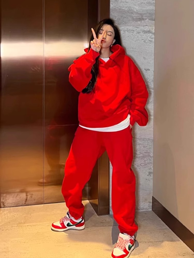 Bộ đồ thể thao dành cho nữ với áo nỉ và quần dài thoải mái, thiết kế dáng rộng mang phong cách trẻ trung. Chất liệu mềm mại, giữ ấm tốt cho những ngày se lạnh. Sản phẩm có màu đỏ nổi bật, dễ dàng phối cùng giày thể thao và balo. Bạn có thể mặc bộ này khi đi tập, dạo phố hay gặp gỡ bạn bè. Chú ý giặt ở nhiệt độ thường để giữ form áo và màu sắc đẹp lâu. | Tên sản phẩm: Đồ Bộ Nữ Cả Bộ 2 Món Hàng Mùa Xuân Thu Đông Phong Cách Hàn Quốc - Thời Trang Nữ | Mã sản phẩm: C0304 - Giá: 1.350.000đ | Mã nhà sản xuất: AIANOR-G04Hình ảnh sản phẩm