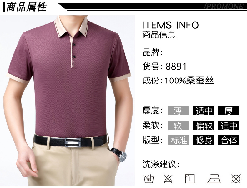 Áo polo nam dành cho mùa hè, được dệt từ sợi tơ tằm tự nhiên, mang lại cảm giác mát mẻ và thoải mái khi mặc. Kiểu dáng rộng rãi, phù hợp cho nhiều hoạt động thường ngày. Chất vải mềm mại, ít nhăn và hầu như không để lại vết tích khi giặt. Sản phẩm dễ dàng bảo quản, có thể mặc trực tiếp mà không cần ủi nhiều. Thiết kế đơn giản, tiện lợi, phù hợp cho nhiều dịp sinh hoạt. | Tên sản phẩm: Áo Sơ Mi Nam Chất Liệu Lụa Tơ Tằm Hàng Mùa Hè Trung Niên - Thời Trang Nam | Mã sản phẩm: C0315 - Giá: 1.810.000đ | Mã nhà sản xuất: SHRYCT-G05Hình ảnh sản phẩm