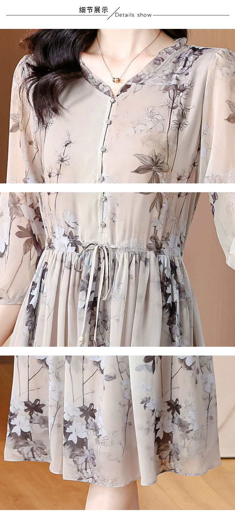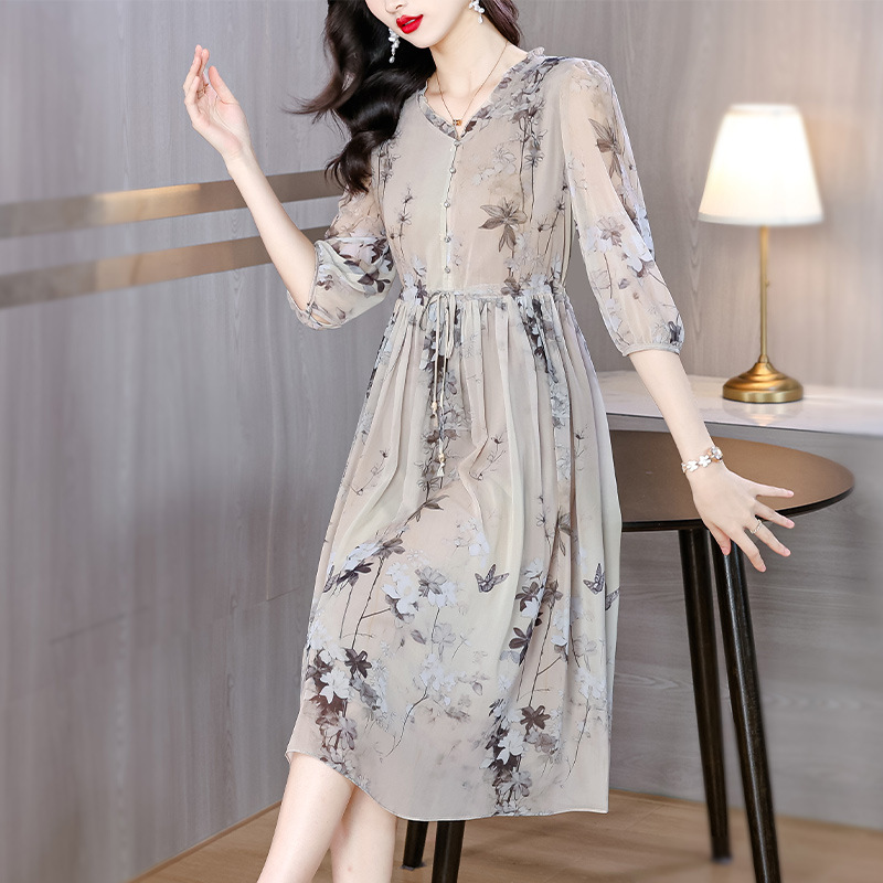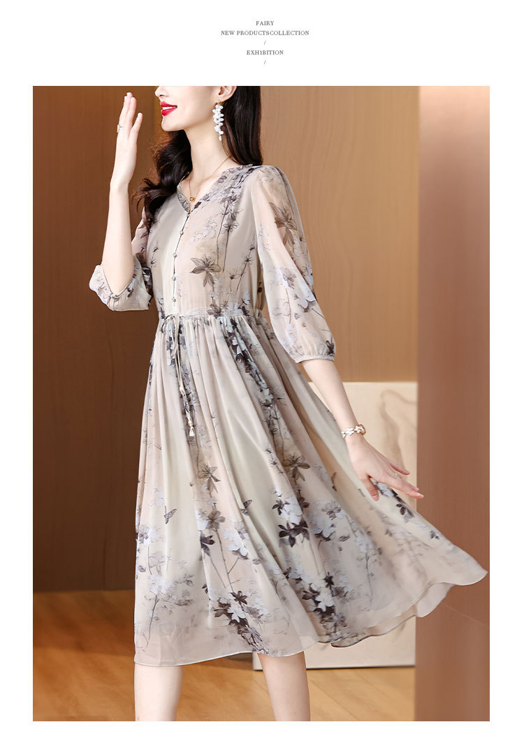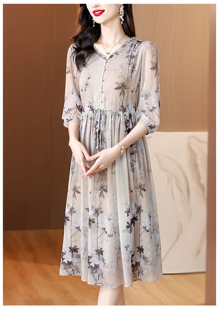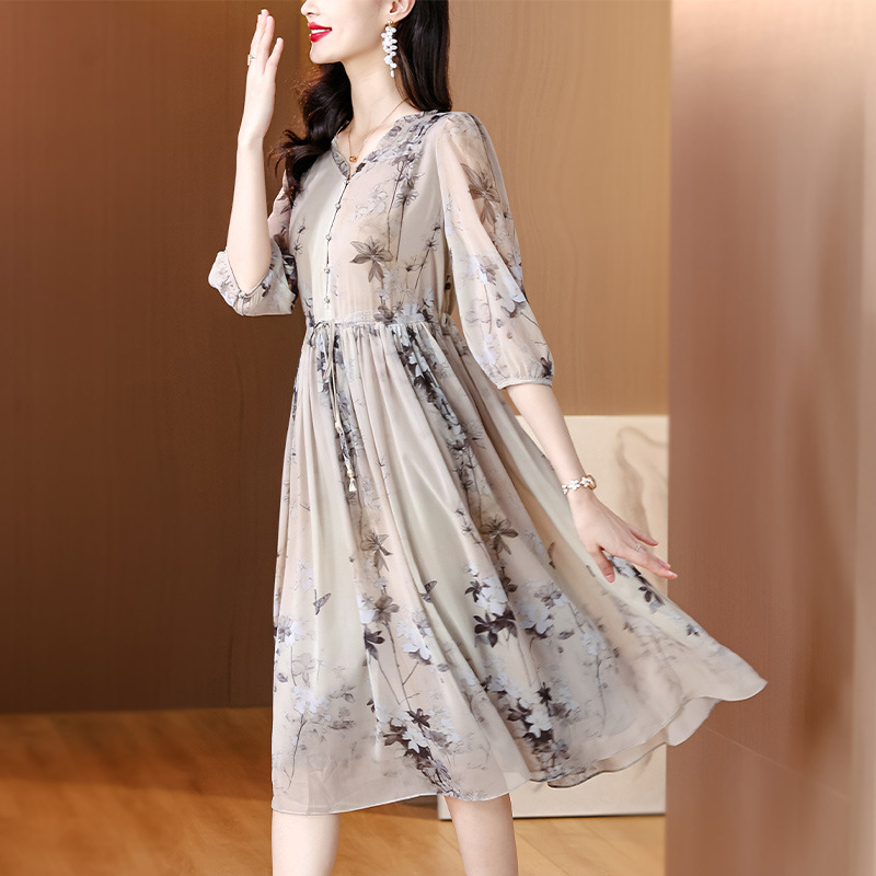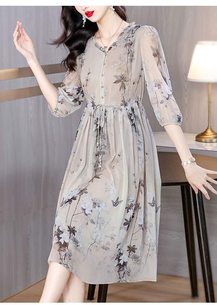 Đầm dành cho phụ nữ, kiểu dáng chữ A với cổ khoét sâu tạo điểm nhấn. Chất liệu lụa mịn màng, dày dặn, thoáng mát, rất phù hợp cho mùa hè. Hoa văn in nhẹ nhàng, tôn lên vẻ đẹp dịu dàng. Sản phẩm dễ dàng phối cùng giày sandal và túi xách. Giặt tay nhẹ nhàng và phơi ở nơi râm mát để giữ dáng áo và màu sắc lâu bền. | Tên sản phẩm: Váy Đầm Liền Thân Nữ Chất Liệu Lụa Tơ Tằm Dáng Chữ A Họa Tiết Hoa Cổ Chữ V Hàng Mùa Hè - Thời Trang Nữ | Mã sản phẩm: C0335 - Giá: 1.900.000đ | Mã nhà sản xuất: SHRYCT-G05Hình ảnh sản phẩm