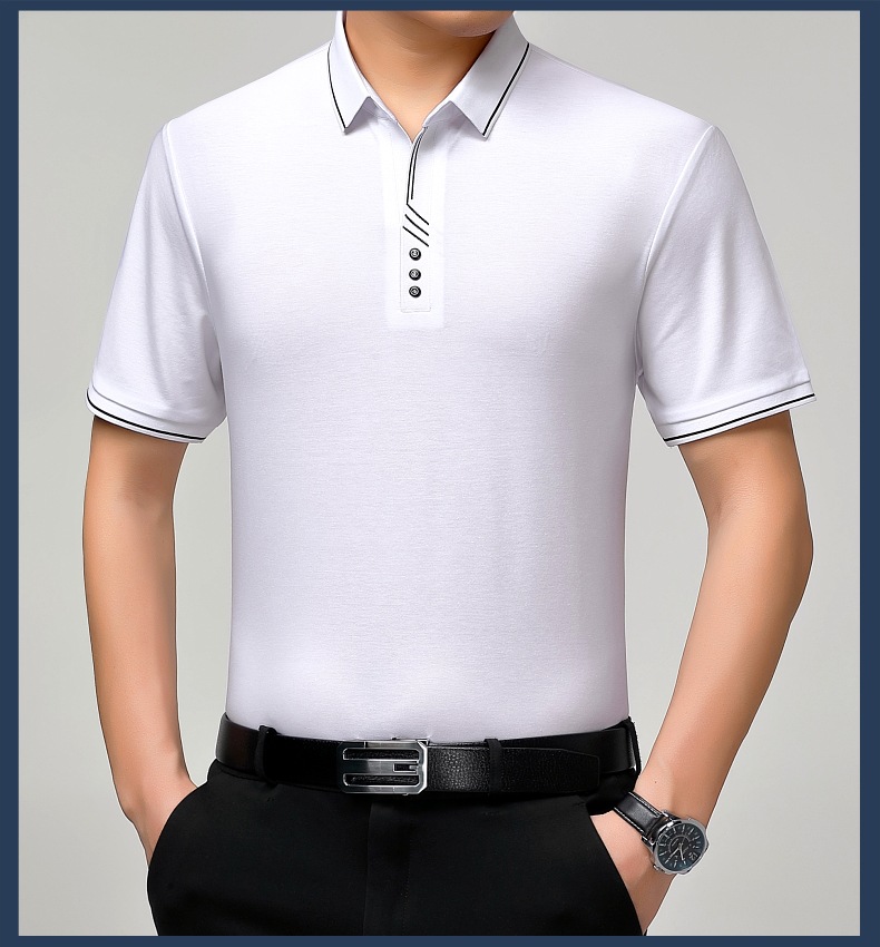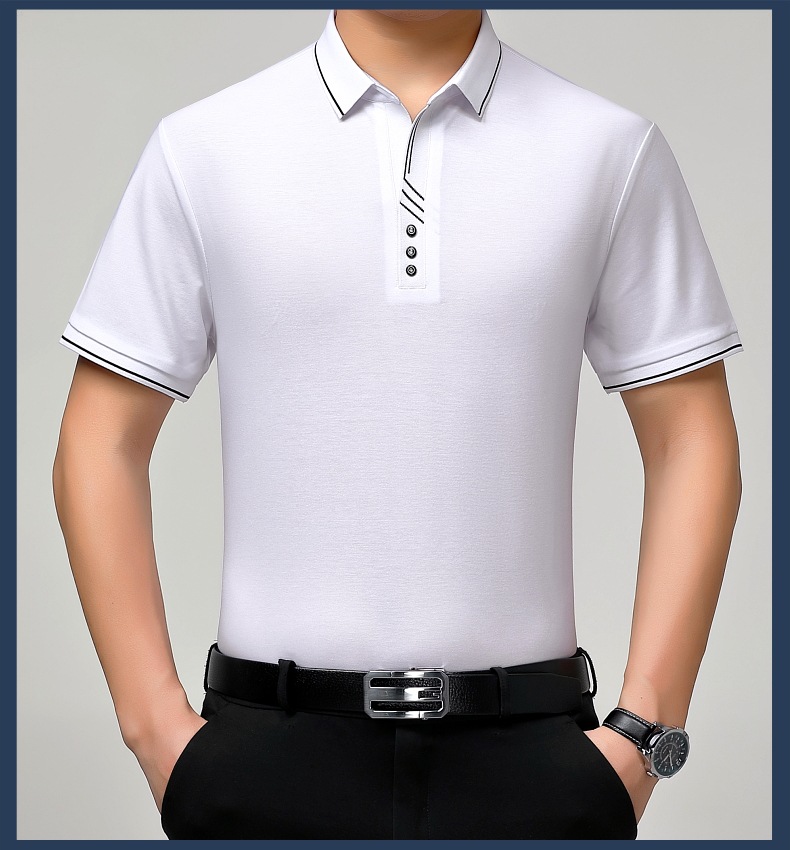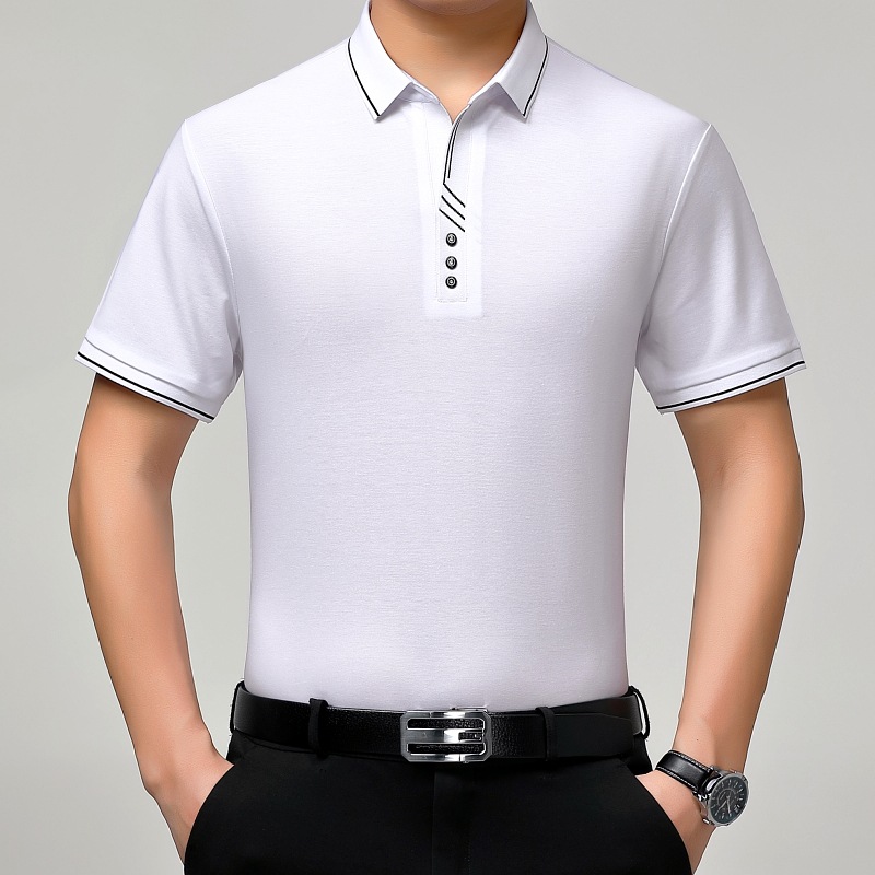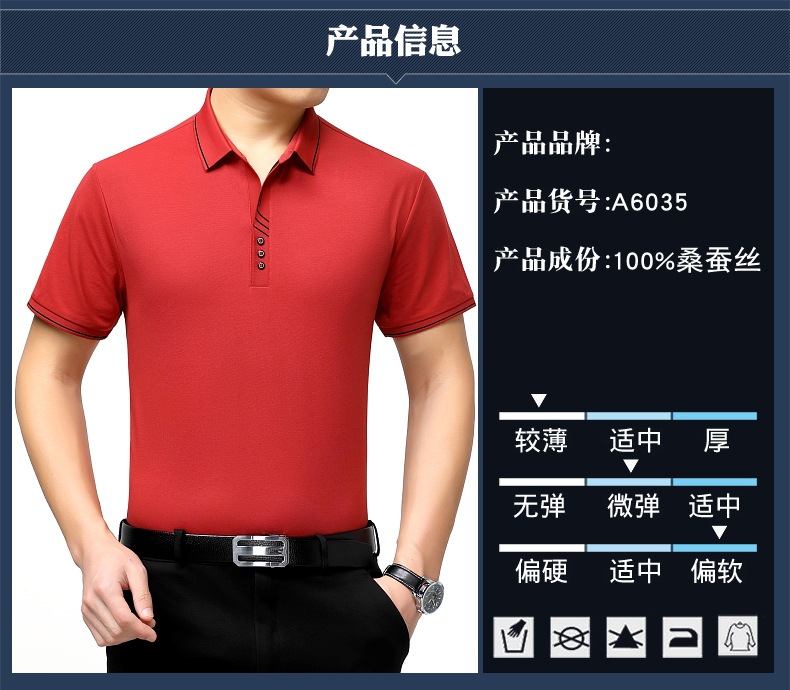 Áo thun cổ bẻ dành cho nam, kiểu dáng kết hợp đi làm và đi chơi. Sản phẩm được dệt từ sợi tơ tằm tự nhiên, mang lại cảm giác mát mẻ và nhẹ nhàng khi mặc. Thiết kế cổ bẻ lịch sự, phù hợp cho các dịp thường ngày. Ưu điểm nổi bật là vải ít nhăn, giữ nếp áo luôn thẳng thớm sau khi giặt, tiết kiệm thời gian ủi đồ. Dễ dàng phối cùng quần tây hoặc quần jeans. | Tên sản phẩm: Áo Sơ Mi Nam Chất Liệu Lụa Tơ Tằm Ngắn Tay Kín Cổ Hàng Mùa Hè Trung Niên - Thời Trang Nam | Mã sản phẩm: C0339 - Giá: 1.710.000đ | Mã nhà sản xuất: SHRYCT-G05Hình ảnh sản phẩm