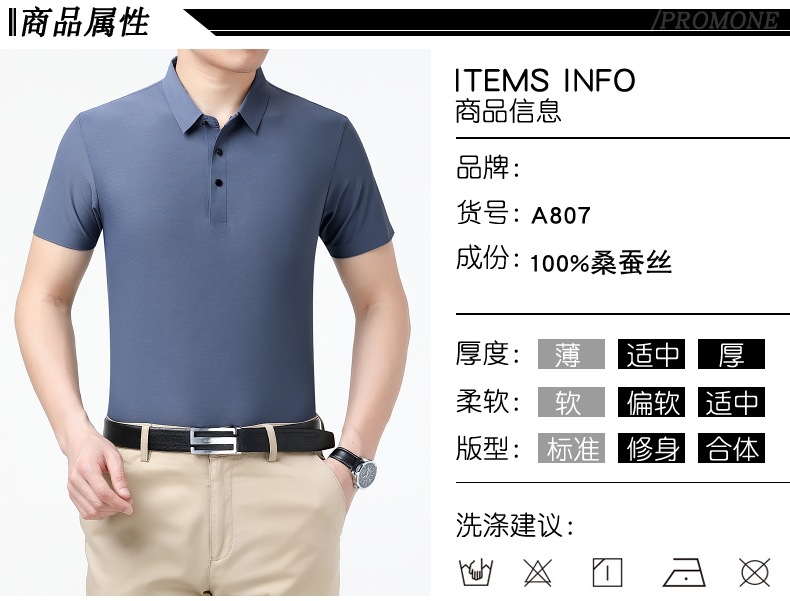 Áo thun cổ bẻ tay ngắn dành cho nam, được dệt từ sợi tơ tằm tự nhiên mềm mại. Chất vải mát lạnh, thấm hút mồ hôi tốt, mang lại cảm giác dễ chịu cho ngày hè oi bức. Kiểu dáng thể thao năng động, đường may tỉ mỉ không để lại vết. Áo ít nhăn, giữ phom dáng sau nhiều lần giặt, tiện lợi khi mặc đi làm hay dạo phố. | Tên sản phẩm: Áo Thun Nam Chất Liệu Lụa Tơ Tằm Ngắn Tay Hàng Mùa Hè - Thời Trang Nam | Mã sản phẩm: C0342 - Giá: 1.810.000đ | Mã nhà sản xuất: SHRYCT-G05Hình ảnh sản phẩm