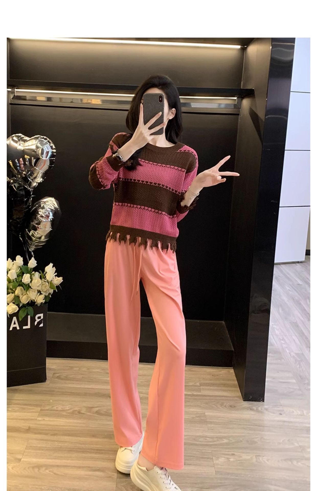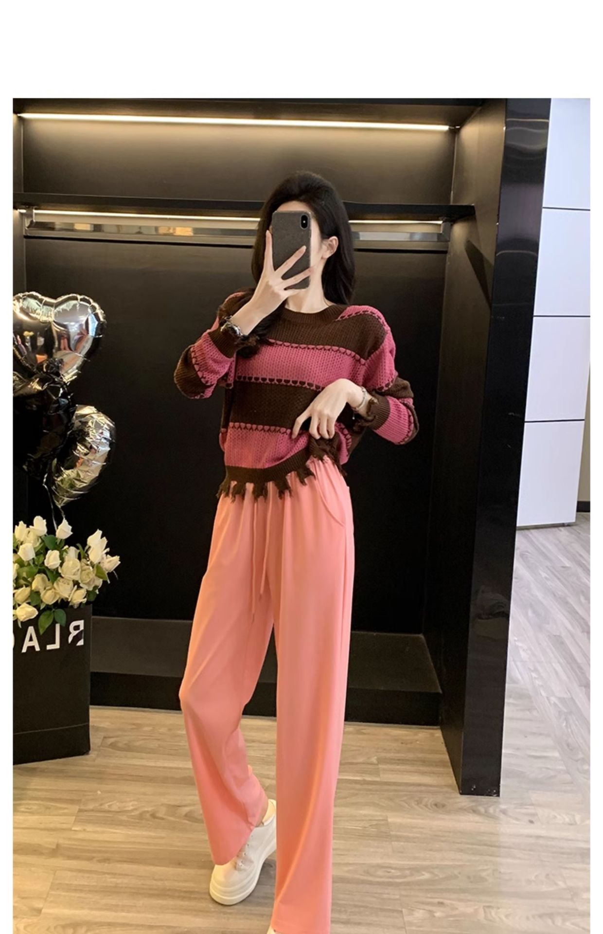Bộ trang phục này gồm áo len đan có họa tiết thưa tinh tế và quần thể thao thoải mái. Kiểu dáng kết hợp giữa nét điệu đà và sự năng động, tạo nên một bộ đồ hoàn chỉnh. Chất vải mềm mại, co giãn tốt, mang lại cảm giác dễ chịu khi mặc cả ngày. Bạn có thể mặc bộ này để đi dạo, gặp gỡ bạn bè hoặc tham gia các hoạt động nhẹ nhàng. Phối cùng giày thể thao hoặc giày đế bằng đều rất phù hợp. | Tên sản phẩm: Đồ Bộ Nữ Áo Len Cả Bộ 2 Món Hàng Mùa Xuân Thu Đông - Thời Trang Nữ | Mã sản phẩm: C0357 - Giá: 1.380.000đ | Mã nhà sản xuất: AIANOR-G04Hình ảnh sản phẩm