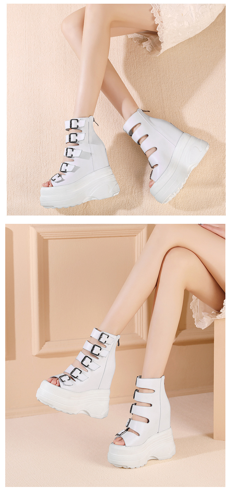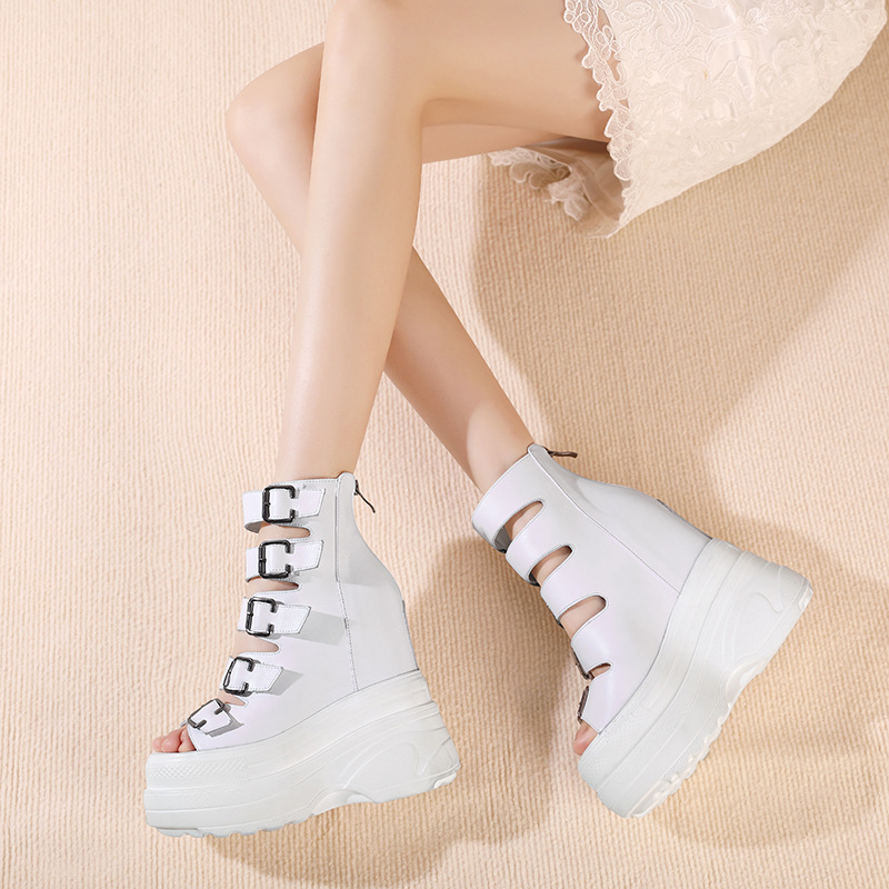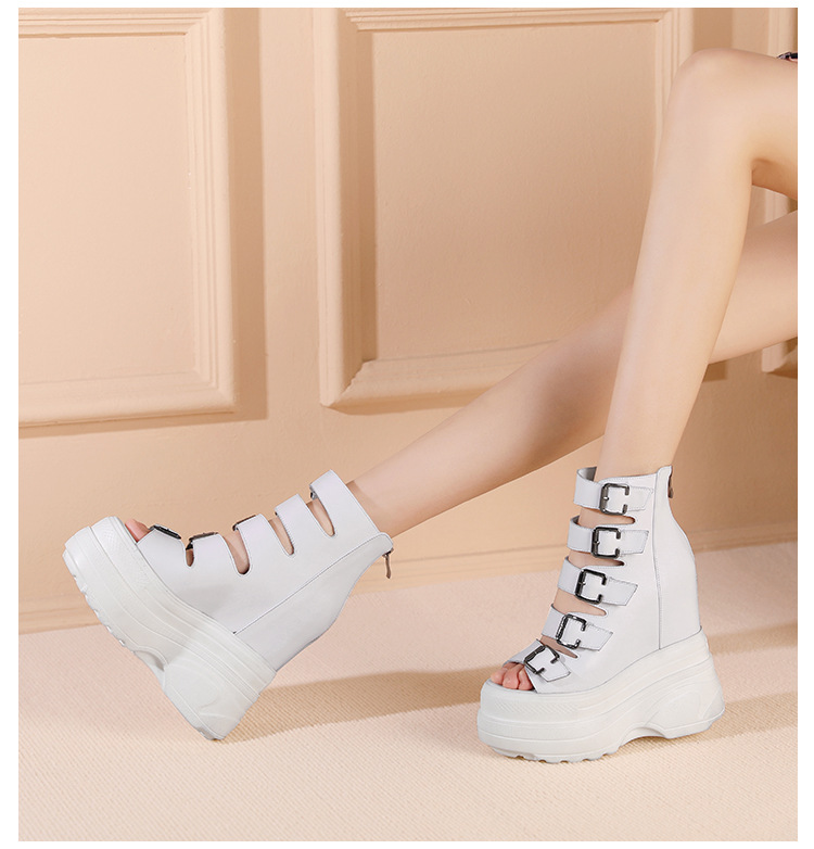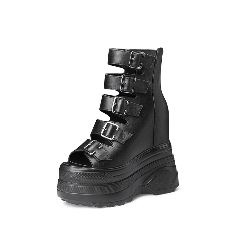 Đôi bốt mát mẻ này có phần đế dày bên trong giúp tăng chiều cao một cách tự nhiên. Kiểu dáng cổ điển với phần mũi hở tạo nên điểm nhấn thanh thoát. Đế ngoài dày và vững chắc, phù hợp để diện cùng nhiều loại trang phục khác nhau. Bạn có thể mang chúng trong những ngày tiết trời ấm áp, dạo phố hay gặp gỡ bạn bè đều rất thoải mái và dễ chịu. | Tên sản phẩm: Giày Cao Gót Nữ Cao 16cm Tăng Chiều Cao Miệng Cá Hàng Mùa Xuân Thu Đông - Giày Dép Nữ | Mã sản phẩm: C0370 - Giá: 3.400.000đ | Mã nhà sản xuất: QIDNG-G06Hình ảnh sản phẩm