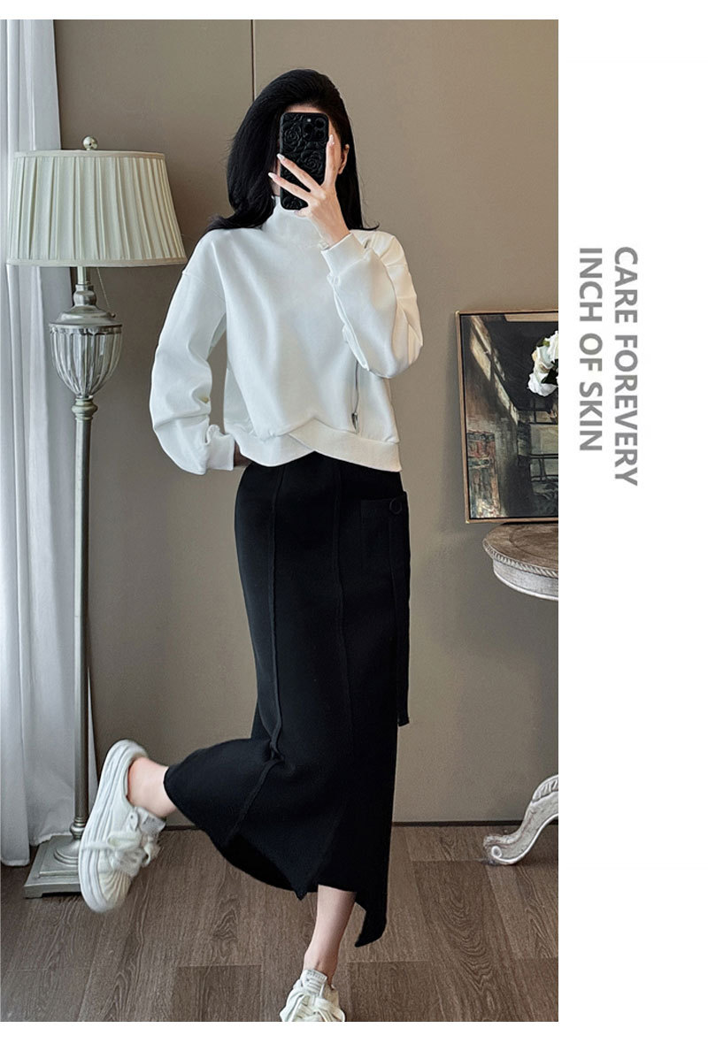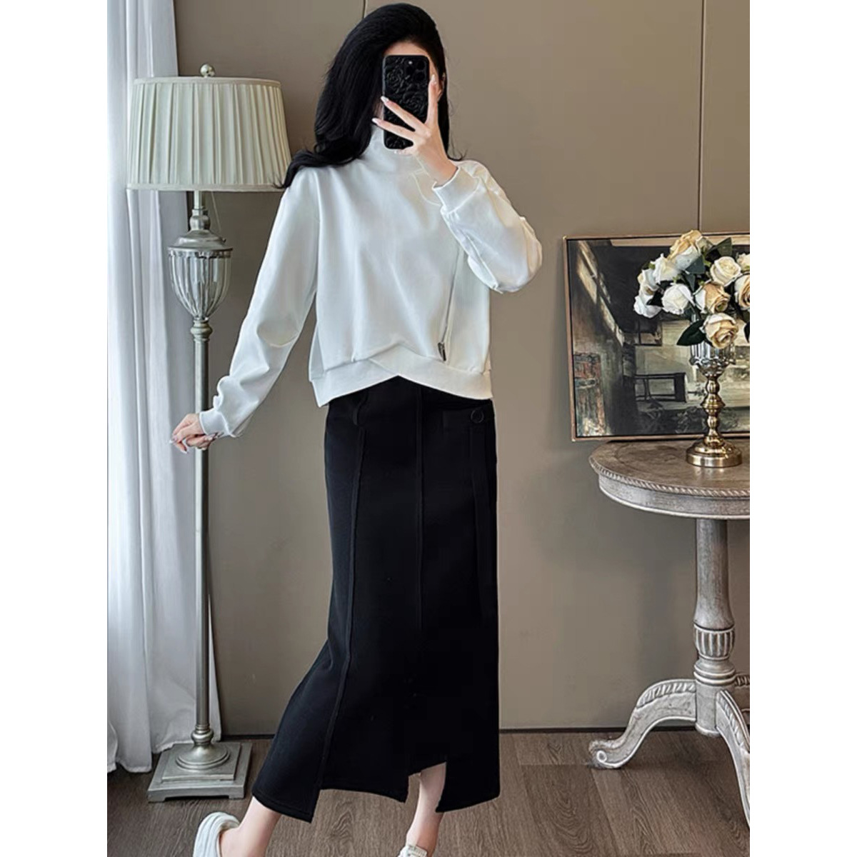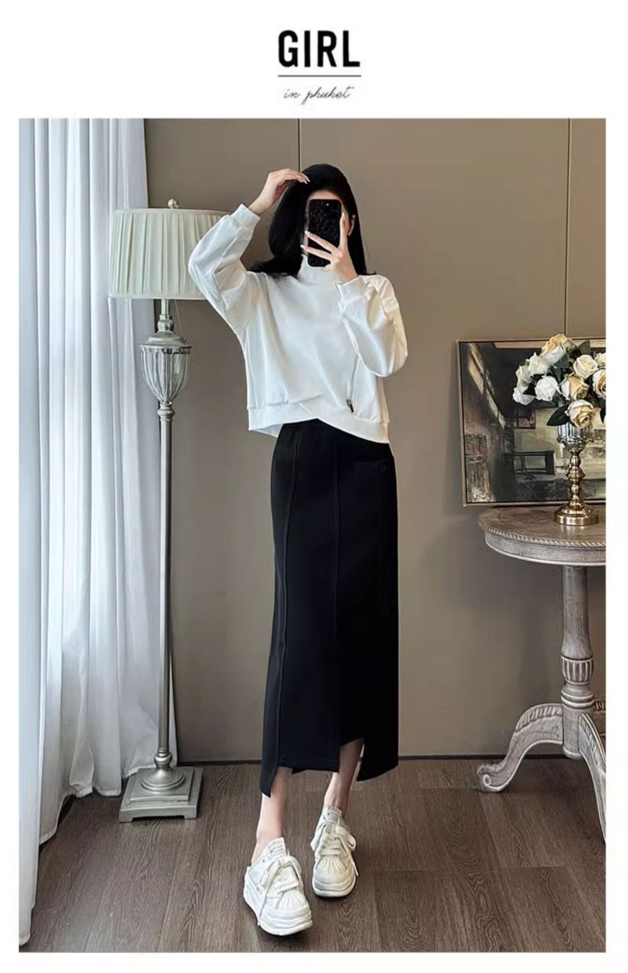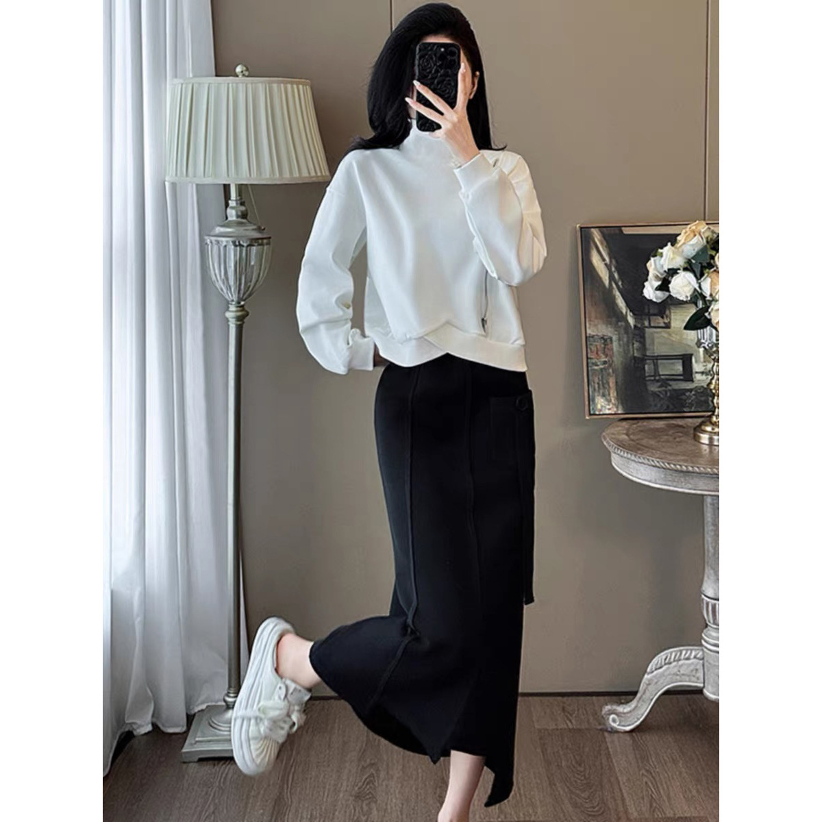 Bộ trang phục hai mảnh này gồm áo cổ cao và chân váy, rất phù hợp cho mùa lạnh. Áo có lớp lót mềm mại bên trong giữ ấm tốt, tông màu trắng dễ phối đồ. Chân váy màu đen ôm vừa vặn, tạo vẻ thanh lịch. Chất vải co giãn nhẹ, mang lại sự thoải mái khi mặc. Bạn có thể dùng bộ này đi làm, đi chơi hoặc dự tiệc nhẹ. Phong cách đơn giản nhưng tinh tế, dễ dàng kết hợp với phụ kiện. | Tên sản phẩm: Đồ Bộ Nữ Cả Bộ 2 Món Hàng Mùa Xuân Thu Đông - Thời Trang Nữ | Mã sản phẩm: C0380 - Giá: 1.390.000đ | Mã nhà sản xuất: AIANOR-G04Hình ảnh sản phẩm