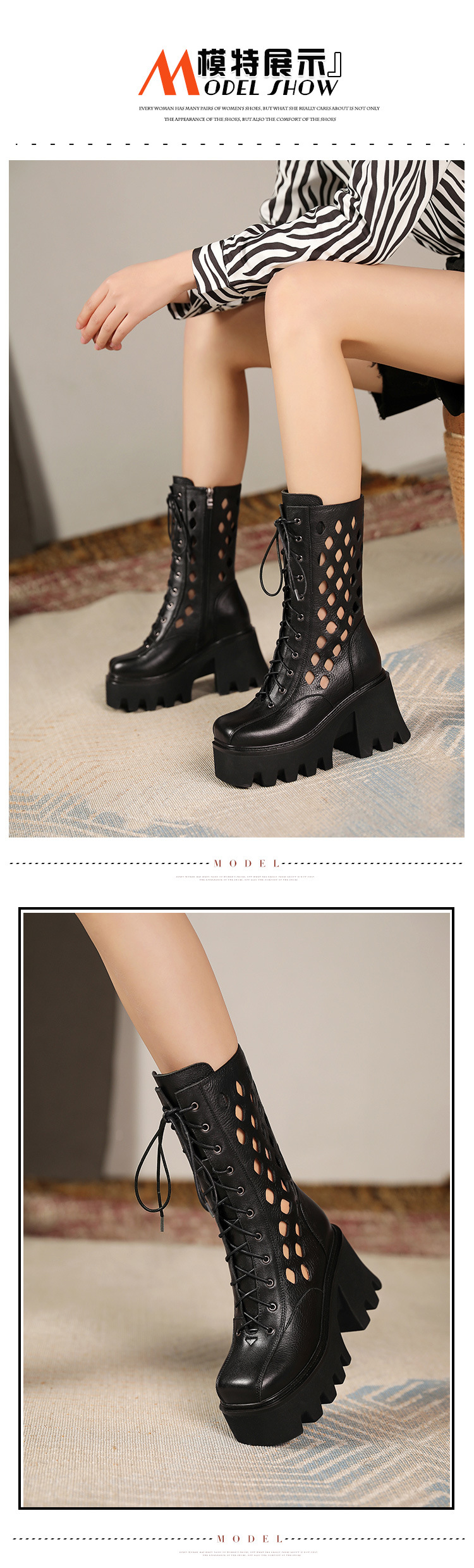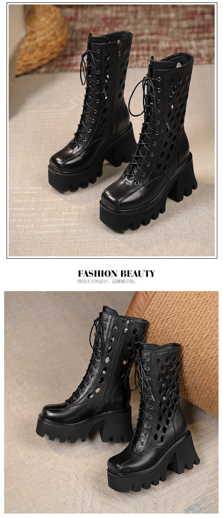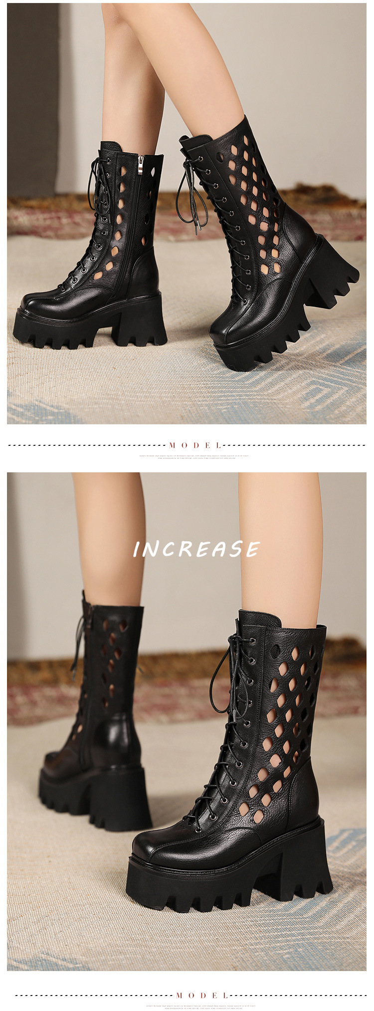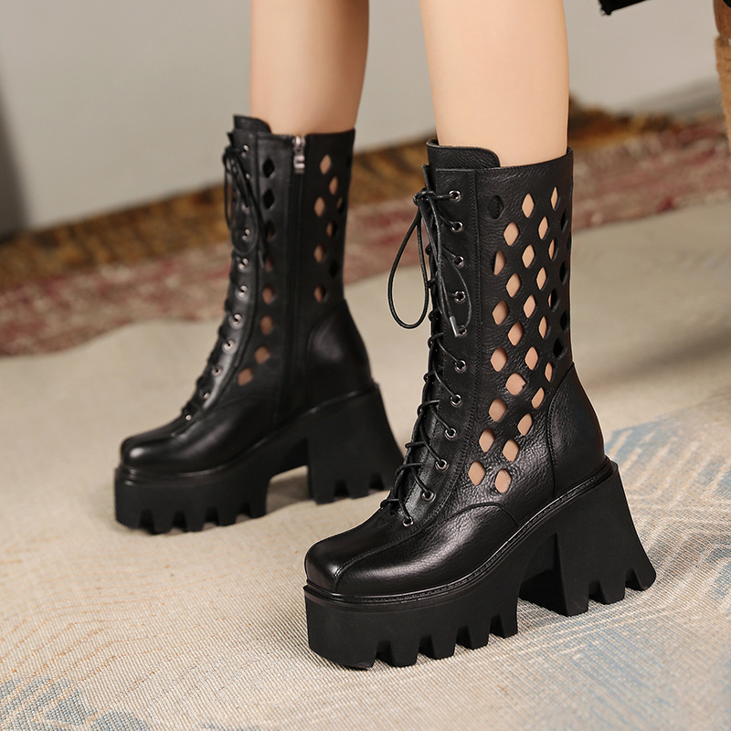 Giày bốt cổ trung nữ tính với phong cách cổ điển. Sản phẩm được làm từ chất liệu da thật, cho cảm giác mềm mại và bền đẹp. Đế giày dày kết hợp đế trong giúp tăng chiều cao nhẹ nhàng, tôn dáng người mặc. Phần gót chắc chắn tạo sự vững chãi khi di chuyển. Kiểu dáng có phần họa tiết khoét nhỏ tinh tế, dễ dàng phối cùng nhiều trang phục khác nhau như quần jeans hay váy. Mang giày khi đi dạo hoặc làm việc hằng ngày đều thoải mái. | Tên sản phẩm: Giày Cao Gót Nữ Chất Liệu Da Bò Cao 10cm Gót Vuông Tăng Chiều Cao Đế Cao Hàng Mùa Xuân Thu Đông Phục Cổ Cổ Điển - Giày Dép Nữ | Mã sản phẩm: C0462 - Giá: 3.590.000đ | Mã nhà sản xuất: QIDNG-G06Hình ảnh sản phẩm