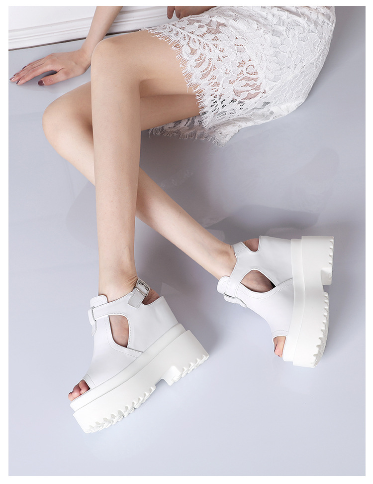 Đôi dép qu nữ mang phong cách La Mã với phần đế xuồng dày dặn, tạo thêm chiều cao cho người sử dụng một cách khéo léo. Sản phẩm được làm từ chất liệu da thật, cho cảm giác êm ái và thoáng mát nhờ thiết kế nhiều lỗ nhỏ trên mặt dép. Kiểu dáng hở mũi cá điệu đà, phù hợp để diện trong mùa hè. Bạn có thể dễ dàng phối cùng quần short hoặc váy để tạo nên vẻ ngoài năng động, thoải mái. | Tên sản phẩm: Giày Cao Gót Nữ Chất Liệu Da Bò Cao 12cm Tăng Chiều Cao Đế Xuồng Miệng Cá Hàng Mùa Hè - Giày Dép Nữ | Mã sản phẩm: C0464 - Giá: 2.660.000đ | Mã nhà sản xuất: QIDNG-G06Hình ảnh sản phẩm