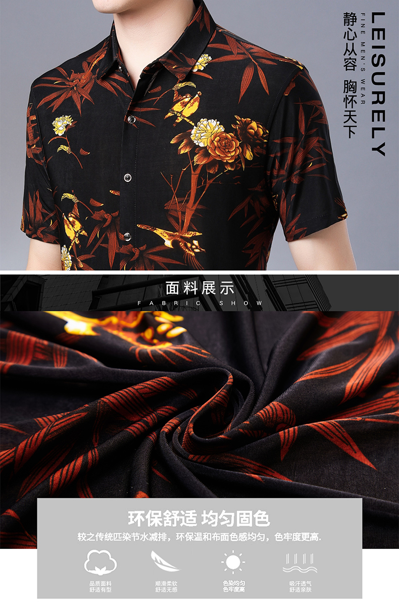 Áo sơ mi ngắn tay dành cho nam, có họa tiết in nổi bật. Chất vải co giãn nhẹ, mát mẻ và thoáng khí, mang lại cảm giác dễ chịu khi mặc vào mùa hè. Kiểu dáng rộng rãi thoải mái, phù hợp cho các hoạt động thường ngày. Sản phẩm có phong cách thiết kế mang nét truyền thống. Có thể mặc kết hợp với quần dài hoặc quần short để tạo nên những bộ trang phục đẹp mắt. | Tên sản phẩm: Áo Sơ Mi Nam Ngắn Tay Họa Tiết Hoa Hàng Mùa Hè Trung Niên - Thời Trang Nam | Mã sản phẩm: C0480 - Giá: 650.000đ | Mã nhà sản xuất: MERELA-G02Hình ảnh sản phẩm