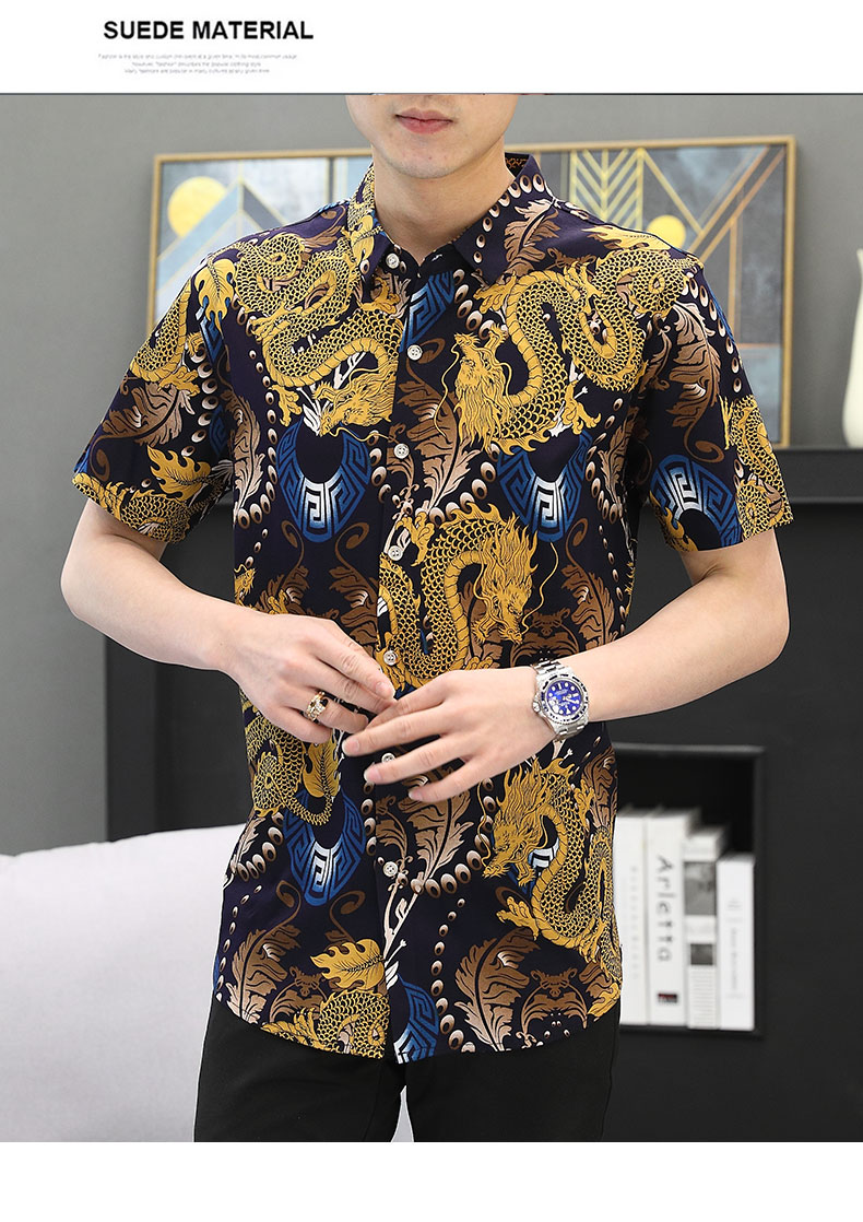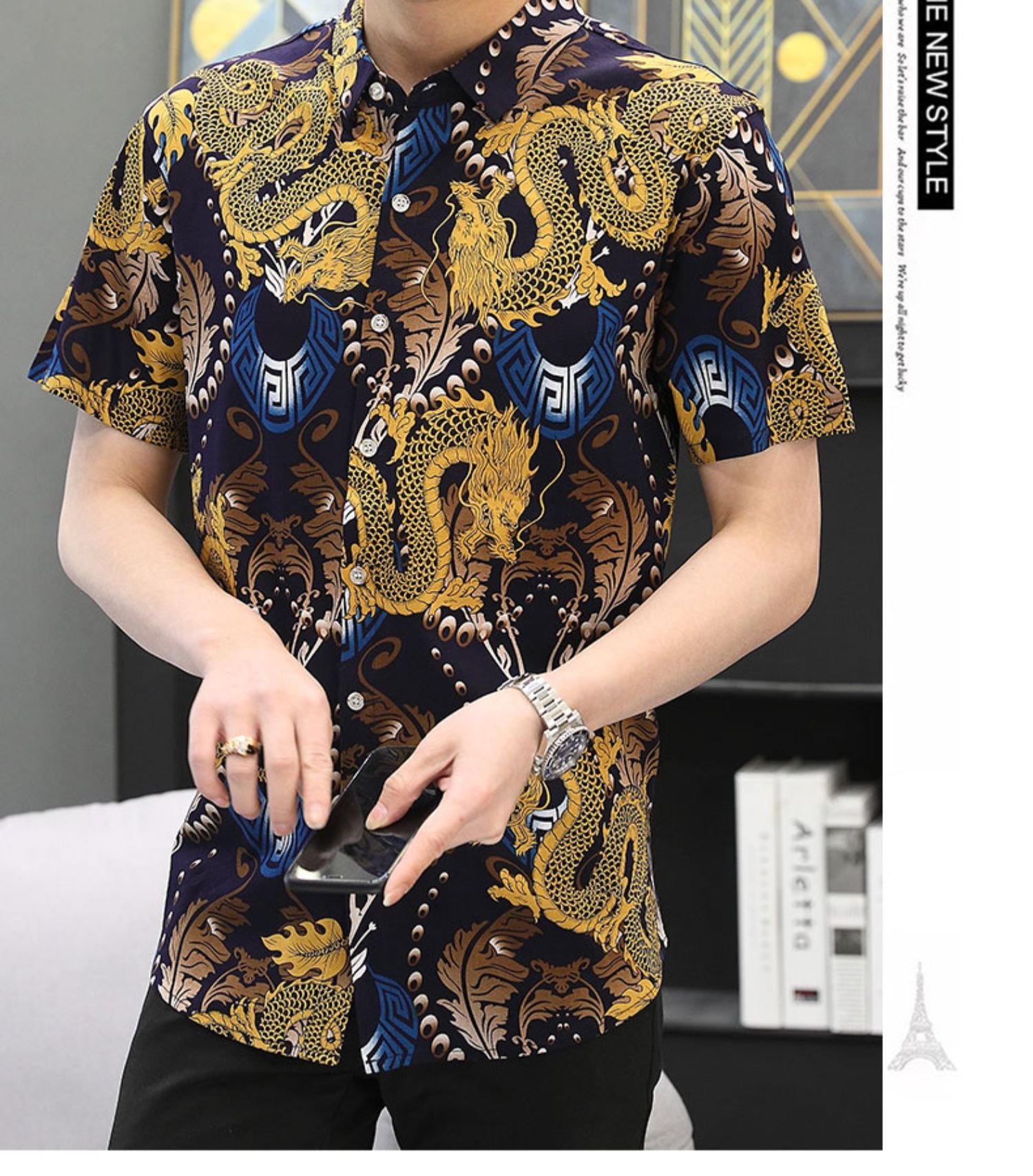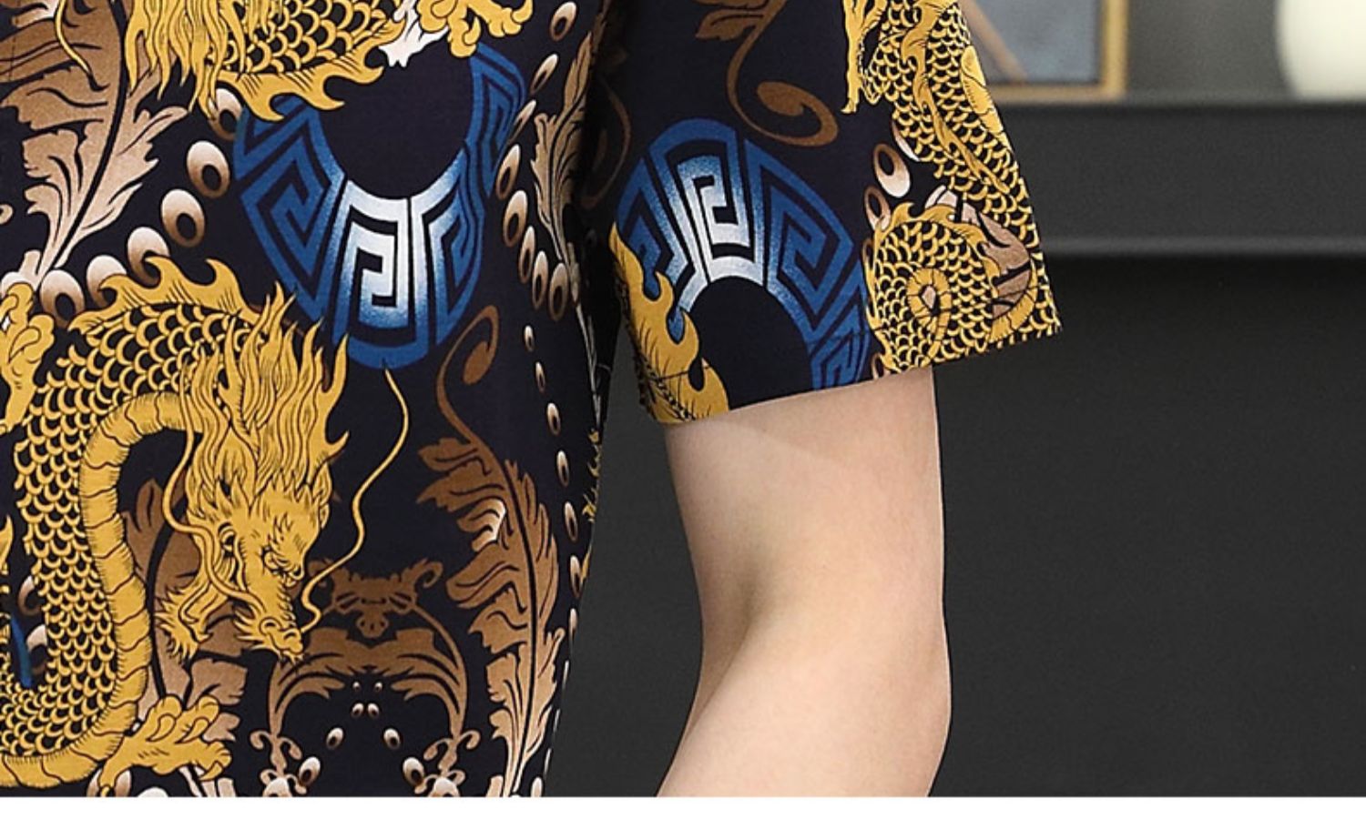 Áo sơ mi ngắn tay dành cho nam, được làm từ chất liệu bông mềm mại, thoáng mát, rất phù hợp cho những ngày hè oi bức. Áo có kiểu dáng thoải mái, phong cách in hình con rồng cách điệu mang nét đẹp truyền thống. Sản phẩm dễ dàng phối cùng quần short hoặc quần âu để tạo nên những bộ trang phục hàng ngày. Bạn có thể mặc đi làm, đi chơi hay dự các buổi gặp mặt thông thường. | Tên sản phẩm: Áo Sơ Mi Nam Chất Liệu Vải Bông Ngắn Tay Họa Tiết Hoa Hàng Mùa Hè Trung Niên - Thời Trang Nam | Mã sản phẩm: C0500 - Giá: 980.000đ | Mã nhà sản xuất: MERELA-G03Hình ảnh sản phẩm