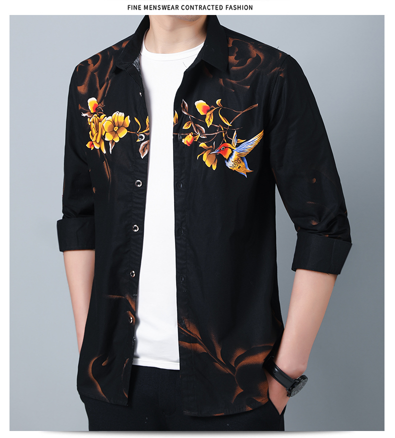 Áo sơ mi dài tay dành cho nam, lấy cảm hứng từ nét vẽ họa tiết đặc sắc. Kiểu dáng rộng rãi thoải mái, tạo cảm giác dễ chịu khi mặc. Trên nền vải là những họa tiết in nổi bật, mang phong cách hiện đại nhưng vẫn gợi nhớ đến những giá trị truyền thống. Sản phẩm phù hợp cho mùa xuân hoặc những ngày se lạnh. Có thể mặc kết hợp với quần jean hoặc quần âu đơn giản để tạo điểm nhấn cho trang phục hằng ngày. | Tên sản phẩm: Áo Sơ Mi Nam Dài Tay Họa Tiết Hoa Hàng Mùa Xuân Thu Đông Phong Cách Trẻ Trung - Thời Trang Nam | Mã sản phẩm: C0533 - Giá: 1.140.000đ | Mã nhà sản xuất: MERELA-G04Hình ảnh sản phẩm