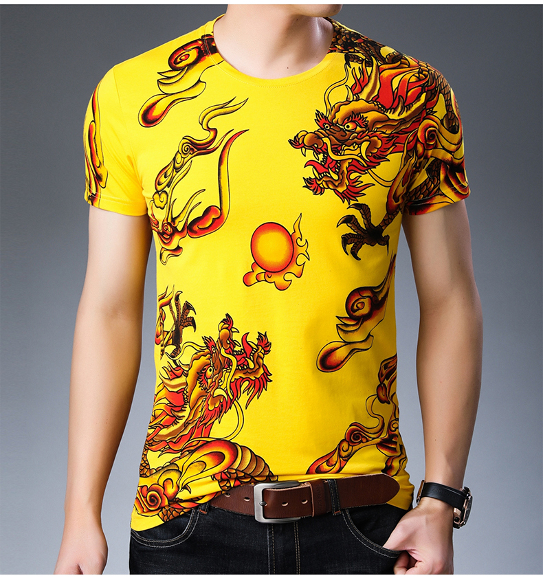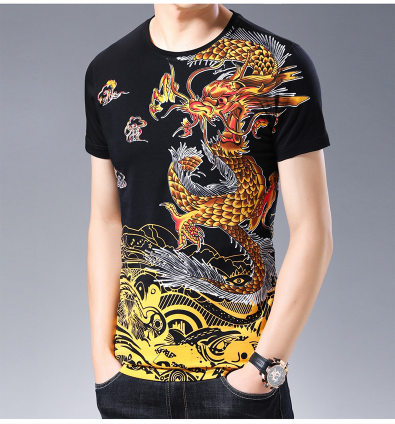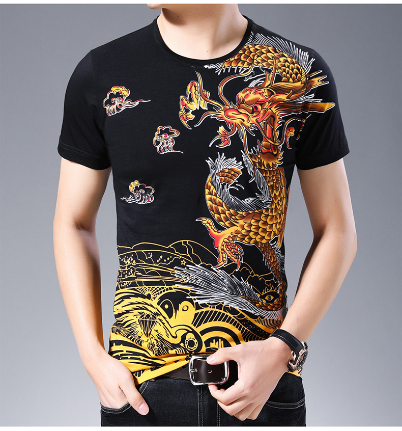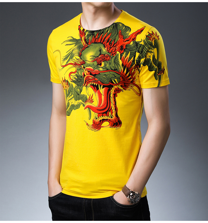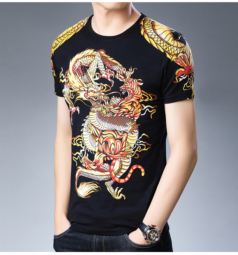 Áo thun ngắn tay dành cho nam, được làm từ chất liệu bông mềm mại, thoáng mát, rất phù hợp cho những ngày hè oi bức. Điểm nhấn nổi bật là hình in con rồng cách điệu mang phong cách truyền thống, tạo nên nét cá tính mạnh mẽ. Sản phẩm có kiểu dáng cơ bản, dễ dàng phối hợp với nhiều loại trang phục khác nhau như quần jean hay quần short. Chỉ cần giặt nhẹ nhàng và phơi khô tự nhiên để giữ hình in được bền đẹp theo thời gian. | Tên sản phẩm: Áo Thun Nam Chất Liệu Vải Bông Ngắn Tay Họa Tiết Hoa Hàng Mùa Hè Phong Cách Trẻ Trung - Thời Trang Nam | Mã sản phẩm: C0536 - Giá: 880.000đ | Mã nhà sản xuất: MERELA-G03Hình ảnh sản phẩm