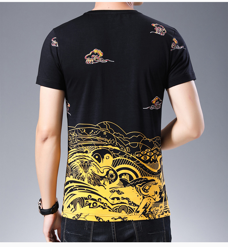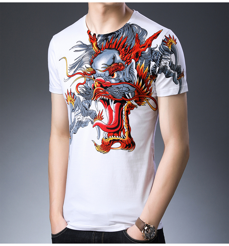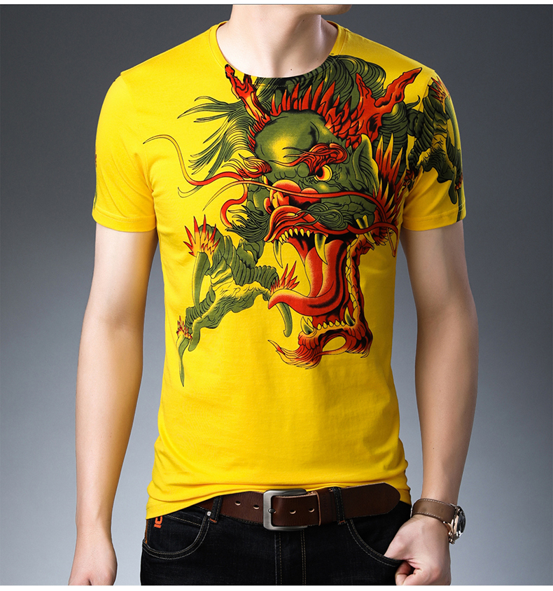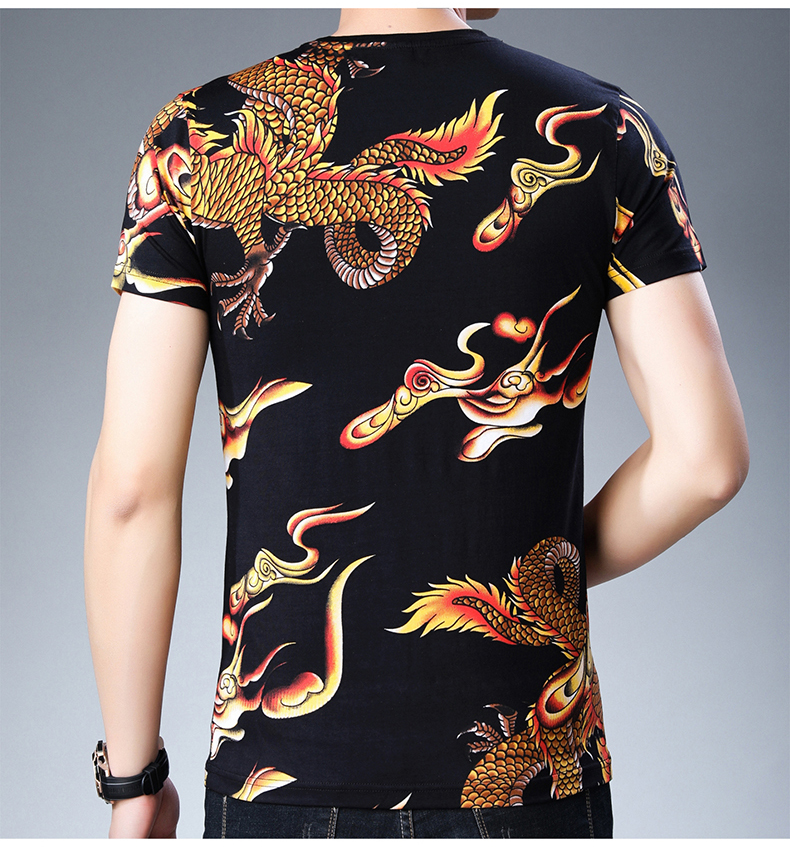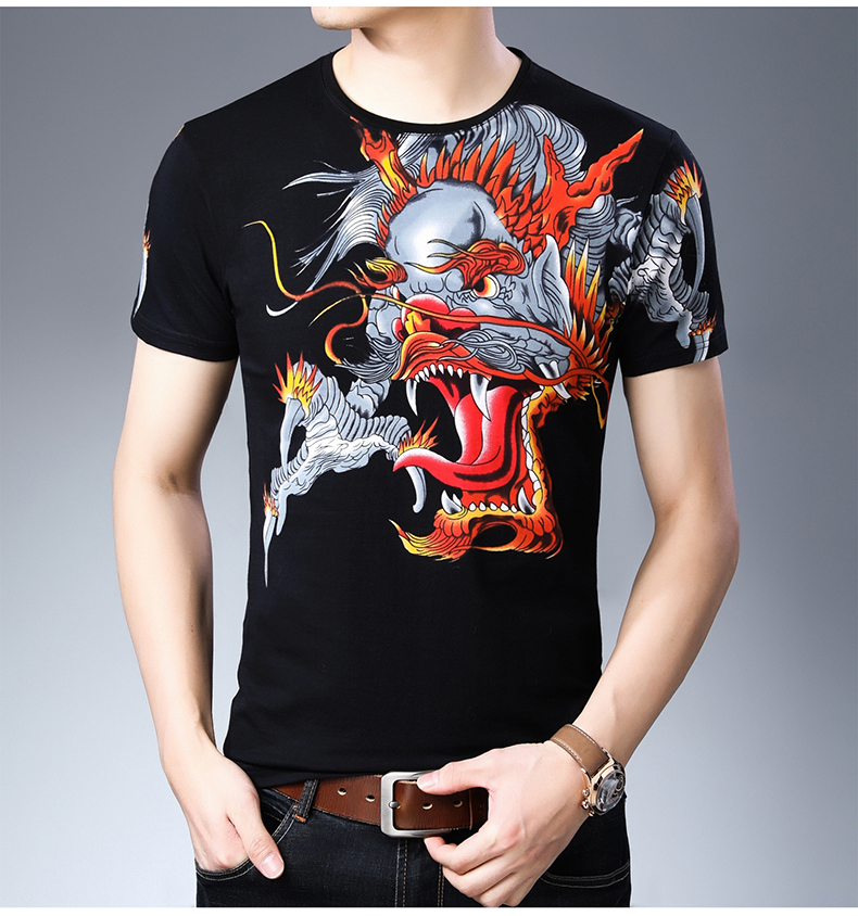 Áo thun ngắn tay dành cho nam, được làm từ chất liệu bông mềm mại, thoáng mát, rất phù hợp cho những ngày hè oi bức. Điểm nhấn nổi bật là hình in con rồng cách điệu mang phong cách truyền thống, tạo nên nét cá tính mạnh mẽ. Sản phẩm có kiểu dáng cơ bản, dễ dàng phối hợp với nhiều loại trang phục khác nhau như quần jean hay quần short. Chỉ cần giặt nhẹ nhàng và phơi khô tự nhiên để giữ hình in được bền đẹp theo thời gian. | Tên sản phẩm: Áo Thun Nam Chất Liệu Vải Bông Ngắn Tay Họa Tiết Hoa Hàng Mùa Hè Phong Cách Trẻ Trung - Thời Trang Nam | Mã sản phẩm: C0536 - Giá: 880.000đ | Mã nhà sản xuất: MERELA-G03Hình ảnh sản phẩm