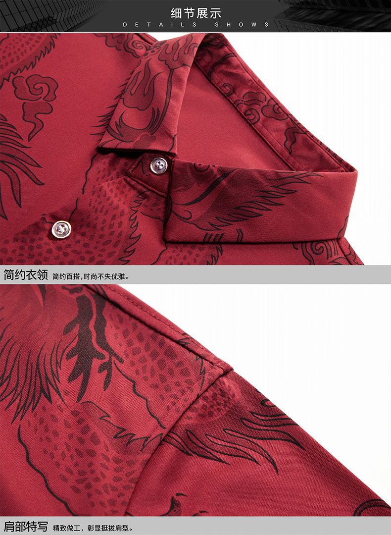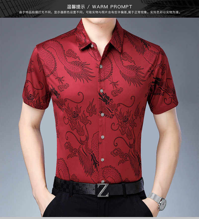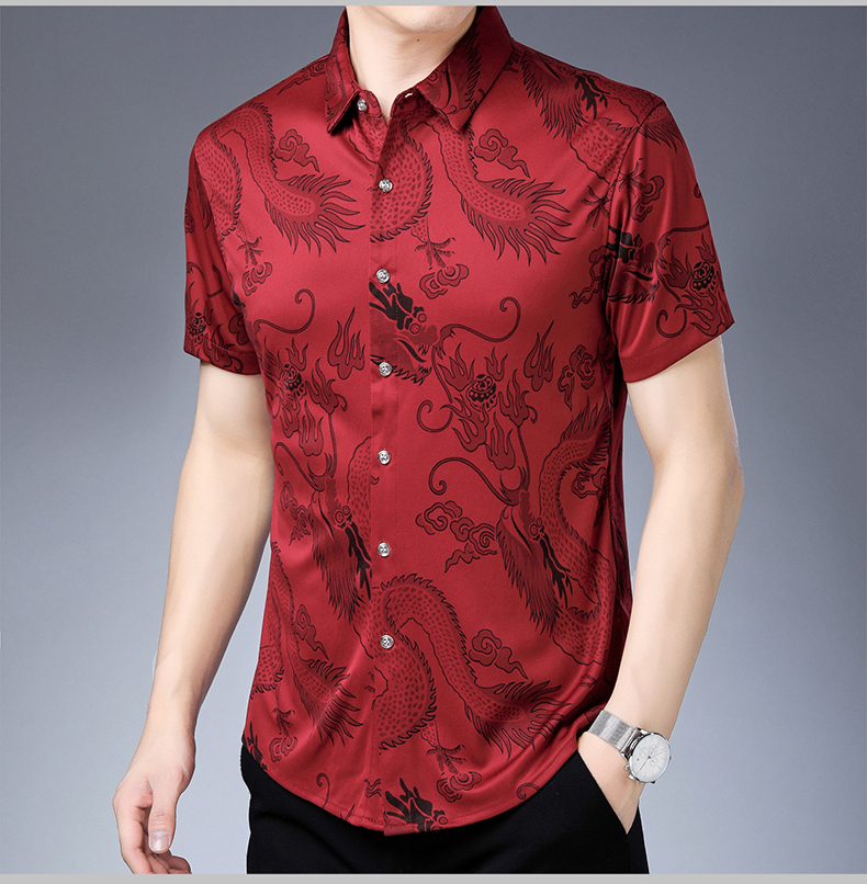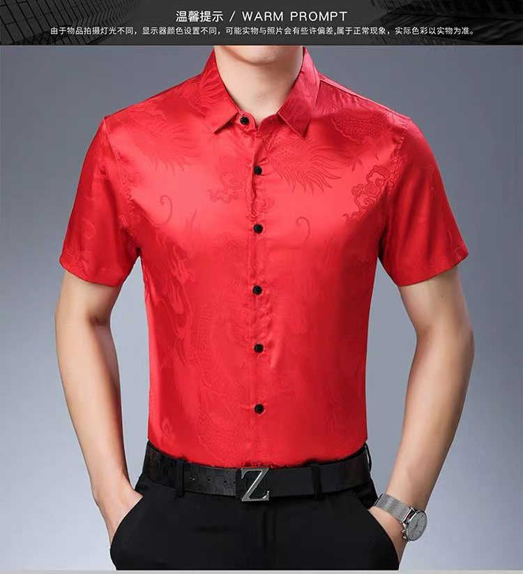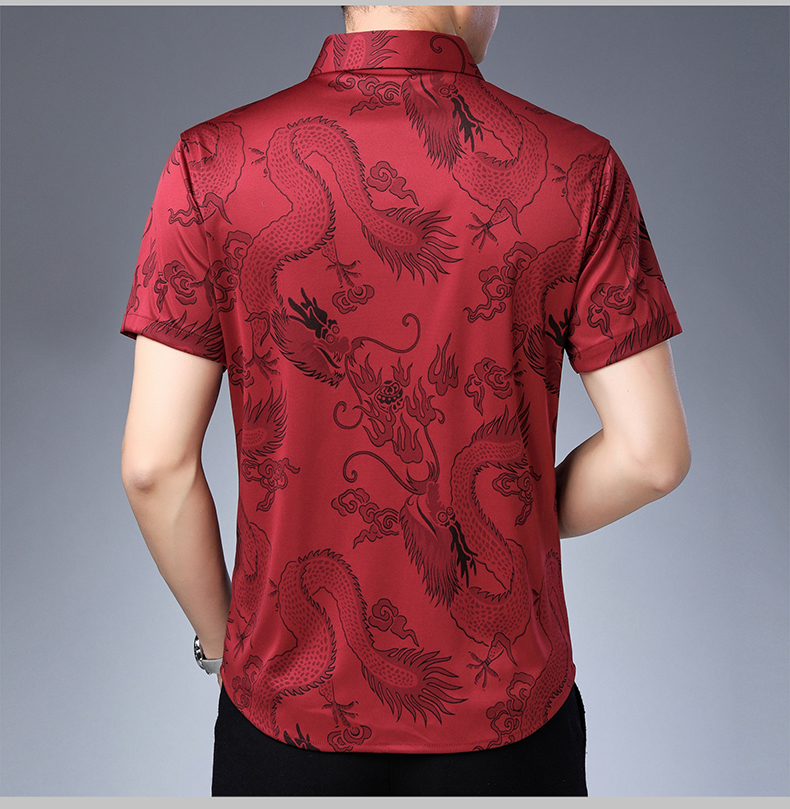 Áo sơ mi ngắn tay dành cho các bác trung niên, có họa tiết rồng thêu tinh tế. Chất liệu vải thoáng mát, kiểu dáng rộng rãi tạo cảm giác dễ chịu khi mặc. Sản phẩm đặc biệt phù hợp cho những dịp quan trọng trong năm với tông màu đỏ nổi bật. Có thể mặc kết hợp với quần âu hoặc quần vải thông thường. Giặt tay hoặc máy đều được, nên giặt với nước lạnh để giữ màu vải đẹp lâu. | Tên sản phẩm: Áo Sơ Mi Nam Ngắn Tay Hàng Mùa Hè Trung Niên - Thời Trang Nam | Mã sản phẩm: C0547 - Giá: 800.000đ | Mã nhà sản xuất: MERELA-G02Hình ảnh sản phẩm