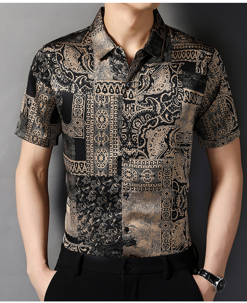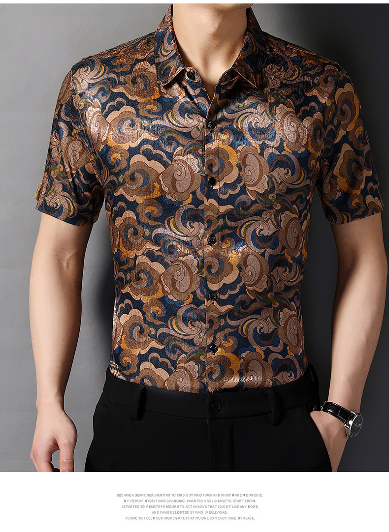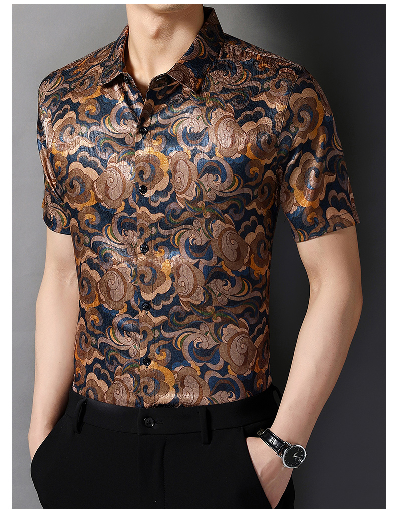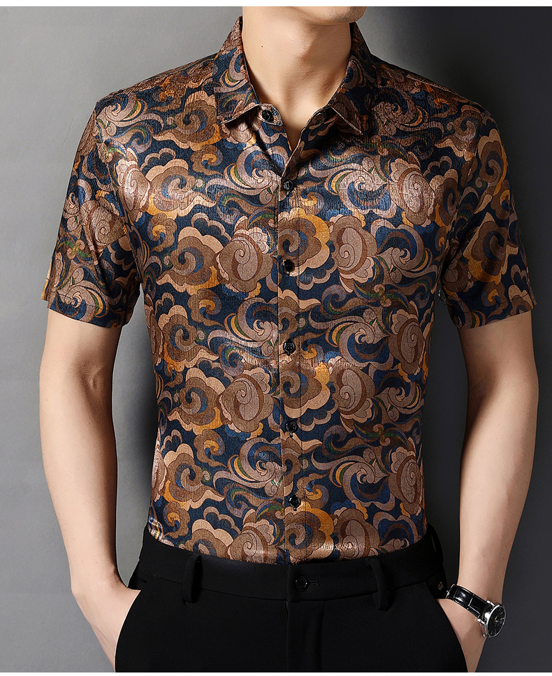 Áo sơ mi ngắn tay dành cho nam, kiểu dáng thư giãn với họa tiết hoa văn nhẹ nhàng. Chất vải mềm mại, thoáng mát, mang lại cảm giác dễ chịu khi mặc vào mùa hè. Thiết kế rộng rãi, phù hợp cho các hoạt động hằng ngày. Có thể mặc kết hợp với quần short hoặc quần dài tùy thích. Sản phẩm dễ dàng giặt sạch và bảo quản như các loại áo thông thường. | Tên sản phẩm: Áo Sơ Mi Nam Ngắn Tay Họa Tiết Hoa Hàng Mùa Hè Trung Niên - Thời Trang Nam | Mã sản phẩm: C0559 - Giá: 880.000đ | Mã nhà sản xuất: MERELA-G03Hình ảnh sản phẩm