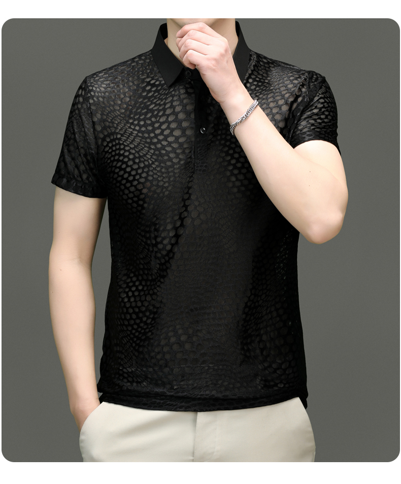 Áo thun cổ bẻ dành cho nam, kiểu dáng polo với chất vải mát lạnh, thoáng khí nhờ thiết kế có các lỗ nhỏ li ti. Sản phẩm có cổ bẻ và hàng cúc truyền thống, phù hợp cho những ngày hè oi bức. Bạn có thể mặc đi làm, dạo phố hay các sinh hoạt thường ngày. Chỉ cần giặt nhẹ và phơi khô tự nhiên để giữ áo bền đẹp theo thời gian. | Tên sản phẩm: Áo Thun Nam Ngắn Tay Kín Cổ Hàng Mùa Hè Trung Niên - Thời Trang Nam | Mã sản phẩm: C0560 - Giá: 1.220.000đ | Mã nhà sản xuất: MERELA-G04Hình ảnh sản phẩm