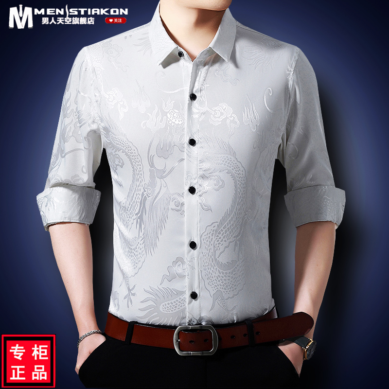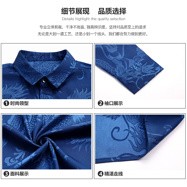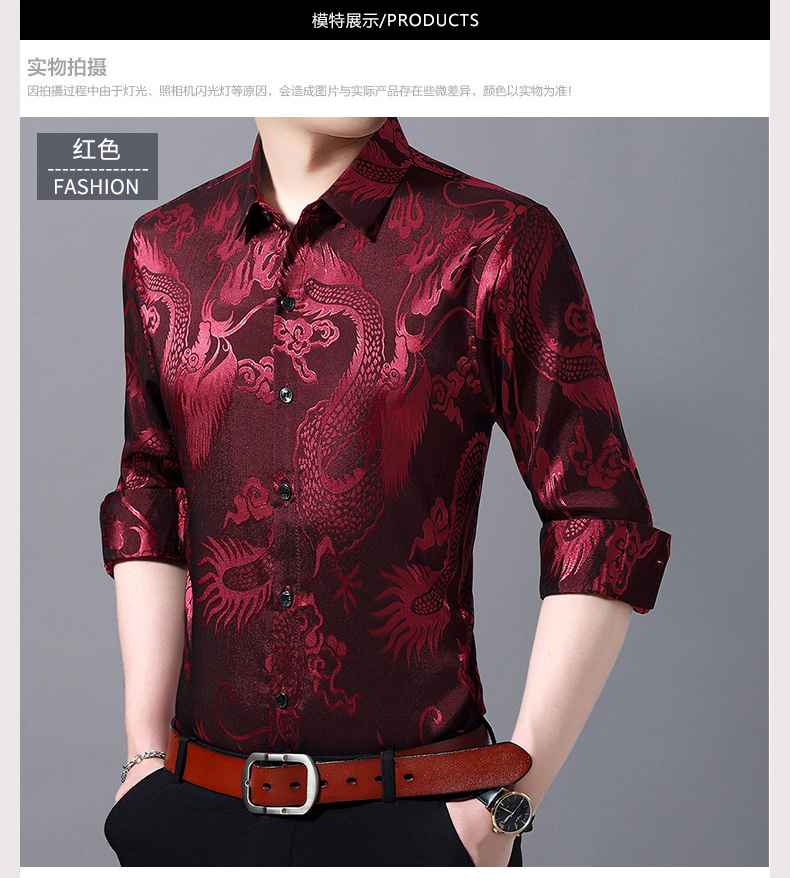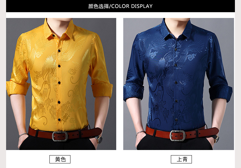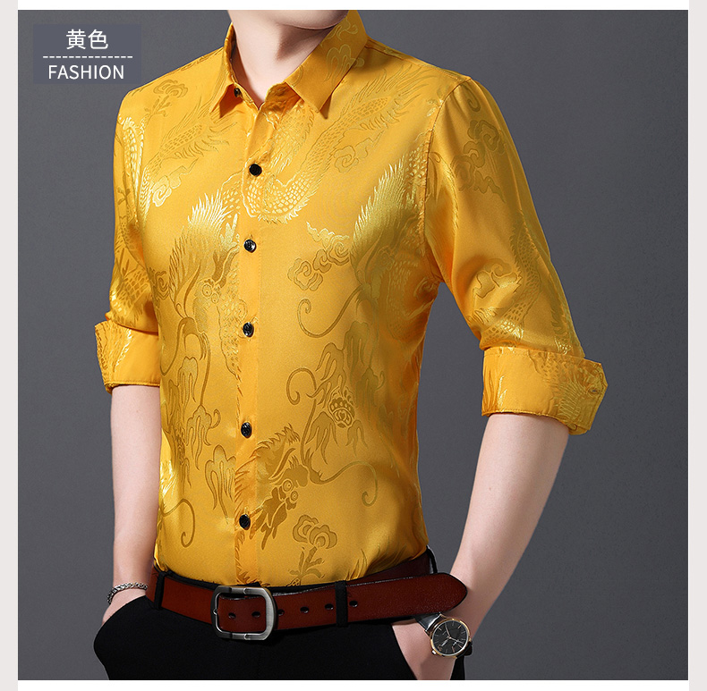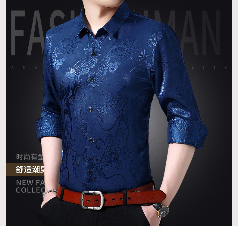 Áo sơ mi dài tay dành cho nam, có họa tiết hình rồng được dệt nổi độc đáo. Chất vải mỏng nhẹ, thoáng mát, rất phù hợp cho tiết trời xuân ấm áp. Kiểu dáng rộng rãi tạo cảm giác thoải mái, phóng khoáng khi mặc. Sản phẩm mang phong cách cổ điển, phù hợp cho các dịp sinh hoạt thường ngày. Có thể kết hợp cùng quần âu hoặc quần vải để tạo nên những phong cách khác nhau. | Tên sản phẩm: Áo Sơ Mi Nam Dài Tay Họa Tiết Hoa Hàng Mùa Xuân Thu Đông Trung Niên - Thời Trang Nam | Mã sản phẩm: C0563 - Giá: 770.000đ | Mã nhà sản xuất: MERELA-G02Hình ảnh sản phẩm