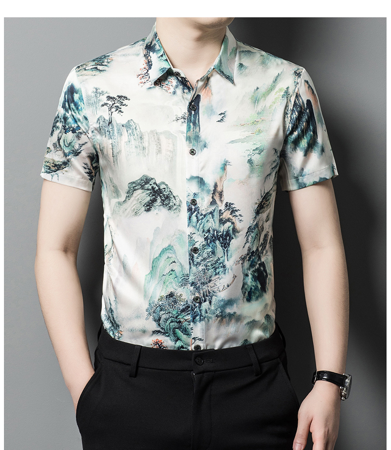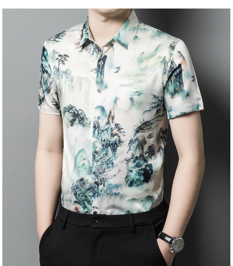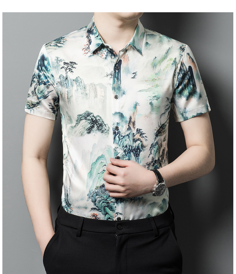 Áo sơ mi ngắn tay dành cho nam với họa tiết in mực vẽ mang phong cách cổ điển. Chất vải lụa mát lạnh, nhẹ nhàng và thoáng khí, rất phù hợp cho mùa hè. Kiểu dáng rộng rãi tạo cảm giác thoải mái, dễ chịu khi mặc. Sản phẩm thích hợp để mặc đi chơi, dạo phố hay trong những dịp thư giãn. Chỉ cần giặt nhẹ và phơi khô tự nhiên để giữ áo bền đẹp theo thời gian. | Tên sản phẩm: Áo Sơ Mi Nam Ngắn Tay Họa Tiết Hoa Hàng Mùa Hè Trung Niên - Thời Trang Nam | Mã sản phẩm: C0590 - Giá: 1.220.000đ | Mã nhà sản xuất: MERELA-G04Hình ảnh sản phẩm