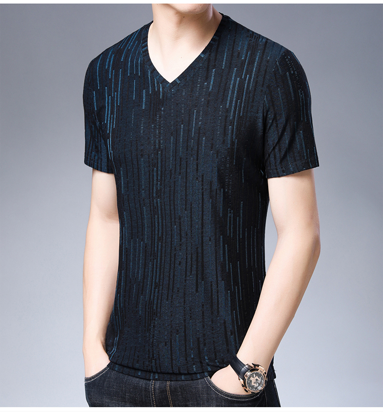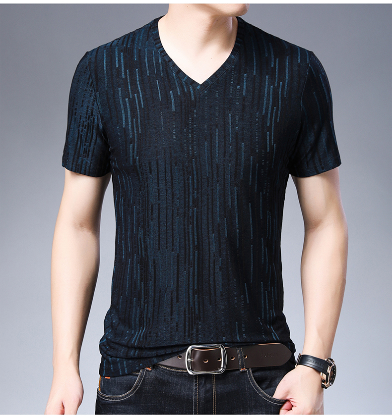 Áo thun ngắn tay dành cho nam với thiết kế cổ chữ V tạo cảm giác thoải mái, dễ chịu. Chất vải mát lạnh, nhẹ nhàng và có độ co giãn nhẹ, thấm hút mồ hôi tốt, rất phù hợp cho những ngày hè oi bức. Kiểu dáng ôm vừa phải giúp tôn dáng người mặc. Sản phẩm dễ dàng phối cùng nhiều loại quần khác nhau, có thể mặc đi làm, đi chơi hoặc mặc ở nhà. | Tên sản phẩm: Áo Thun Nam Dáng Ôm Ngắn Tay Cổ Chữ V Hàng Mùa Hè Phong Cách Trẻ Trung Phong Cách Hàn Quốc - Thời Trang Nam | Mã sản phẩm: C0608 - Giá: 770.000đ | Mã nhà sản xuất: MERELA-G02Hình ảnh sản phẩm