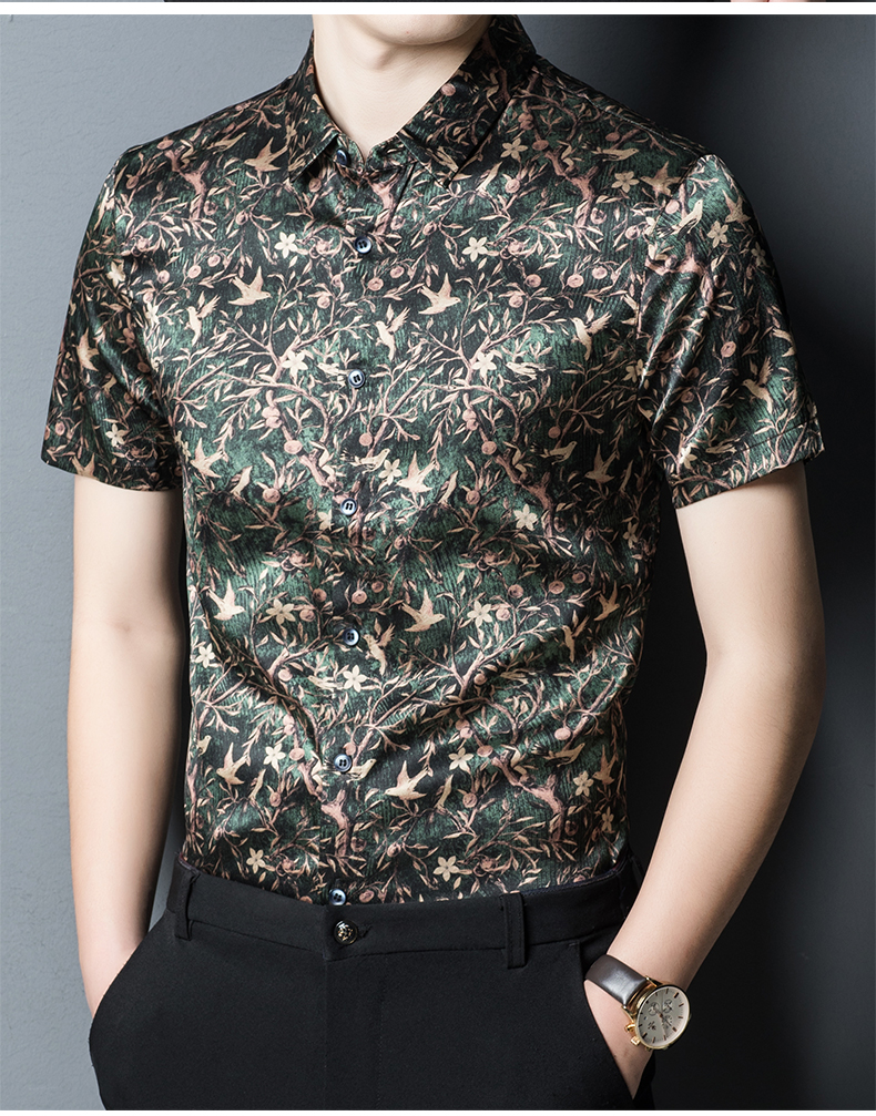 Áo sơ mi ngắn tay dành cho nam, được dệt hoàn toàn từ sợi tơ tằm tự nhiên. Chất vải mềm mượt như nhung, mang lại cảm giác mát mẻ, dễ chịu khi mặc vào mùa hè. Áo có kiểu dáng bán tay lịch sự, phù hợp nhiều dịp. Họa tiết hoa nhỏ in chìm trên nền vải, tạo điểm nhấn tinh tế. Sản phẩm dễ bảo quản, có thể giặt tay nhẹ nhàng và phơi trong bóng mát. | Tên sản phẩm: Áo Sơ Mi Nam Chất Liệu Lụa Tơ Tằm Ngắn Tay Họa Tiết Hoa Hàng Mùa Hè Trung Niên - Thời Trang Nam | Mã sản phẩm: C0617 - Giá: 3.310.000đ | Mã nhà sản xuất: MERELA-G06Hình ảnh sản phẩm