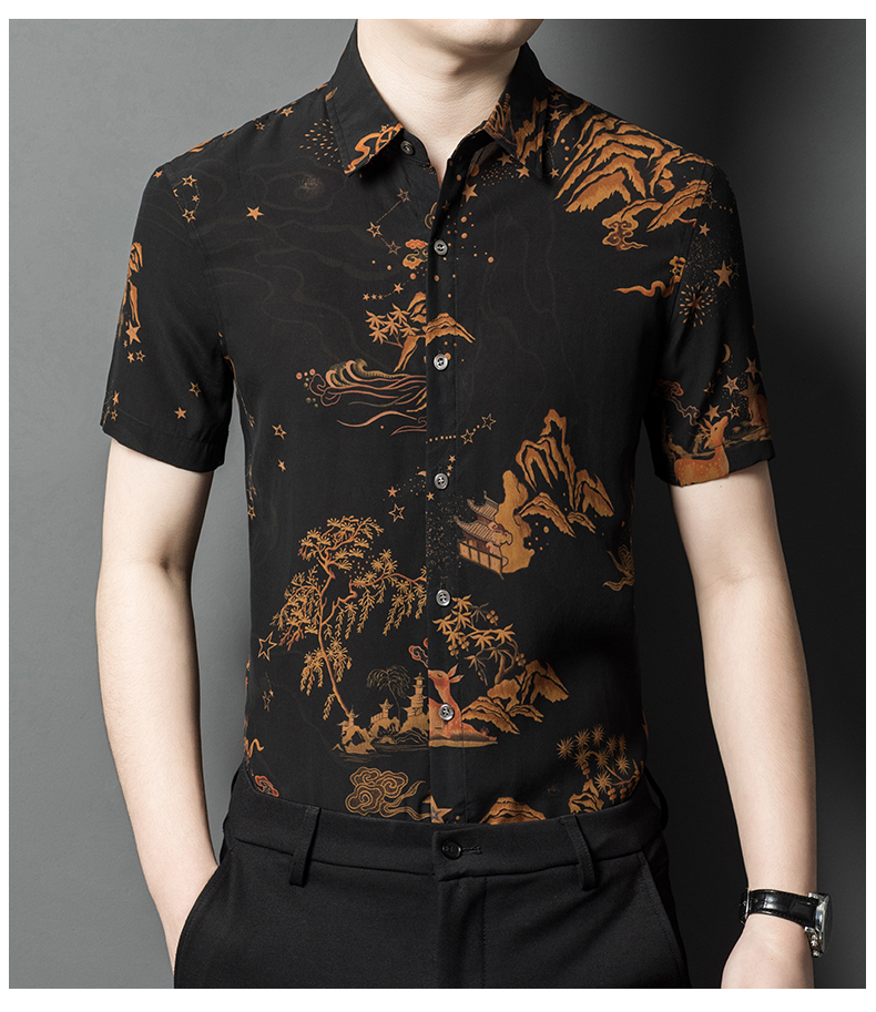 Áo sơ mi ngắn tay dành cho nam, được dệt hoàn toàn từ sợi tơ tằm tự nhiên. Chất vải mềm mại, nhẹ nhàng và thoáng mát, mang lại cảm giác dễ chịu khi mặc. Áo có kiểu dáng cổ điển, in họa tiết hoa văn thanh lịch phù hợp với nhiều dịp. Sản phẩm dễ phối cùng quần âu hoặc quần vải. Giặt nhẹ bằng tay với nước lạnh và phơi nơi râm mát để giữ form áo và độ bền màu. | Tên sản phẩm: Áo Sơ Mi Nam Chất Liệu Lụa Tơ Tằm Ngắn Tay Họa Tiết Hoa Trung Niên - Thời Trang Nam | Mã sản phẩm: C0620 - Giá: 4.510.000đ | Mã nhà sản xuất: MERELA-G06Hình ảnh sản phẩm