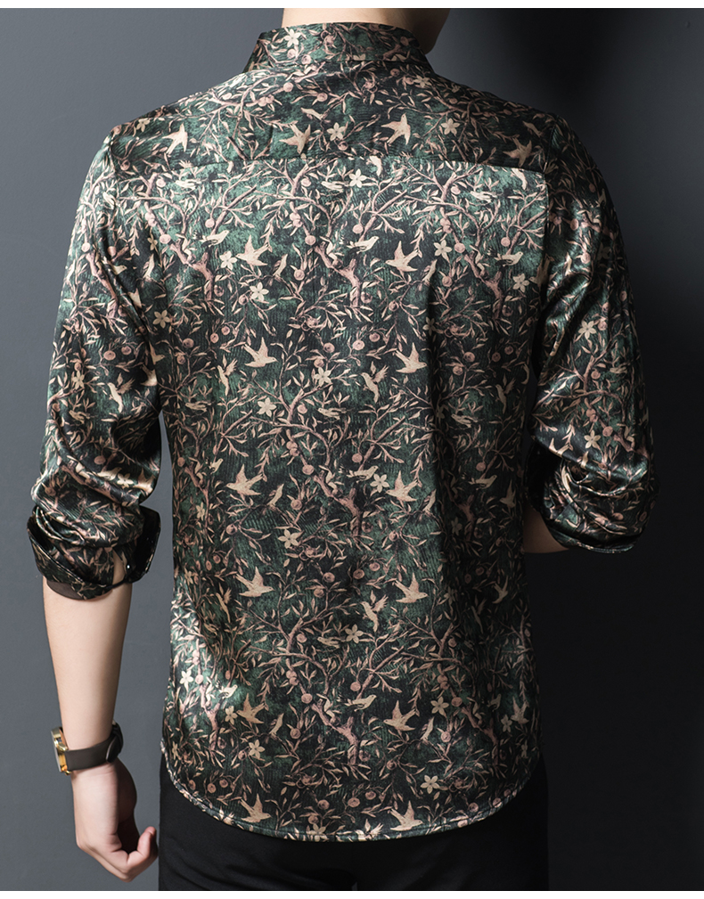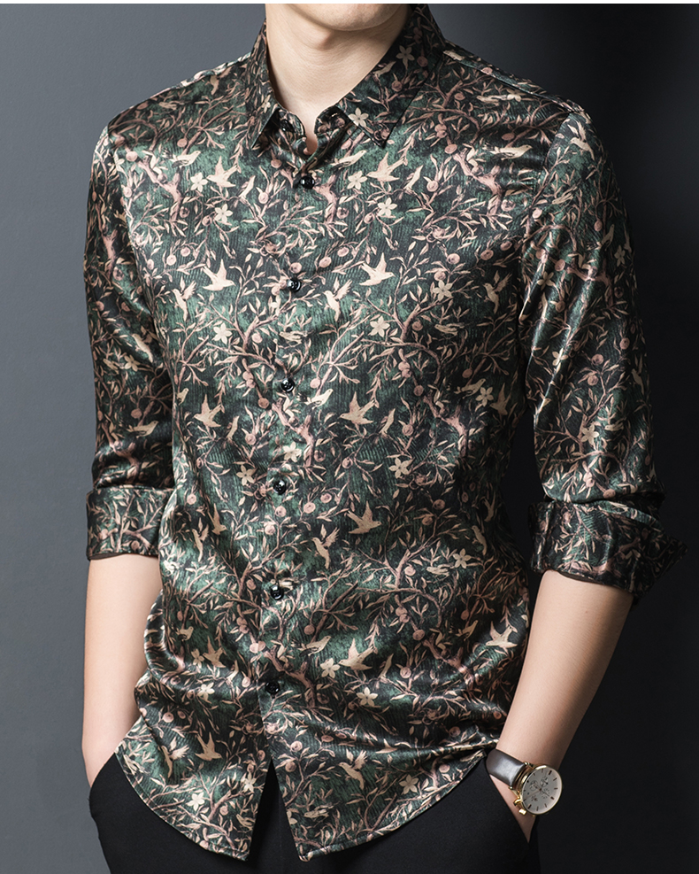 Áo sơ mi dài tay có họa tiết hoa nhỏ dành cho nam, được dệt từ sợi tơ tằm tự nhiên. Chất vải mềm mại, thoáng mát và thoải mái khi mặc, phù hợp cho tiết trời ấm áp. Kiểu dáng thiết kế đơn giản, phong cách nhẹ nhàng, dễ dàng phối cùng nhiều loại trang phục khác nhau. Sản phẩm có thể giặt tay nhẹ nhàng với nước lạnh và phơi ở nơi râm mát để giữ được độ bền đẹp. | Tên sản phẩm: Áo Sơ Mi Nam Chất Liệu Lụa Tơ Tằm Dài Tay Họa Tiết Hoa Hàng Mùa Hè Trung Niên - Thời Trang Nam | Mã sản phẩm: C0631 - Giá: 3.680.000đ | Mã nhà sản xuất: MERELA-G06Hình ảnh sản phẩm