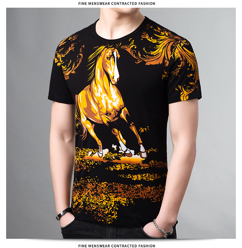 Áo thun ngắn tay dành cho nam, in hình ngựa cách điệu nổi bật và đầy cá tính. Chất liệu cotton bóng mịn, thoáng khí và thấm hút mồ hôi tốt, mang lại sự dễ chịu khi mặc vào mùa hè. Kiểu dáng ôm vừa vặn, tôn dáng người mặc. Sản phẩm phù hợp để mặc hằng ngày, đi chơi hay kết hợp làm áo lớp. Giặt với nước thường, tránh ngâm với chất tẩy mạnh để giữ hình in được bền lâu. | Tên sản phẩm: Áo Thun Nam Chất Liệu Vải Bông Dáng Ôm Ngắn Tay Họa Tiết Hoa Hàng Mùa Hè - Thời Trang Nam | Mã sản phẩm: C0639 - Giá: 880.000đ | Mã nhà sản xuất: MERELA-G03Hình ảnh sản phẩm