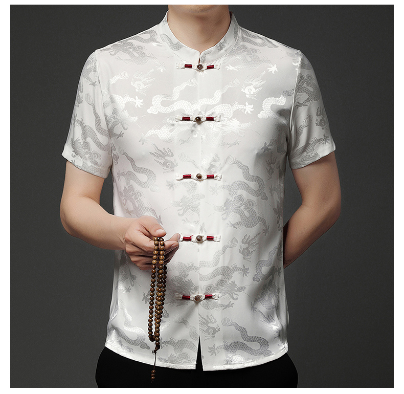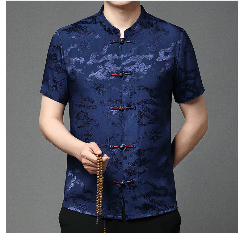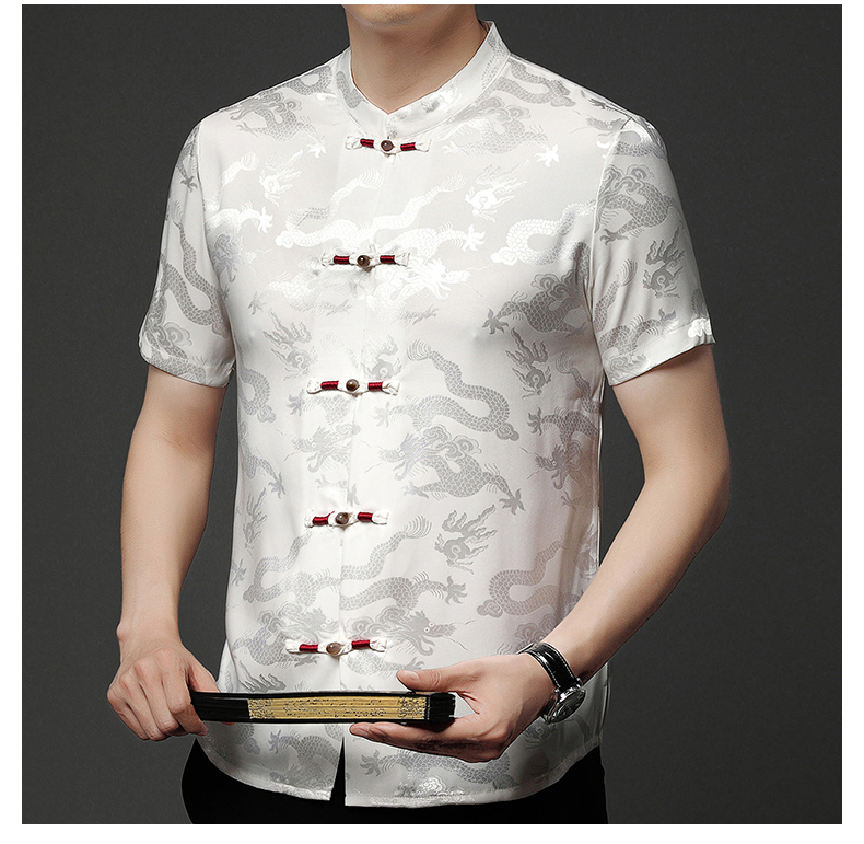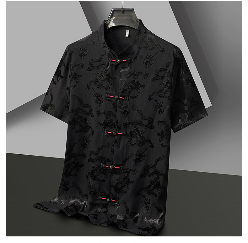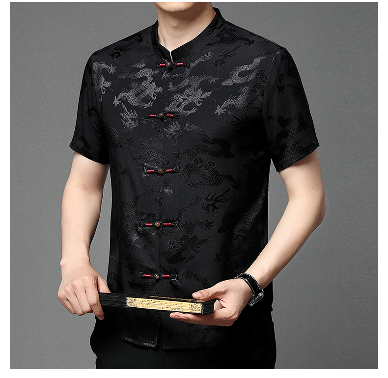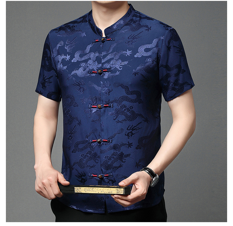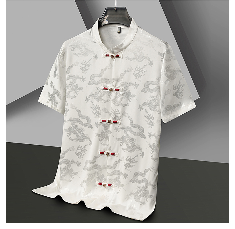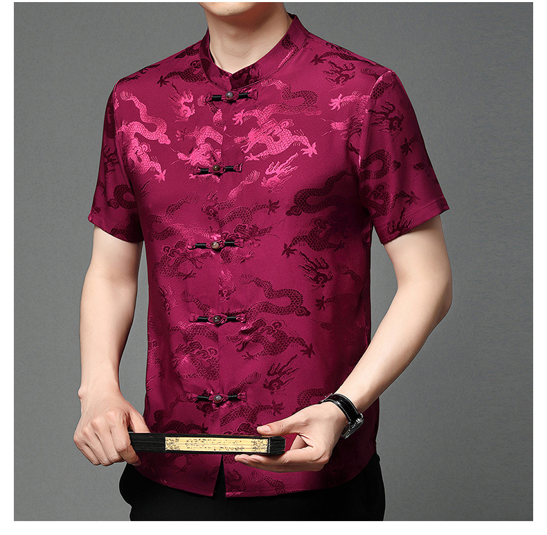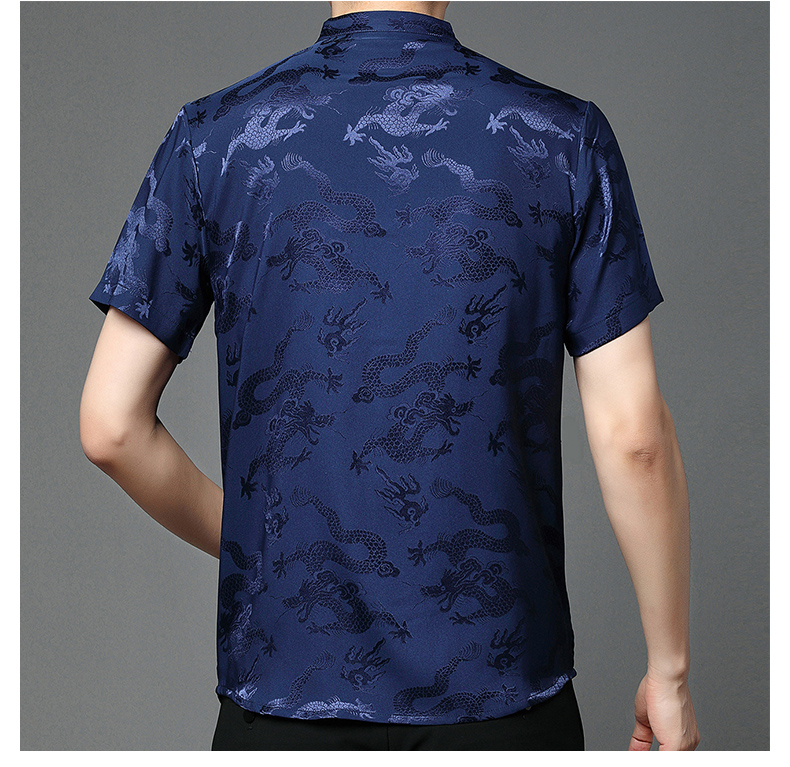 Áo sơ mi ngắn tay dành cho các bác lớn tuổi, kiểu dáng cổ đứng truyền thống. Chất liệu lụa mềm mại, thoáng mát, rất phù hợp mặc trong mùa hè. Áo có họa tiết trang nhã mang phong cách dân tộc. Sản phẩm dễ mặc, dễ kết hợp với quần dài, mặc đi chơi hoặc ở nhà đều thoải mái. | Tên sản phẩm: Áo Sơ Mi Nam Ngắn Tay Hàng Mùa Hè Trung Niên - Thời Trang Nam | Mã sản phẩm: C0676 - Giá: 880.000đ | Mã nhà sản xuất: MERELA-G03Hình ảnh sản phẩm