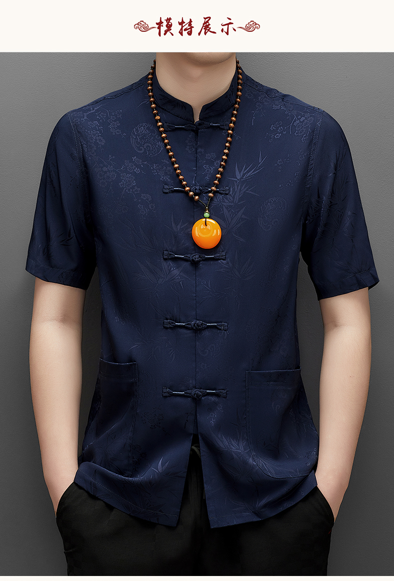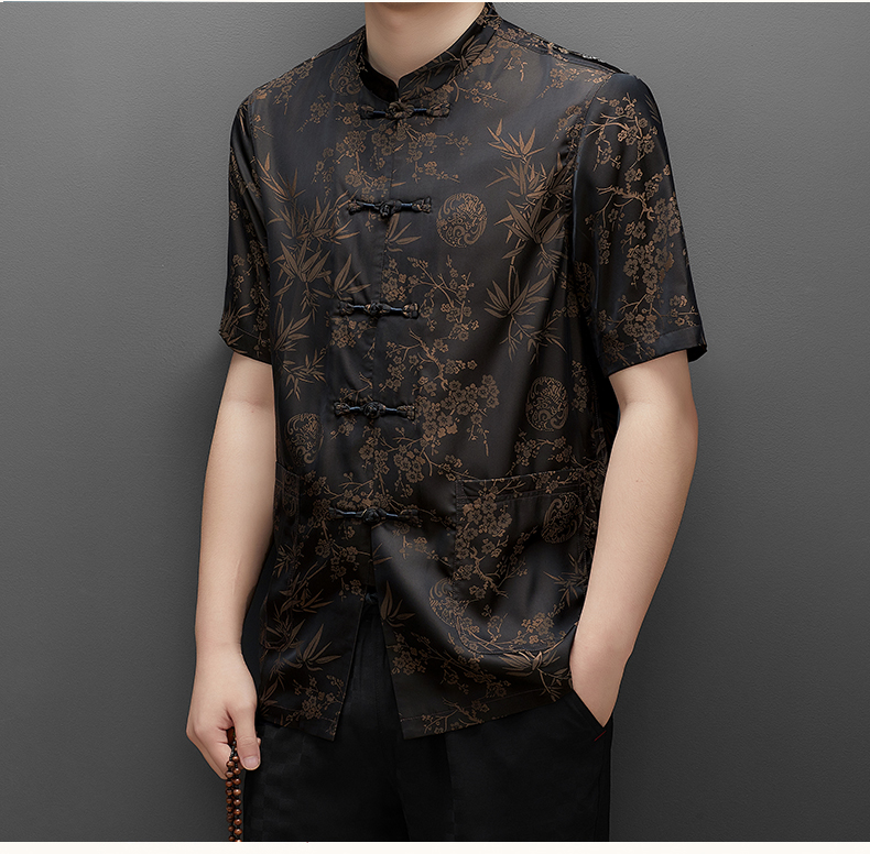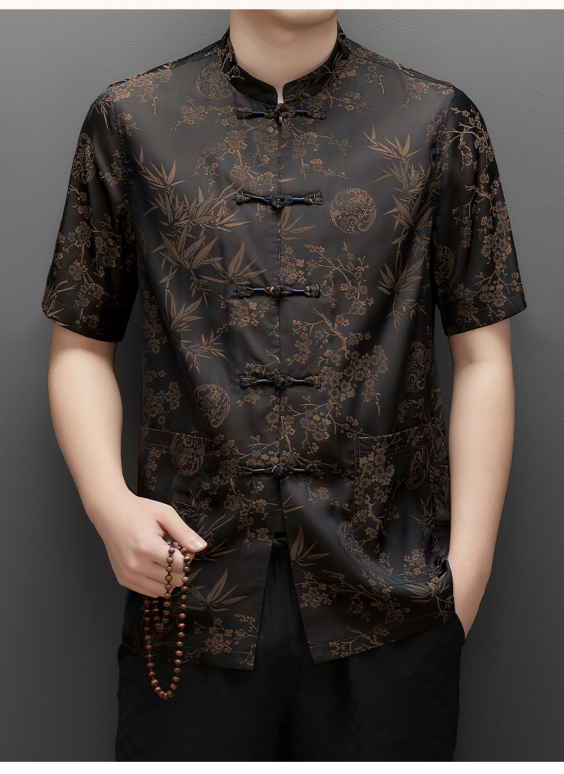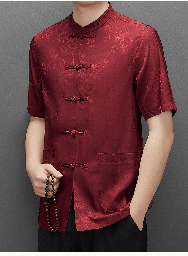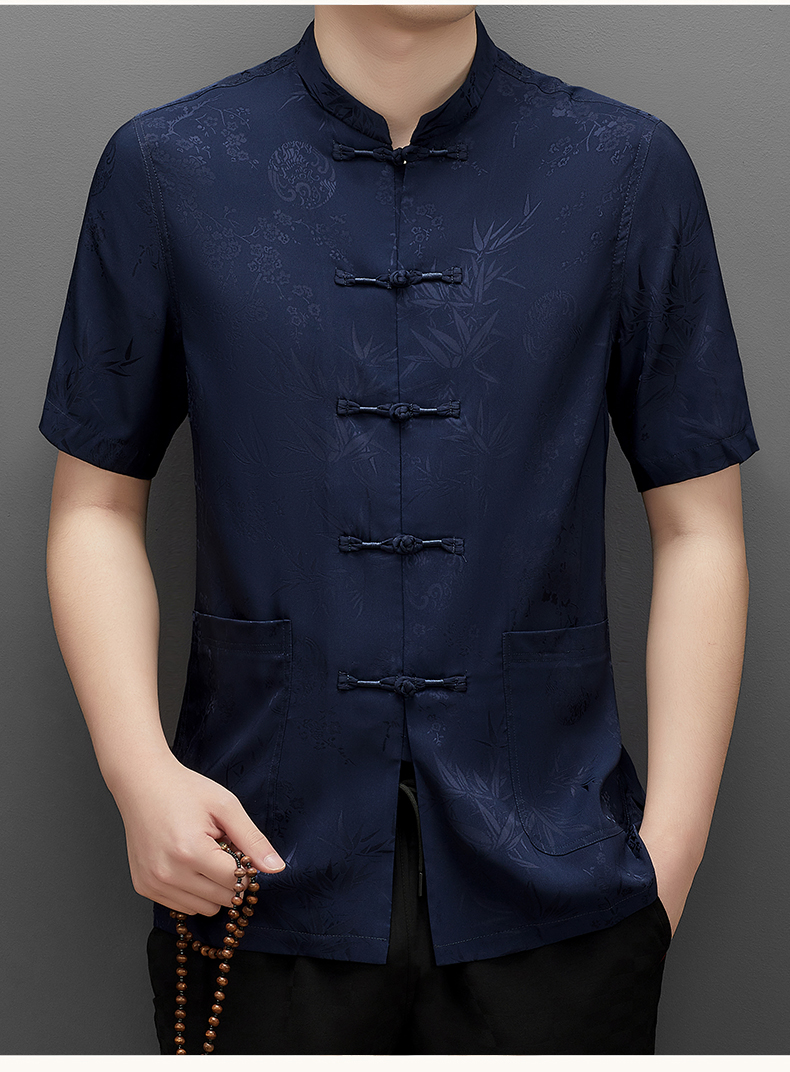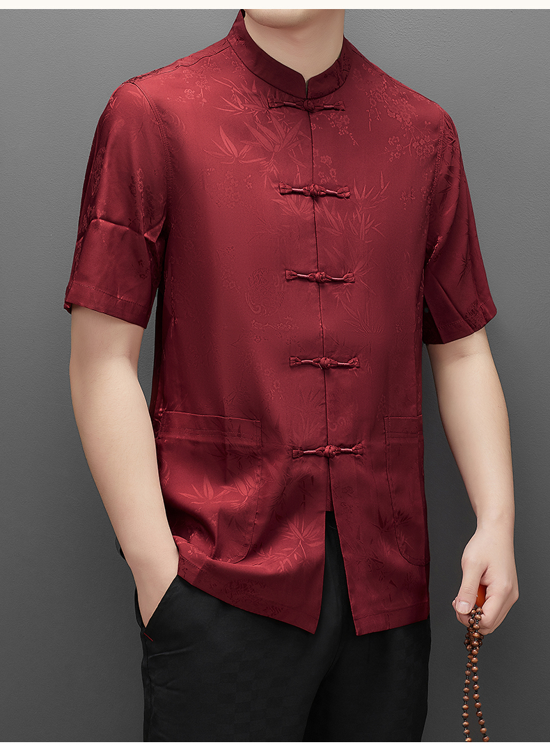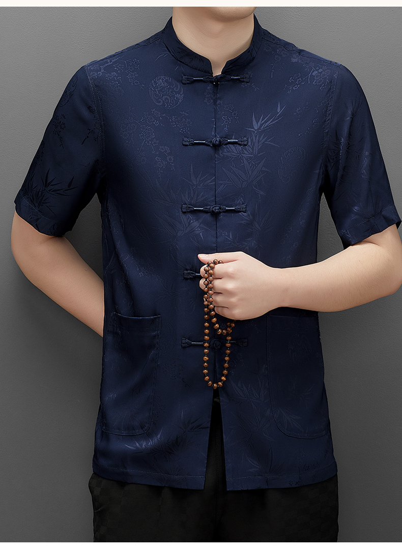 Áo ngắn tay dành cho nam, kiểu dáng cổ đứng truyền thống, tạo vẻ lịch sự và gọn gàng. Chất liệu lụa mềm mại, nhẹ nhàng và thoáng mát, rất phù hợp cho thời tiết mùa hè. Sản phẩm thích hợp để mặc trong những buổi họp mặt gia đình, tiếp khách hoặc thư giãn. Cách sử dụng đơn giản, mặc như các loại áo thông thường, dễ dàng phối hợp với nhiều loại quần khác nhau. | Tên sản phẩm: Áo Sơ Mi Nam Ngắn Tay Hàng Mùa Hè Trung Niên - Thời Trang Nam | Mã sản phẩm: C0681 - Giá: 1.060.000đ | Mã nhà sản xuất: MERELA-G03Hình ảnh sản phẩm