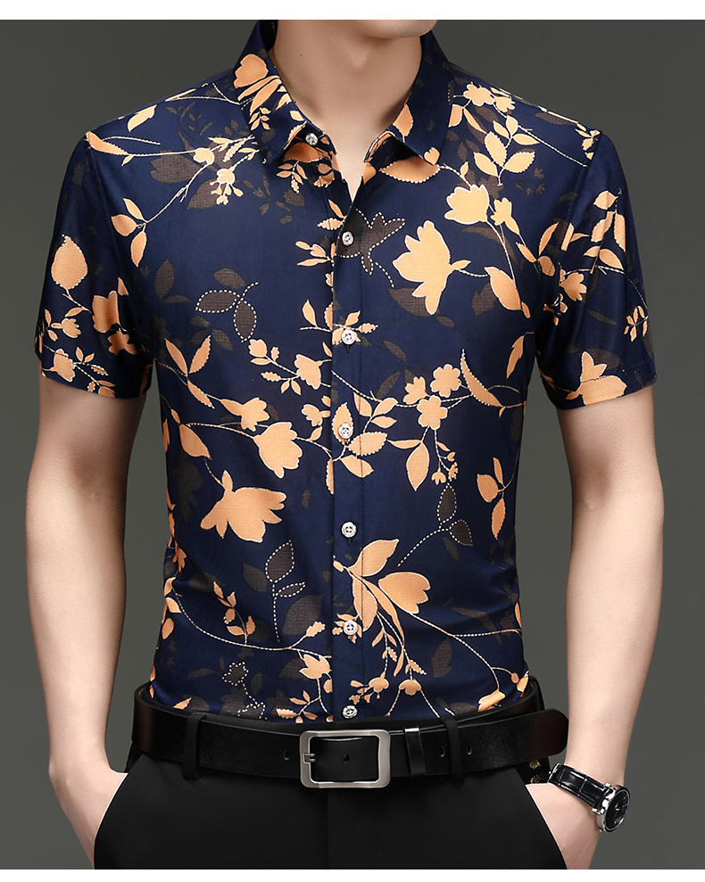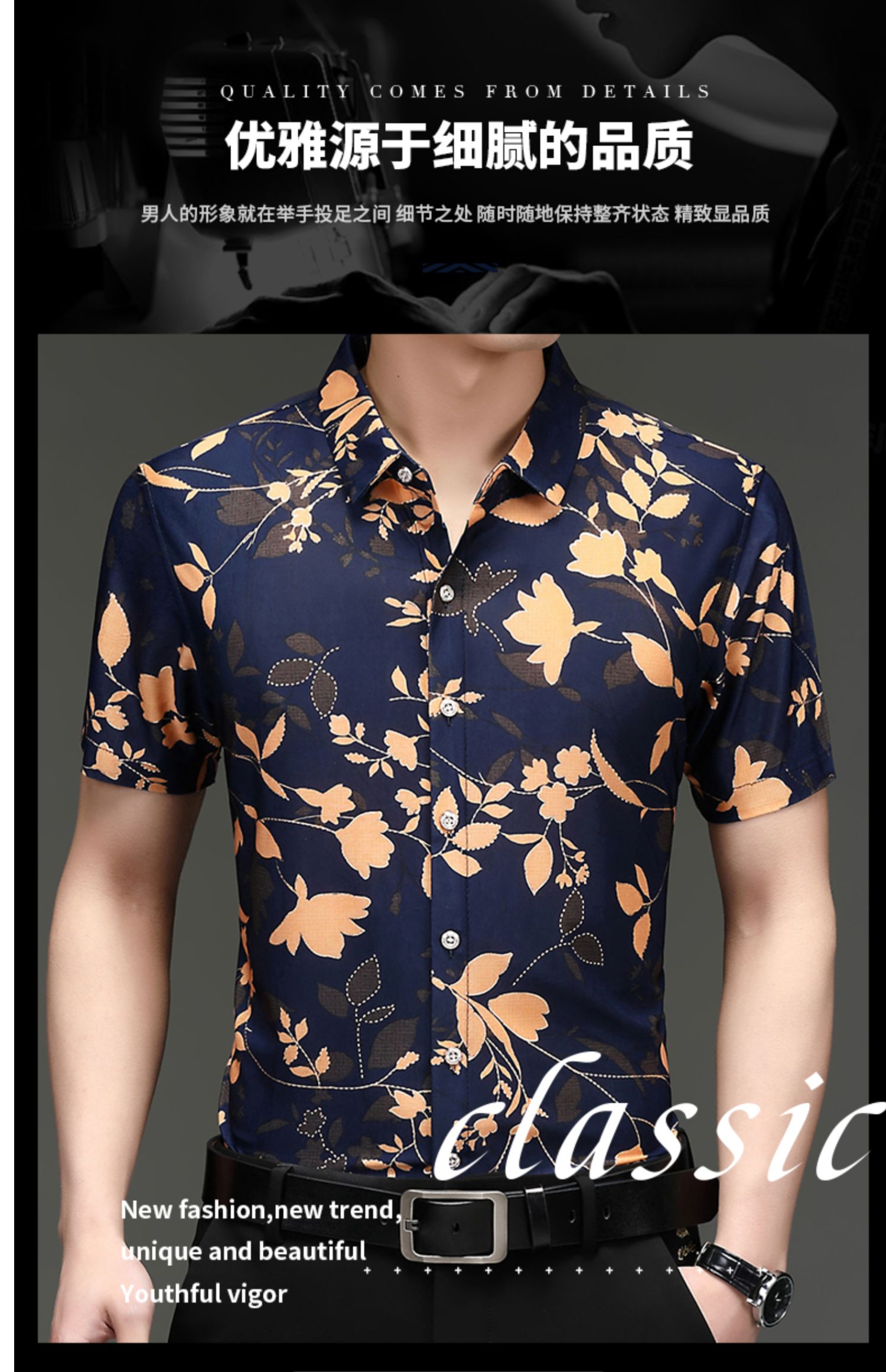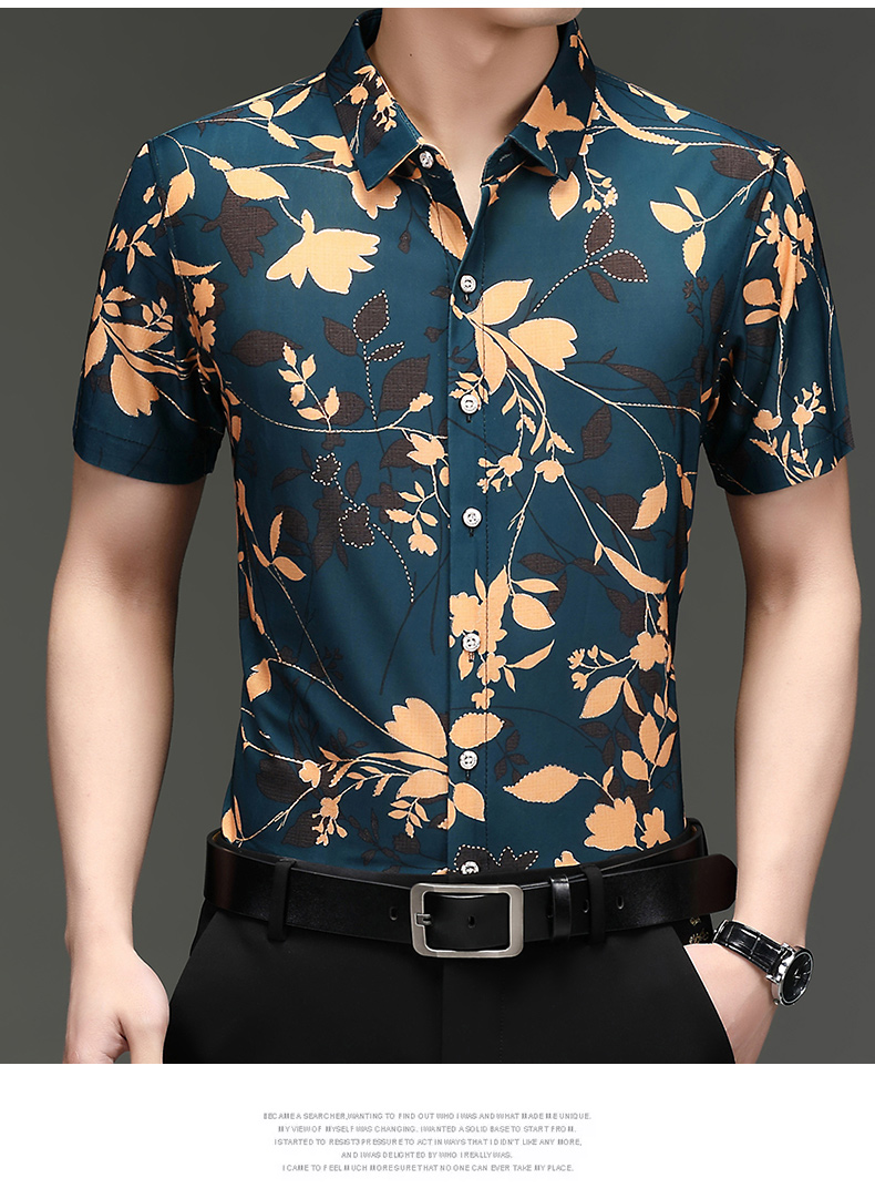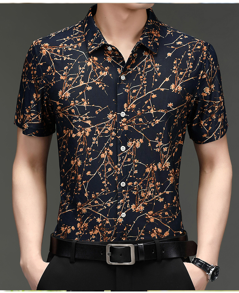 Áo sơ mi ngắn tay dành cho nam, kiểu dáng rộng rãi thoải mái. Chất vải mỏng nhẹ, co giãn nhẹ tạo cảm giác mát mẻ khi mặc vào mùa hè. Trên nền vải là những họa tiết hoa lá được in ép kim loại nổi bật. Sản phẩm phù hợp cho các bạn trẻ và trung niên. Có thể mặc đi làm, đi chơi hoặc dạo phố. Giặt nhẹ nhàng với nước lạnh và phơi trong bóng râm để bảo quản chất vải và hình in. | Tên sản phẩm: Áo Sơ Mi Nam Ngắn Tay Họa Tiết Hoa Hàng Mùa Hè Trung Niên - Thời Trang Nam | Mã sản phẩm: C0685 - Giá: 650.000đ | Mã nhà sản xuất: MERELA-G02Hình ảnh sản phẩm