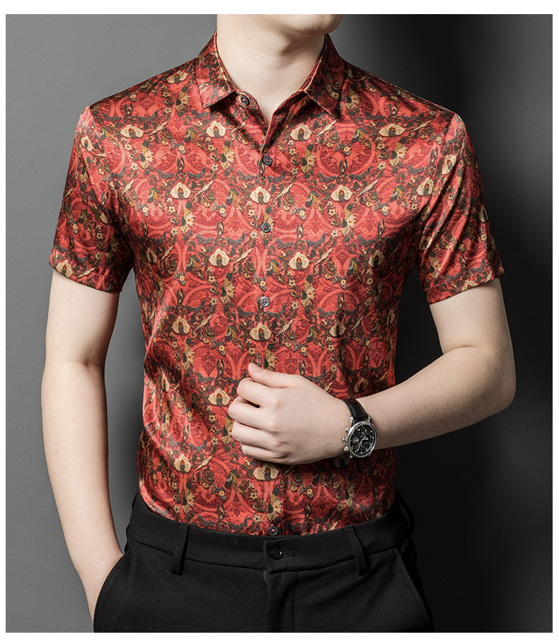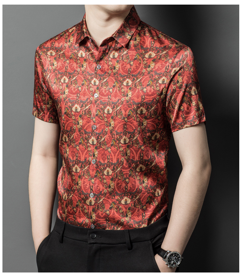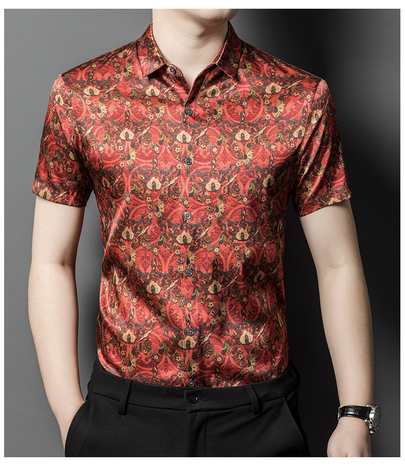 Áo sơ mi ngắn tay dành cho nam, được dệt từ chất liệu tơ tằm mềm mại và thoáng mát, rất phù hợp cho những ngày hè oi bức. Áo có họa tiết in màu đỏ nổi bật, kiểu dáng lịch sự dễ dàng phối cùng nhiều loại quần khác nhau. Sản phẩm thích hợp cho những người trung niên. Khi giặt, nên giặt nhẹ nhàng bằng tay và phơi ở nơi râm mát để giữ áo được bền đẹp. | Tên sản phẩm: Áo Sơ Mi Nam Chất Liệu Lụa Tơ Tằm Ngắn Tay Họa Tiết Hoa Hàng Mùa Hè Trung Niên - Thời Trang Nam | Mã sản phẩm: C0693 - Giá: 3.520.000đ | Mã nhà sản xuất: MERELA-G06Hình ảnh sản phẩm