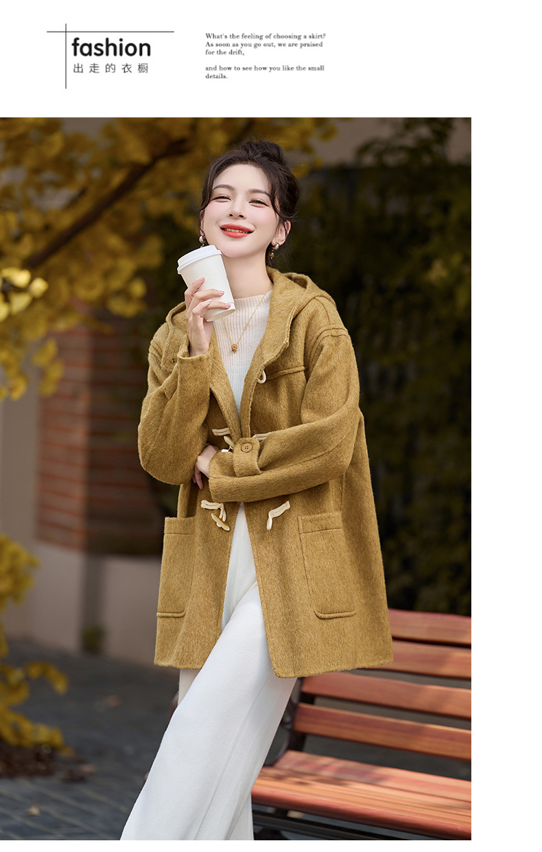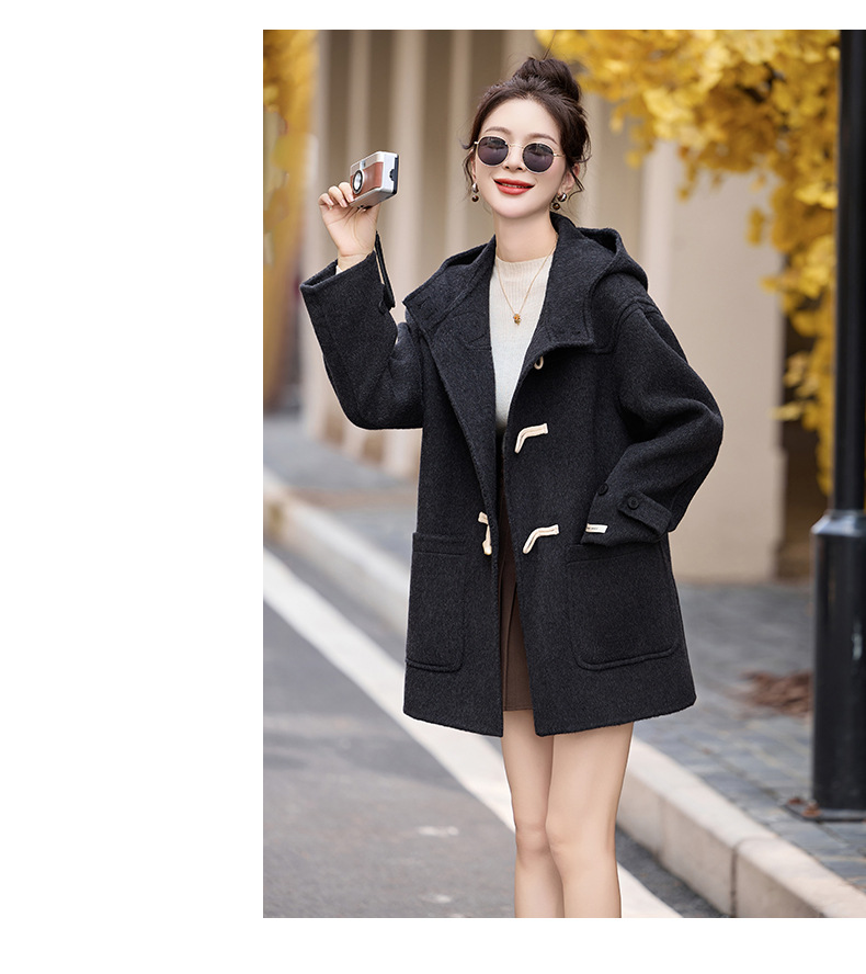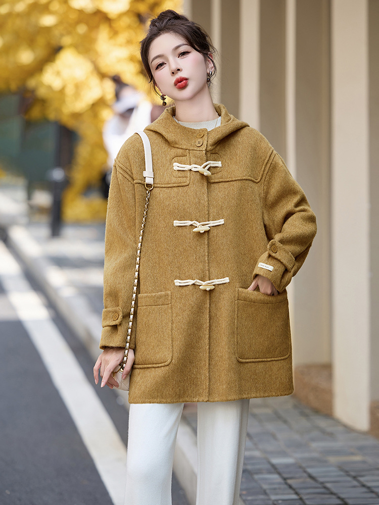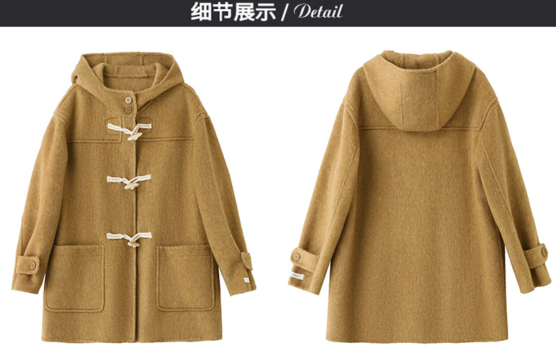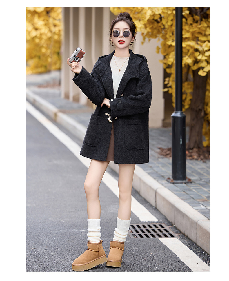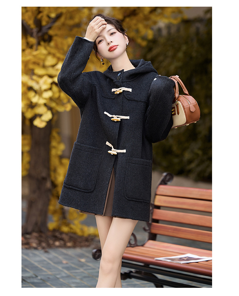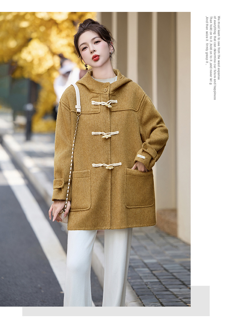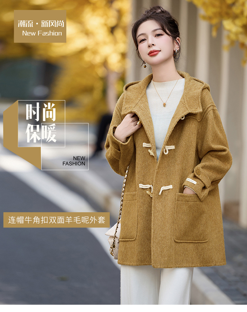 Áo khoác nữ dáng dài, có mũ trùm và khuy cài dạng sừng bò tiện lợi. Chất liệu hai mặt đều làm từ len ấm áp, giữ nhiệt tốt, phù hợp cho thời tiết se lạnh. Thiết kế kết hợp nét trẻ trung với phong cách cổ điển, dễ dàng phối cùng nhiều loại trang phục. Có thể mặc trực tiếp hoặc khoác ngoài để giữ ấm, dây mũ và khóa cài có thể điều chỉnh linh hoạt theo ý thích. | Tên sản phẩm: Áo Khoác Nữ Mũ Liền Hàng Mùa Xuân Thu Đông - Thời Trang Nữ | Mã sản phẩm: C0694 - Giá: 2.900.000đ | Mã nhà sản xuất: HADG-G06Hình ảnh sản phẩm