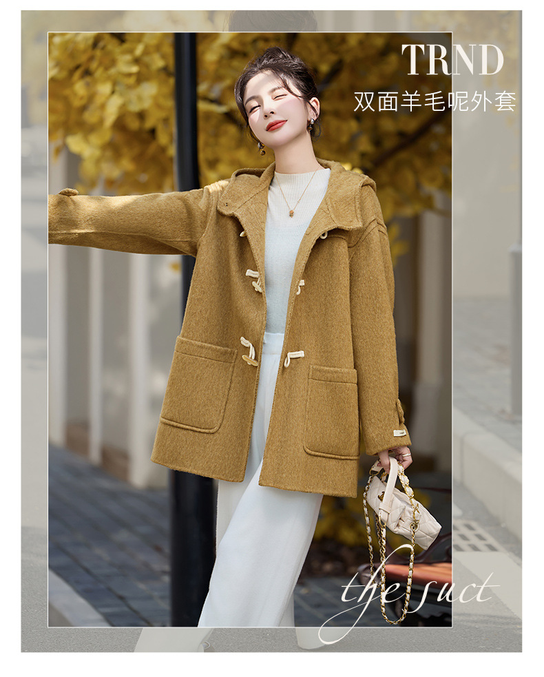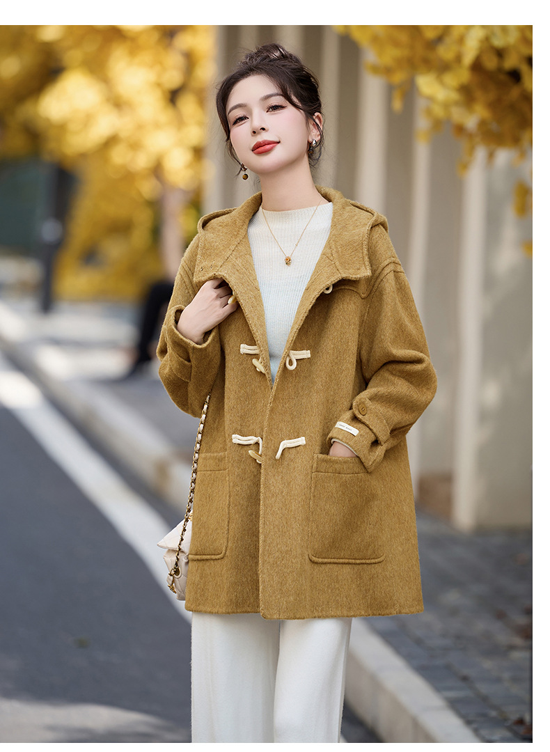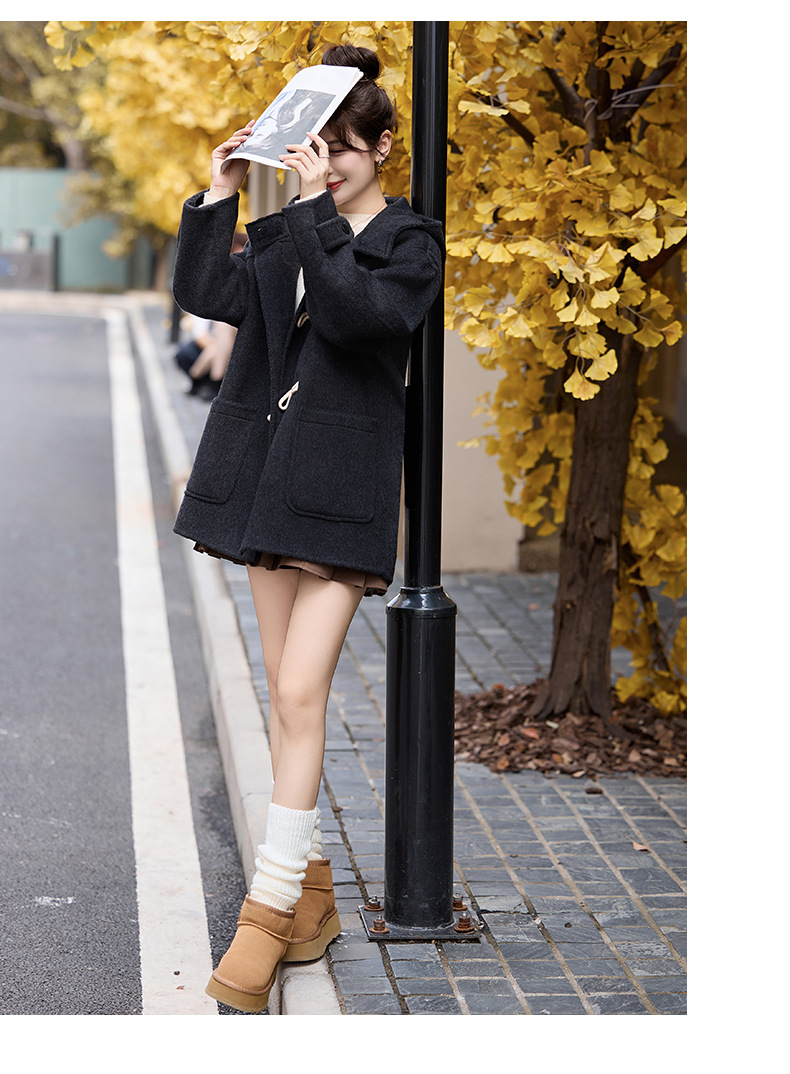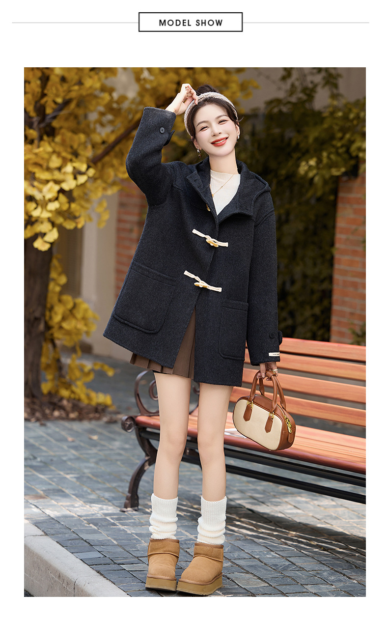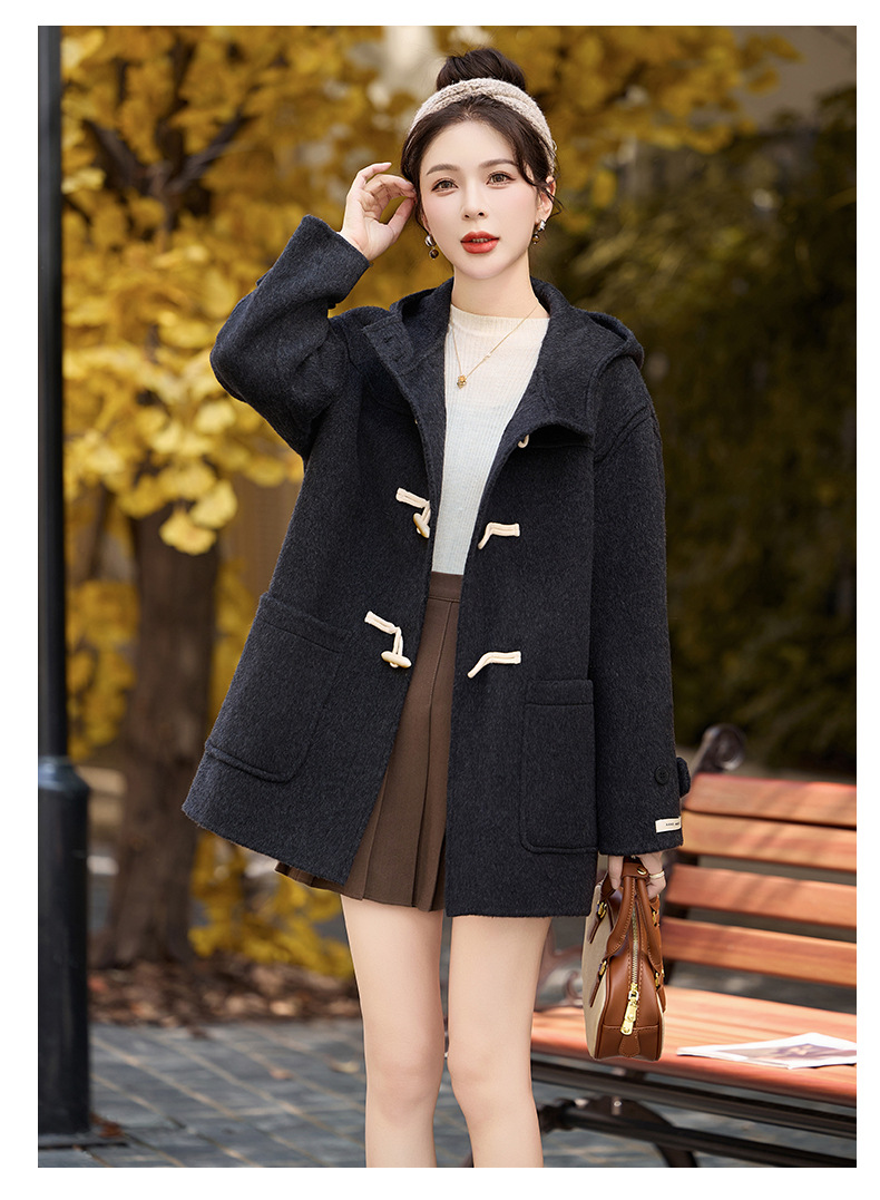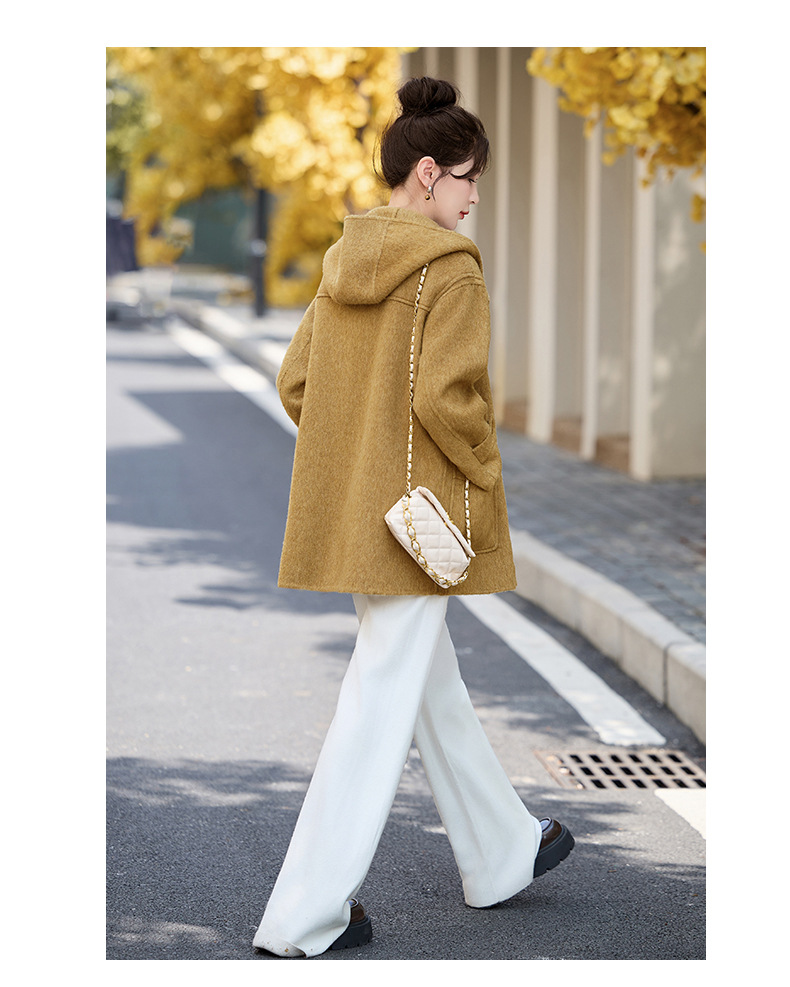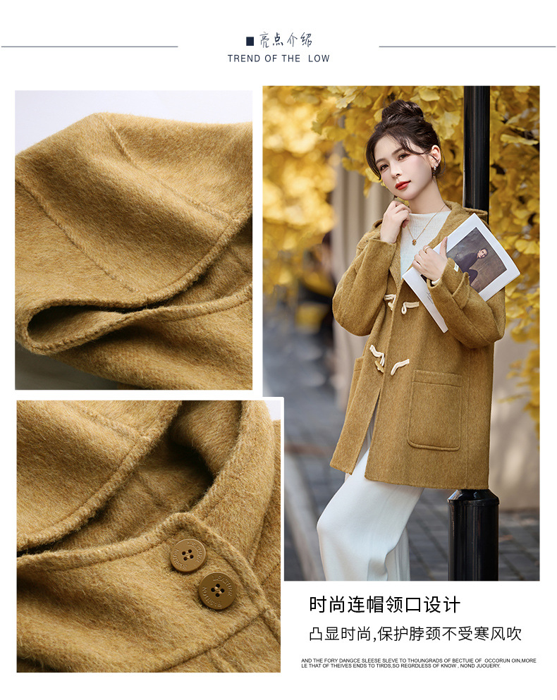 Áo khoác nữ dáng dài, có mũ trùm và khuy cài dạng sừng bò tiện lợi. Chất liệu hai mặt đều làm từ len ấm áp, giữ nhiệt tốt, phù hợp cho thời tiết se lạnh. Thiết kế kết hợp nét trẻ trung với phong cách cổ điển, dễ dàng phối cùng nhiều loại trang phục. Có thể mặc trực tiếp hoặc khoác ngoài để giữ ấm, dây mũ và khóa cài có thể điều chỉnh linh hoạt theo ý thích. | Tên sản phẩm: Áo Khoác Nữ Mũ Liền Hàng Mùa Xuân Thu Đông - Thời Trang Nữ | Mã sản phẩm: C0694 - Giá: 2.900.000đ | Mã nhà sản xuất: HADG-G06Hình ảnh sản phẩm