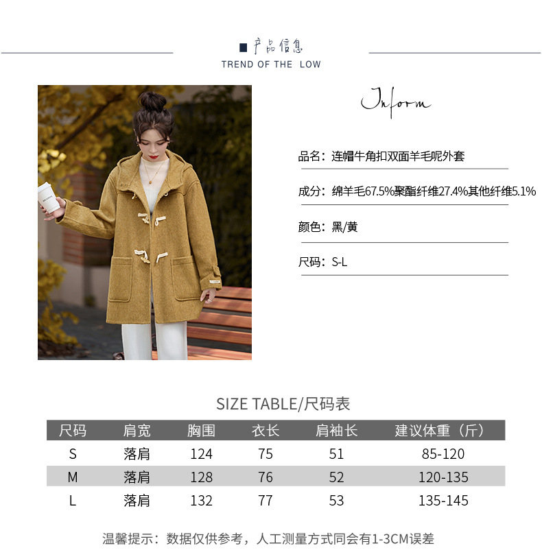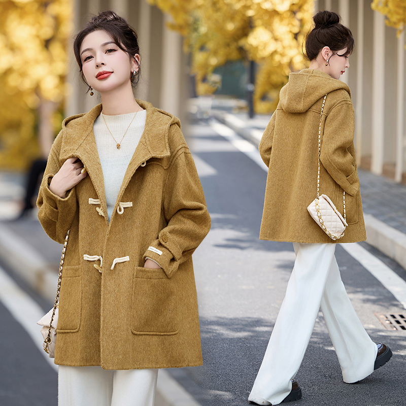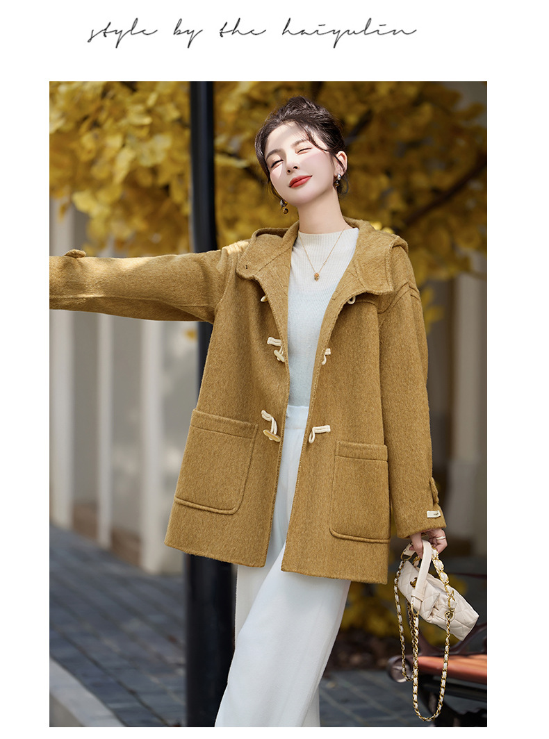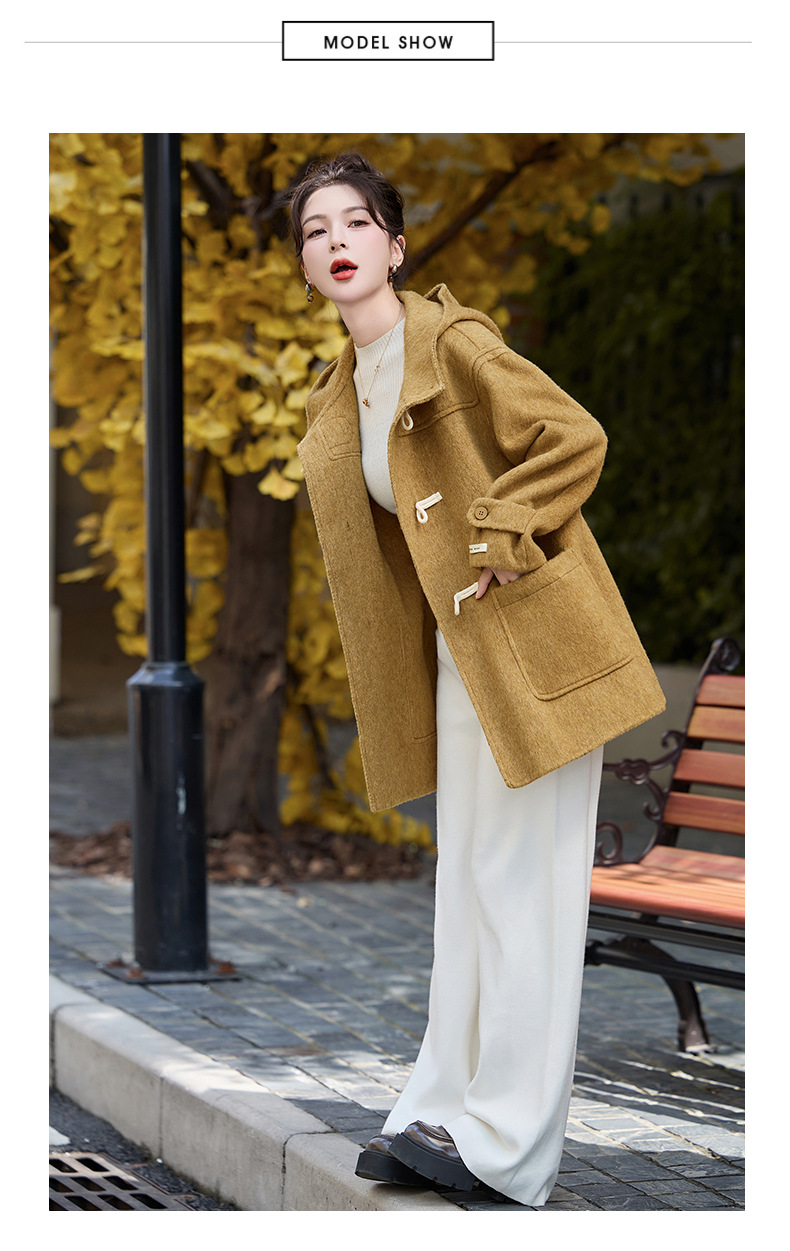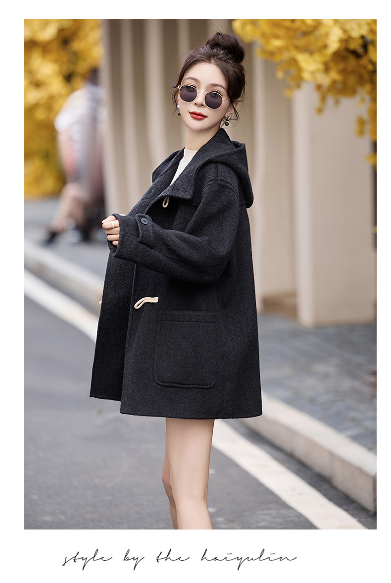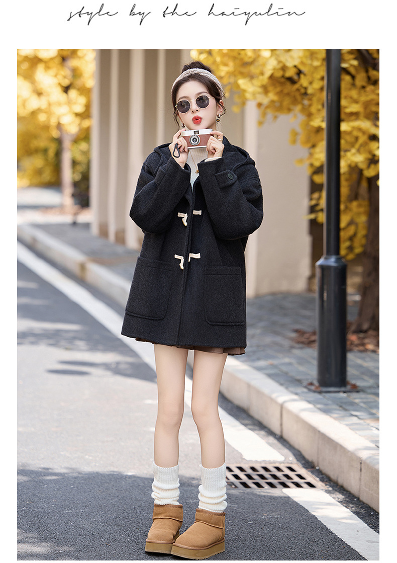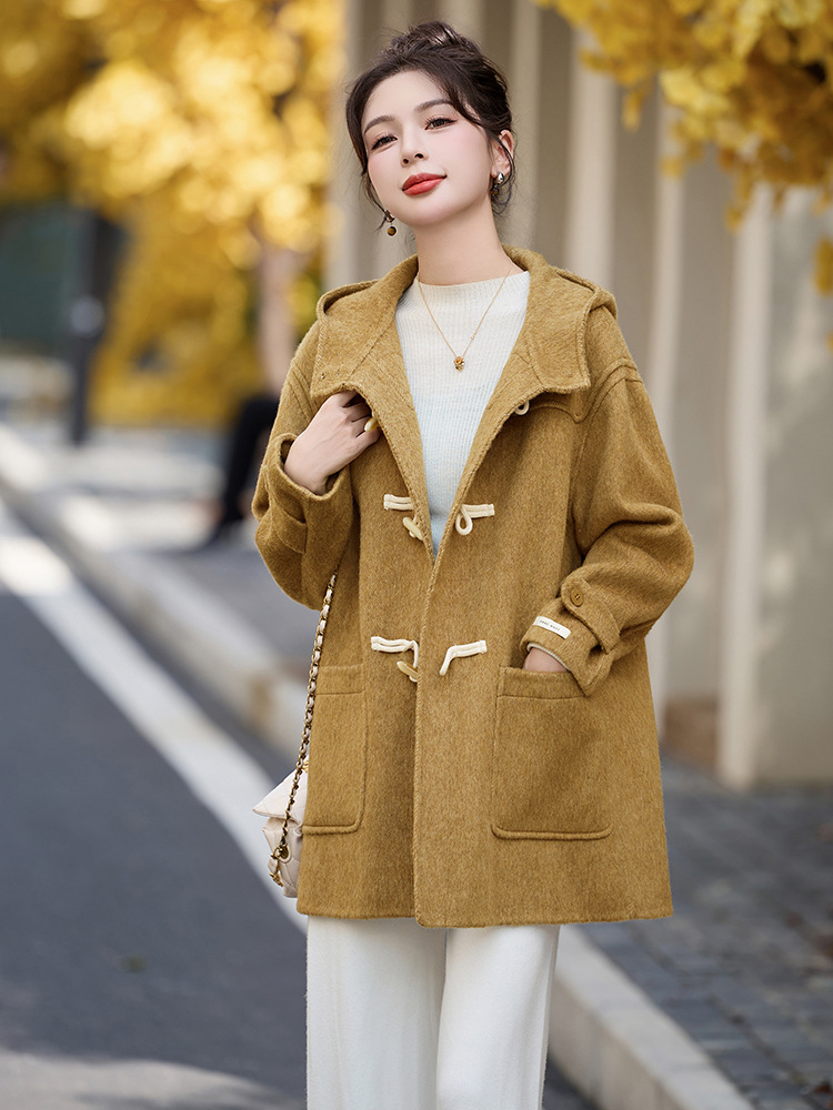 Áo khoác nữ dáng dài, có mũ trùm và khuy cài dạng sừng bò tiện lợi. Chất liệu hai mặt đều làm từ len ấm áp, giữ nhiệt tốt, phù hợp cho thời tiết se lạnh. Thiết kế kết hợp nét trẻ trung với phong cách cổ điển, dễ dàng phối cùng nhiều loại trang phục. Có thể mặc trực tiếp hoặc khoác ngoài để giữ ấm, dây mũ và khóa cài có thể điều chỉnh linh hoạt theo ý thích. | Tên sản phẩm: Áo Khoác Nữ Mũ Liền Hàng Mùa Xuân Thu Đông - Thời Trang Nữ | Mã sản phẩm: C0694 - Giá: 2.900.000đ | Mã nhà sản xuất: HADG-G06Hình ảnh sản phẩm