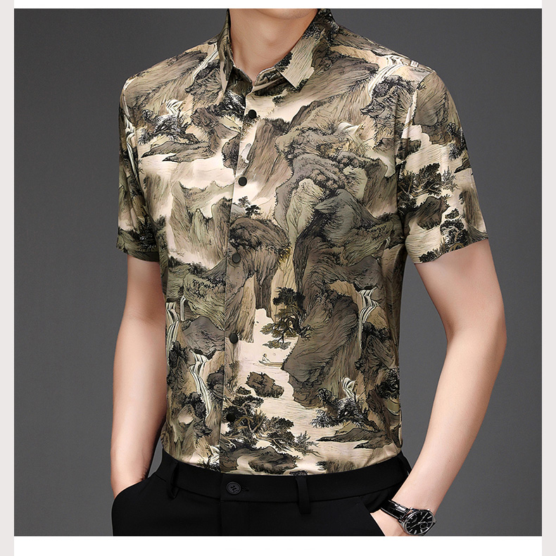Áo sơ mi ngắn tay dành cho nam, kiểu dáng rộng rãi thoải mái, hoa văn trang nhã. Chất vải mỏng nhẹ, mát mịn như lụa, đặc biệt ít bị nhăn ngay cả khi vận động nhiều. Mẫu áo này rất phù hợp cho những ngày hè oi bức, dễ dàng phối cùng quần short hoặc quần vải thông thường. Chỉ cần giặt nhẹ và phơi khô tự nhiên để giữ áo bền đẹp. | Tên sản phẩm: Áo Sơ Mi Nam Ngắn Tay Họa Tiết Hoa Hàng Mùa Hè - Thời Trang Nam | Mã sản phẩm: C0698 - Giá: 880.000đ | Mã nhà sản xuất: MERELA-G03Hình ảnh sản phẩm