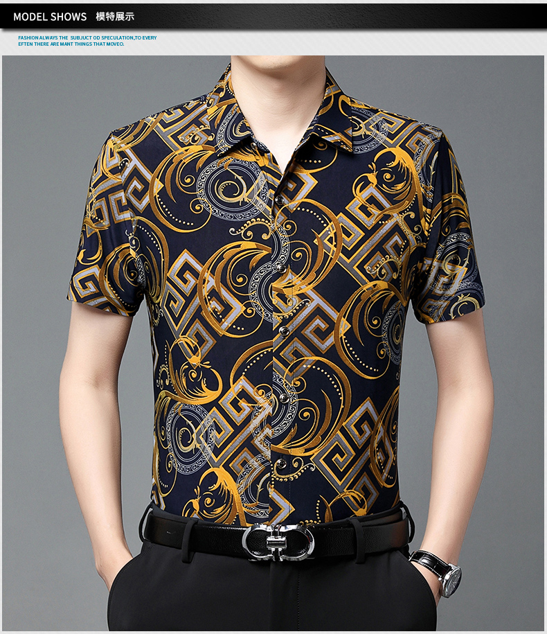 Áo sơ mi ngắn tay dành cho các bố trung niên, có họa tiết hoa nhỏ in trên nền vải. Chất liệu mát mẻ, nhẹ nhàng, tạo cảm giác dễ chịu khi mặc vào mùa hè. Kiểu dáng rộng rãi, thoải mái, phù hợp cho nhiều hoạt động thường ngày. Có thể mặc đi làm, dạo phố hay trong những dịp gặp gỡ gia đình. Dễ dàng phối với quần âu hoặc quần vải để có vẻ ngoại chỉn chu. | Tên sản phẩm: Áo Sơ Mi Nam Ngắn Tay Họa Tiết Hoa Hàng Mùa Hè Trung Niên - Thời Trang Nam | Mã sản phẩm: C0712 - Giá: 650.000đ | Mã nhà sản xuất: MERELA-G02Hình ảnh sản phẩm