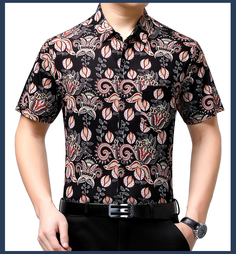 Áo sơ mi ngắn tay dành cho nam, có họa tiết hoa nhỏ trang nhã. Chất vải mát lạnh, thoáng khí, mang lại cảm giác dễ chịu khi mặc vào mùa hè. Kiểu dáng rộng rãi thoải mái, phù hợp cho nhiều dịp sinh hoạt. Áo được thiết kế thêm túi tiện lợi phía trước. Có thể mặc kết hợp với quần âu hoặc quần short để tạo phong cách lịch sự hay thoải mái tùy thích. | Tên sản phẩm: Áo Sơ Mi Nam Ngắn Tay Họa Tiết Hoa Hàng Mùa Hè Trung Niên - Thời Trang Nam | Mã sản phẩm: C0721 - Giá: 770.000đ | Mã nhà sản xuất: MERELA-G02Hình ảnh sản phẩm