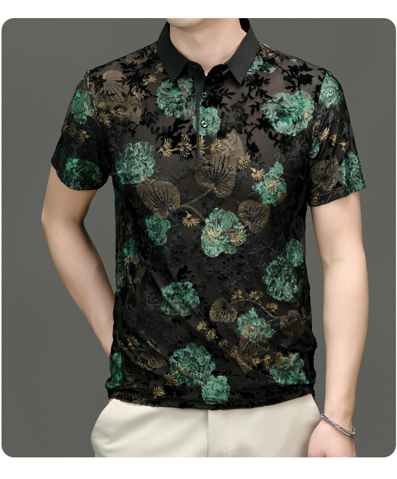 Áo thun cổ bẻ dành cho nam, kiểu dáng polo với tay ngắn. Chất vải mỏng nhẹ, thoáng mát, phù hợp cho mùa hè. Điểm nhấn là phần họa tiết thủng tạo hình tinh tế, kết hợp chất liệu mềm mại mang đến cảm giác dễ chịu. Sản phẩm dễ dàng phối cùng quần tây hay quần short. Giặt nhẹ nhàng bằng nước thường để giữ form áo và độ bền đẹp. | Tên sản phẩm: Áo Thun Nam Ngắn Tay Họa Tiết Hoa Trong Suốt Hàng Mùa Hè Trung Niên - Thời Trang Nam | Mã sản phẩm: C0723 - Giá: 1.220.000đ | Mã nhà sản xuất: MERELA-G04Hình ảnh sản phẩm