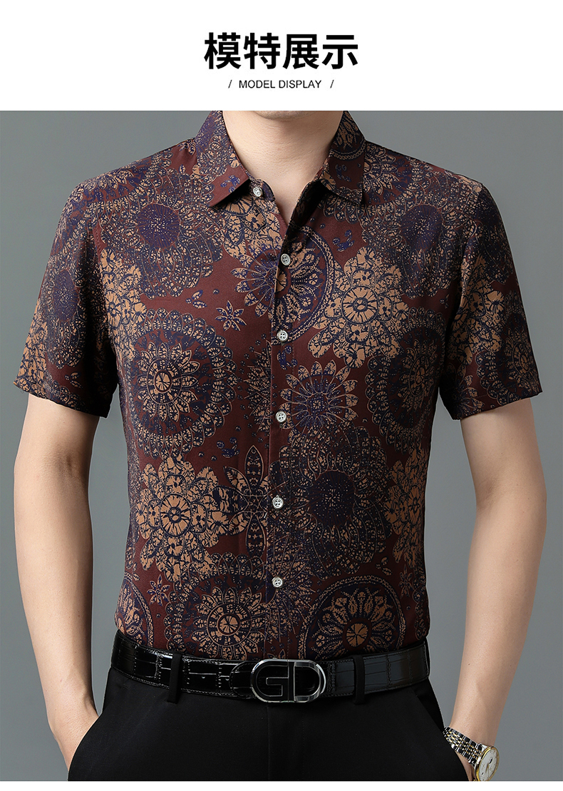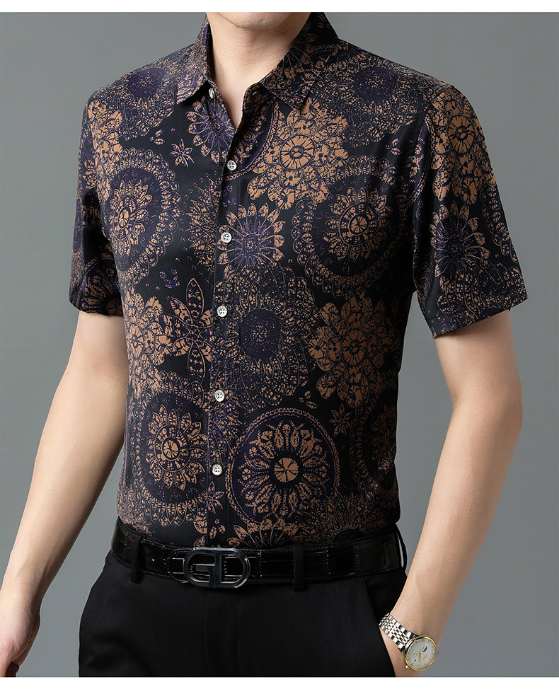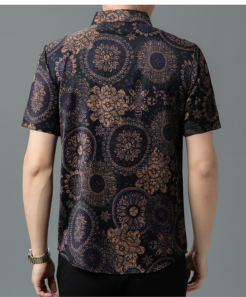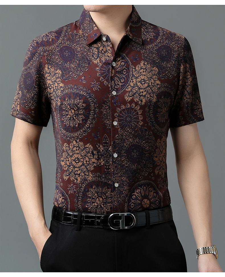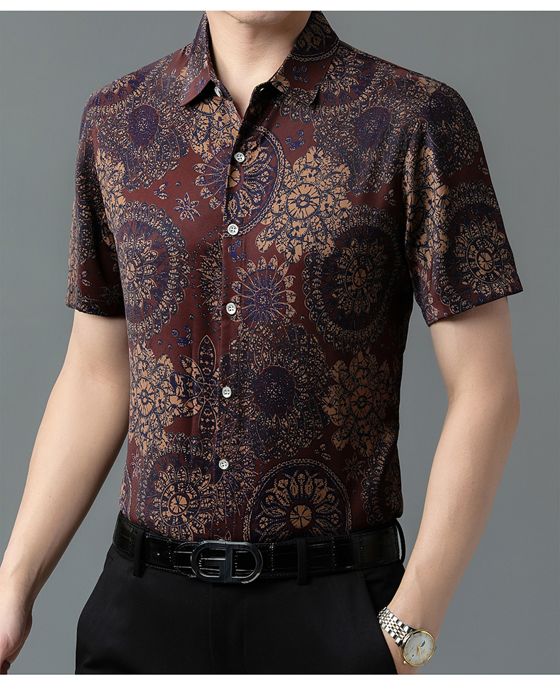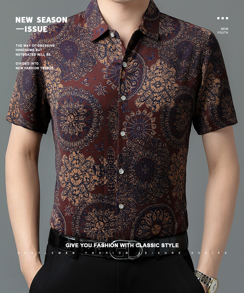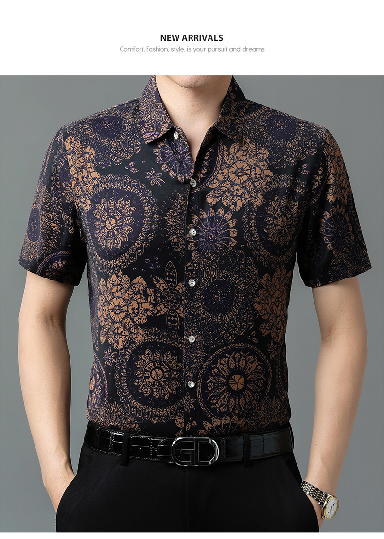 Áo sơ mi ngắn tay có họa tiết hoa, chất vải mát lạnh và nhẹ nhàng, phù hợp mặc trong mùa hè. Kiểu dáng rộng rãi thoải mái, tạo cảm giác dễ chịu khi mặc. Sản phẩm thích hợp cho các hoạt động thường ngày hoặc lúc thư giãn. Cách sử dụng đơn giản, mặc kết hợp cùng quần dài hoặc quần short để có trang phục nhẹ nhàng, thoáng mát. | Tên sản phẩm: Áo Sơ Mi Nam Ngắn Tay Họa Tiết Hoa Hàng Mùa Hè Trung Niên - Thời Trang Nam | Mã sản phẩm: C0730 - Giá: 830.000đ | Mã nhà sản xuất: MERELA-G03Hình ảnh sản phẩm