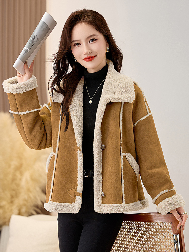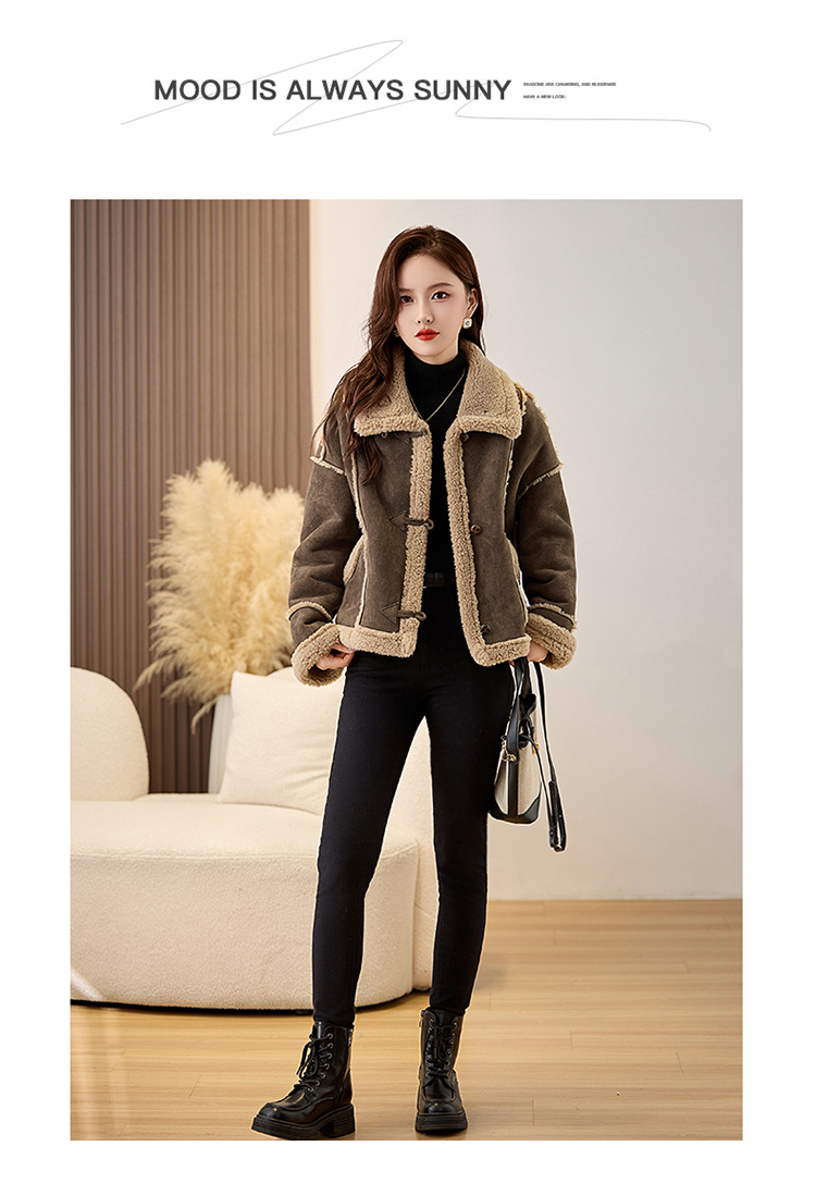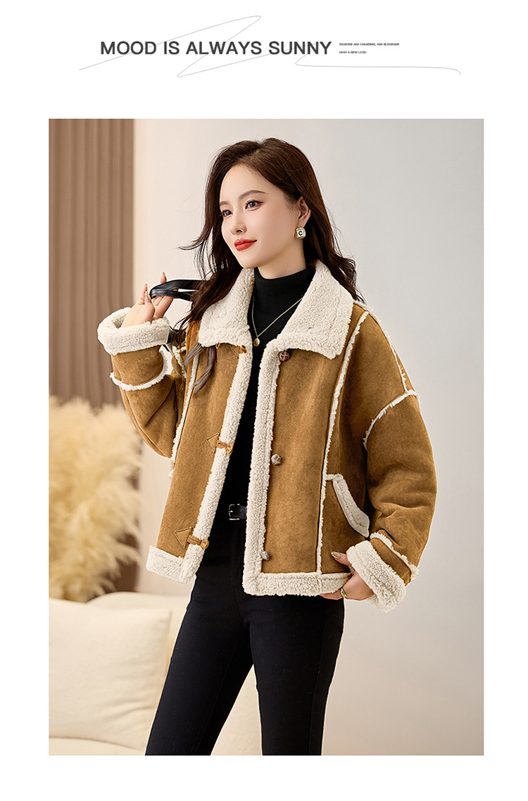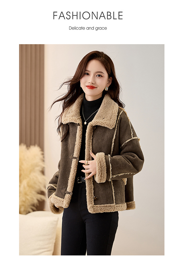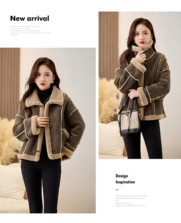 Áo khoác nữ dành cho mùa đông, được làm từ chất liệu kết hợp lông cừu non mềm mại bên trong và vải giả da lộn bên ngoài. Thiết kế cổ bẻ, kiểu dáng thời trang và ấm áp. Sản phẩm có độ dày vừa phải, giữ nhiệt tốt, phù hợp mặc trong những ngày trời lạnh. Dễ dàng phối cùng nhiều loại trang phục khác nhau như quần jeans hay váy liền. Mặc trực tiếp hoặc khoác ngoài đều thoải mái và ấm cúng. | Tên sản phẩm: Áo Khoác Nữ Dày Ấm Hàng Mùa Xuân Thu Đông - Thời Trang Nữ | Mã sản phẩm: C0758 - Giá: 2.170.000đ | Mã nhà sản xuất: HADG-G05Hình ảnh sản phẩm