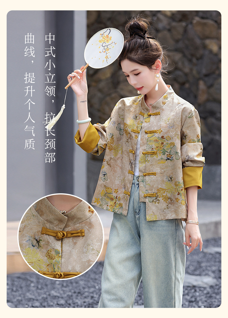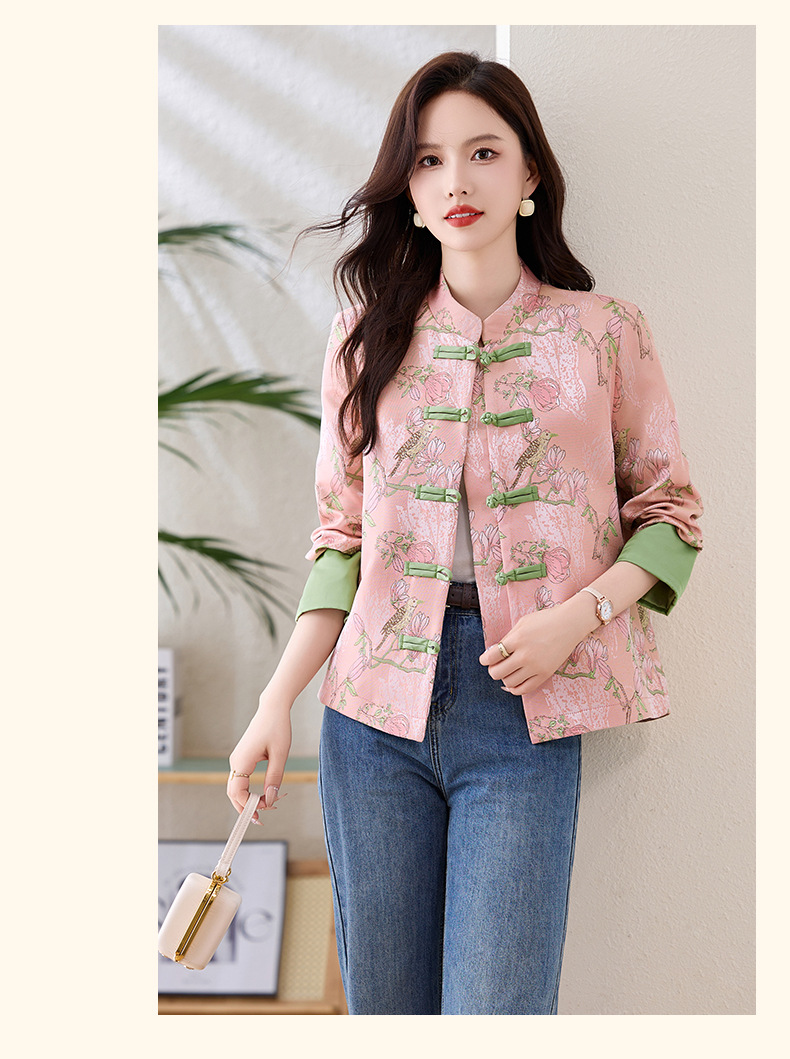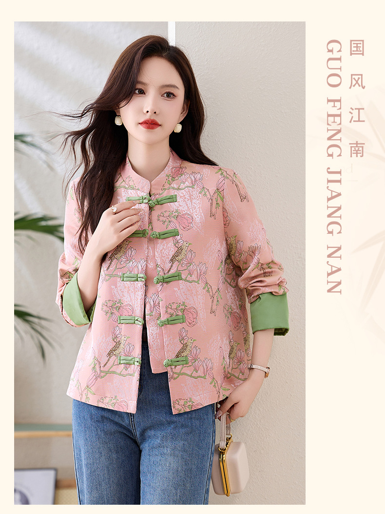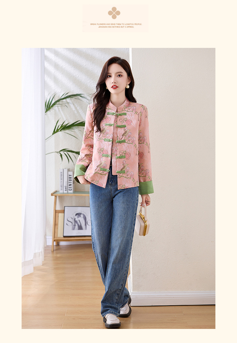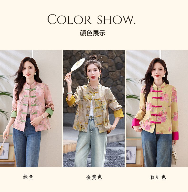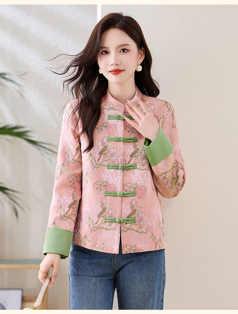 Áo khoác nữ mang phong cách dân tộc hiện đại, thiết kế dành cho tiết trời xuân thu. Kiểu dáng cổ đứng ôm sáng tạo cùng phần v nối dáng rủ tạo vẻ thanh thoát. Áo có form rộng thoải mái, tay dài phù hợp mặc nhiều dịp. Chất vải mềm mại, thoáng khí giúp người mặc dễ chịu. Có thể phối cùng quần ống rộng hoặc chân váy để tạo set đồ hài hòa. Mẫu áo phù hợp cho các buổi gặp mặt, dạo phố hay chụp ảnh. | Tên sản phẩm: Áo Khoác Nữ Dài Tay Hàng Mùa Xuân Thu Đông Phục Cổ Cổ Điển - Thời Trang Nữ | Mã sản phẩm: C0785 - Giá: 1.240.000đ | Mã nhà sản xuất: HADG-G04Hình ảnh sản phẩm