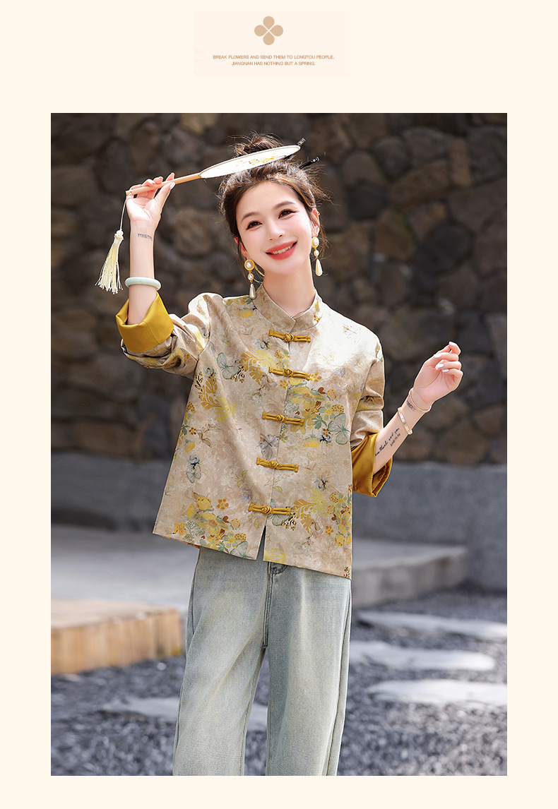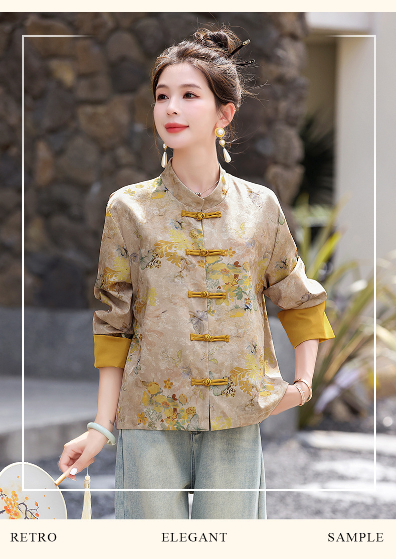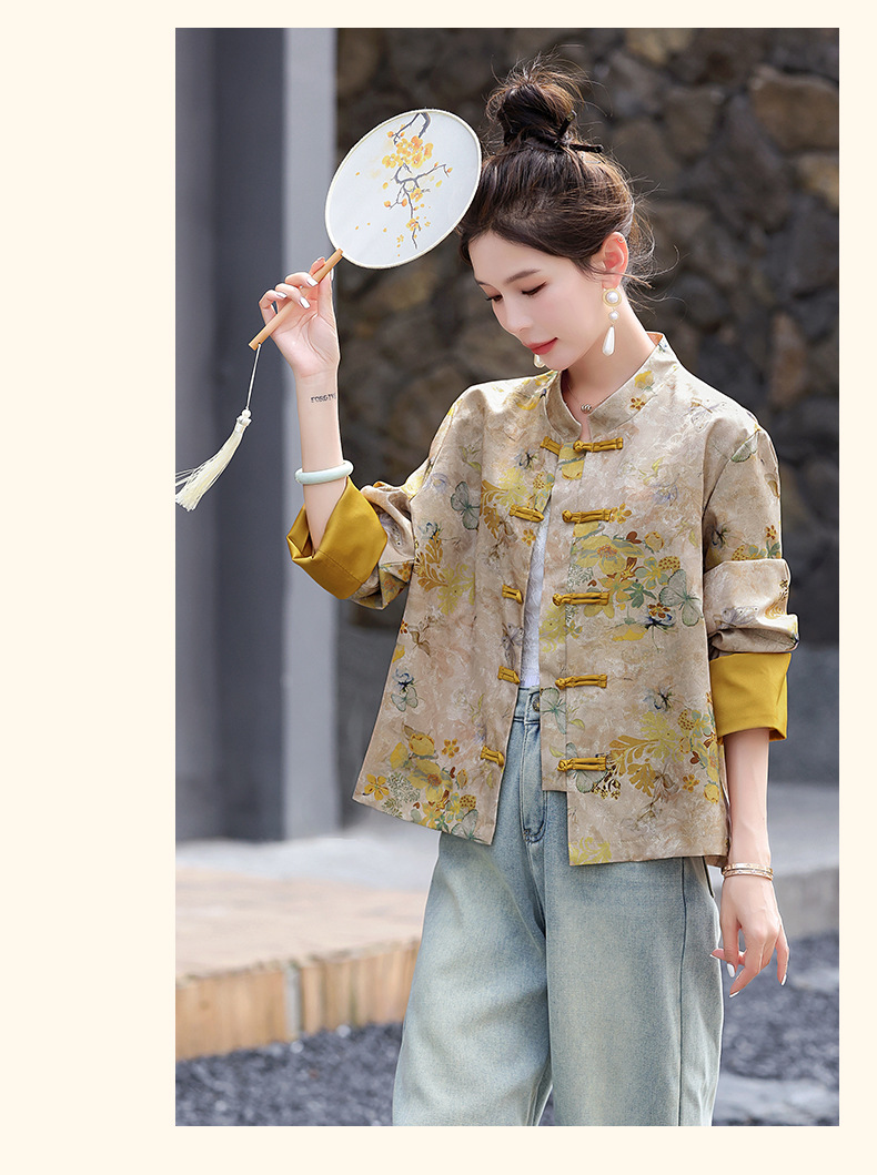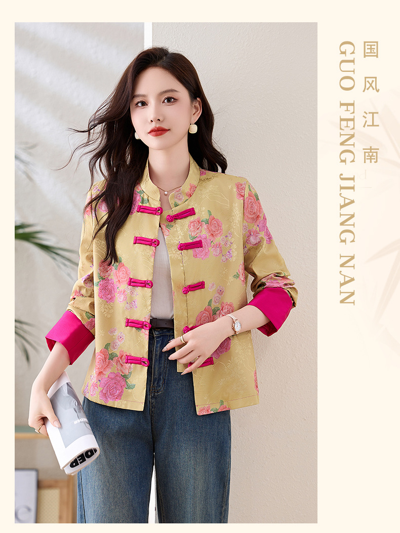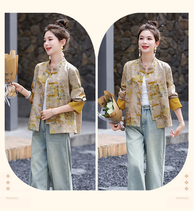 Áo khoác nữ mang phong cách dân tộc hiện đại, thiết kế dành cho tiết trời xuân thu. Kiểu dáng cổ đứng ôm sáng tạo cùng phần v nối dáng rủ tạo vẻ thanh thoát. Áo có form rộng thoải mái, tay dài phù hợp mặc nhiều dịp. Chất vải mềm mại, thoáng khí giúp người mặc dễ chịu. Có thể phối cùng quần ống rộng hoặc chân váy để tạo set đồ hài hòa. Mẫu áo phù hợp cho các buổi gặp mặt, dạo phố hay chụp ảnh. | Tên sản phẩm: Áo Khoác Nữ Dài Tay Hàng Mùa Xuân Thu Đông Phục Cổ Cổ Điển - Thời Trang Nữ | Mã sản phẩm: C0785 - Giá: 1.240.000đ | Mã nhà sản xuất: HADG-G04Hình ảnh sản phẩm