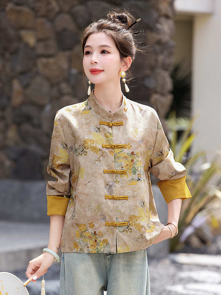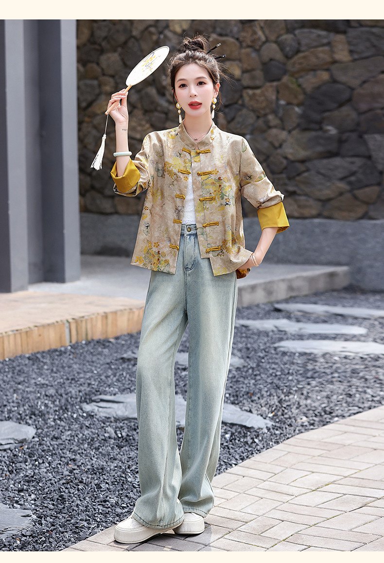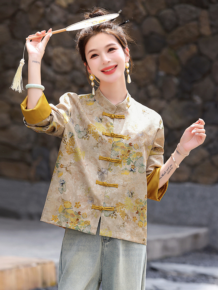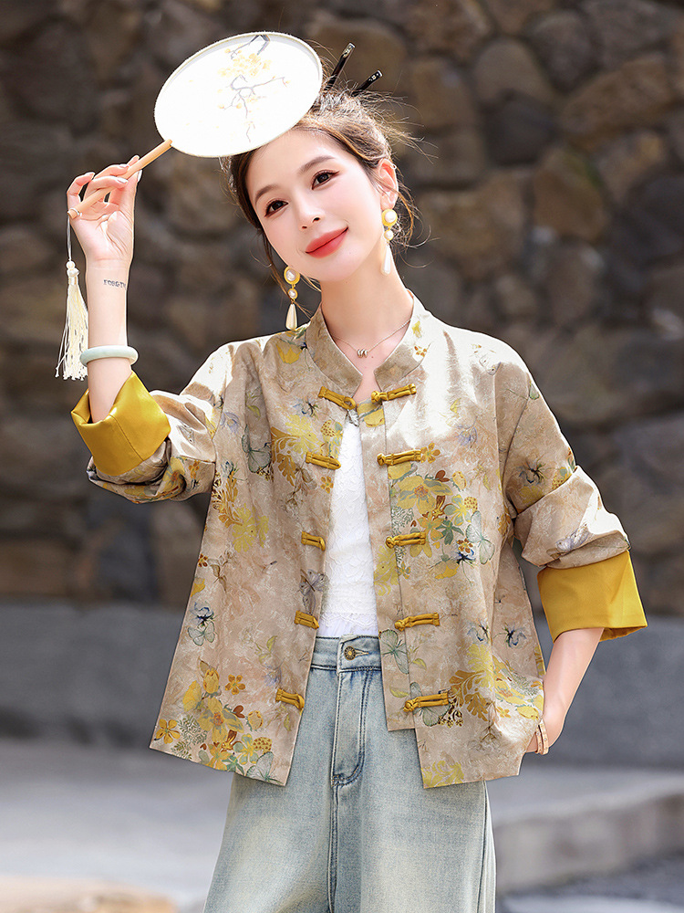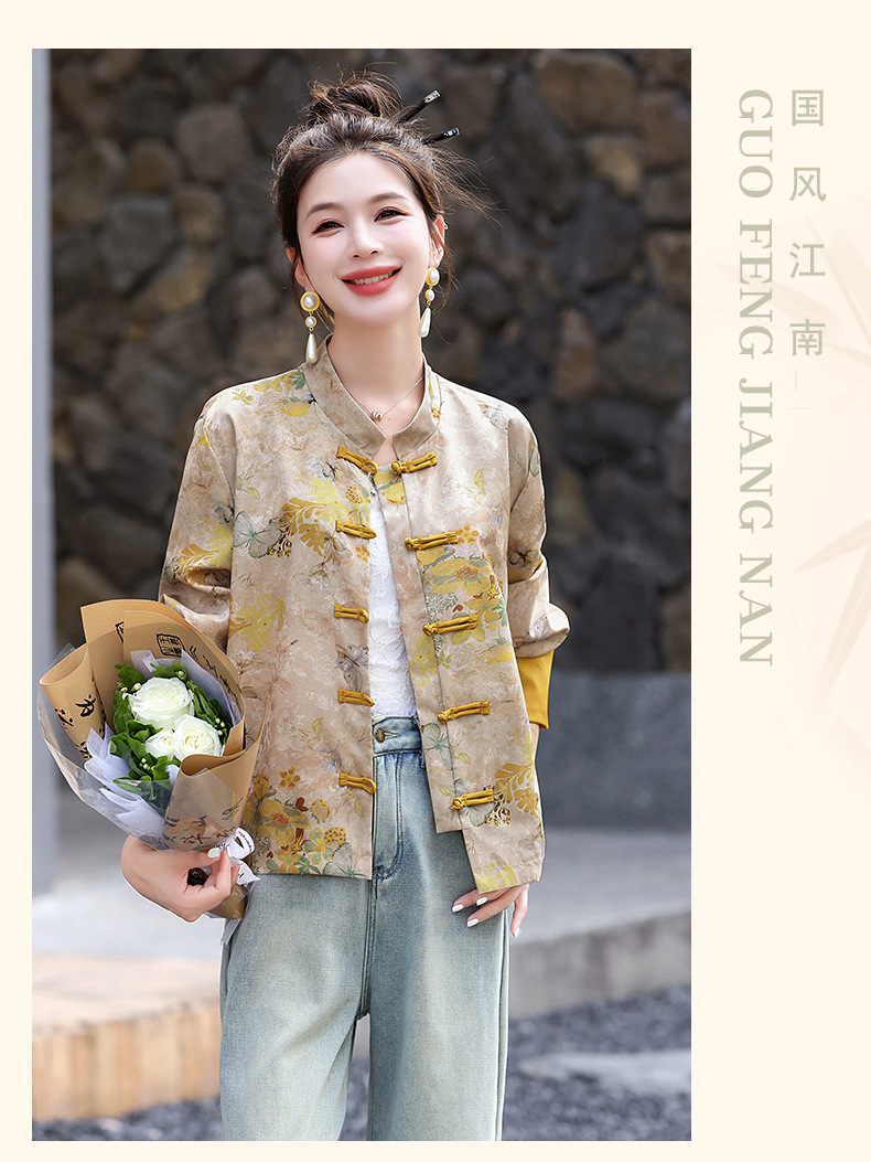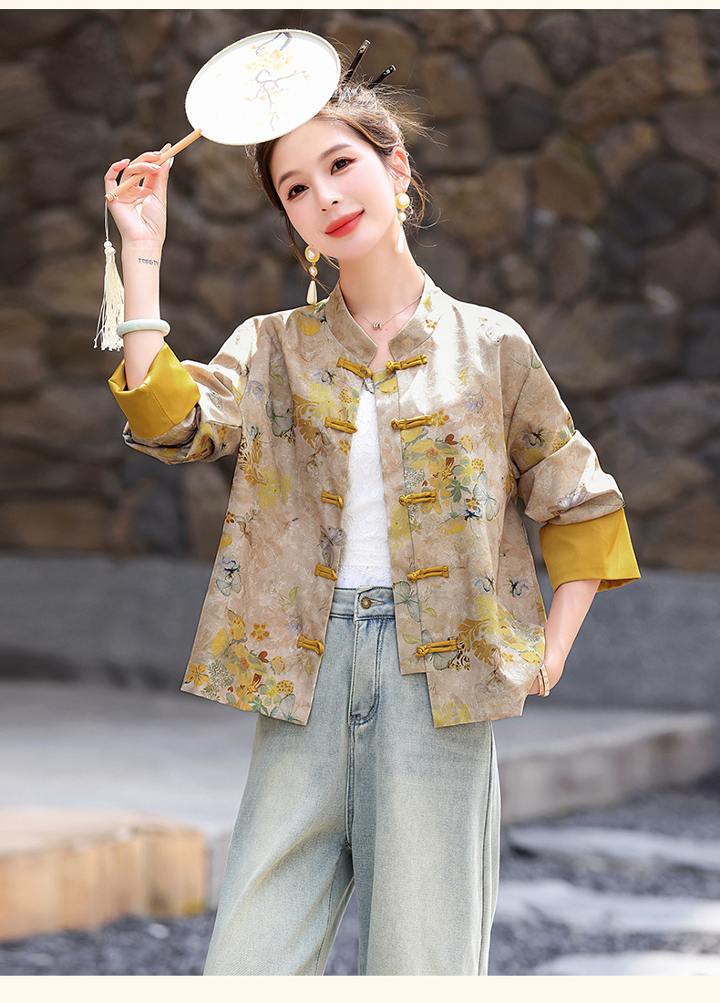 Áo khoác nữ mang phong cách dân tộc hiện đại, thiết kế dành cho tiết trời xuân thu. Kiểu dáng cổ đứng ôm sáng tạo cùng phần v nối dáng rủ tạo vẻ thanh thoát. Áo có form rộng thoải mái, tay dài phù hợp mặc nhiều dịp. Chất vải mềm mại, thoáng khí giúp người mặc dễ chịu. Có thể phối cùng quần ống rộng hoặc chân váy để tạo set đồ hài hòa. Mẫu áo phù hợp cho các buổi gặp mặt, dạo phố hay chụp ảnh. | Tên sản phẩm: Áo Khoác Nữ Dài Tay Hàng Mùa Xuân Thu Đông Phục Cổ Cổ Điển - Thời Trang Nữ | Mã sản phẩm: C0785 - Giá: 1.240.000đ | Mã nhà sản xuất: HADG-G04Hình ảnh sản phẩm
