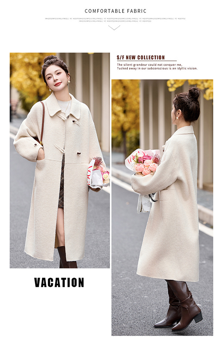 Áo khoác nữ dáng dài, kiểu dáng cổ bẻ với hai khuy cài phía trước. Sản phẩm được làm từ chất liệu len dệt kép mềm mại và ấm áp, phù hợp cho thời tiết mùa đông. Bạn có thể mặc như một lớp áo bên ngoài để giữ ấm cho cơ thể. Thiết kế thanh lịch, dễ dàng phối hợp với nhiều trang phục khác nhau như quần tây hay váy liền. | Tên sản phẩm: Áo Khoác Nữ Kín Cổ Hàng Mùa Xuân Thu Đông - Thời Trang Nữ | Mã sản phẩm: C0800 - Giá: 3.280.000đ | Mã nhà sản xuất: HADG-G06Hình ảnh sản phẩm