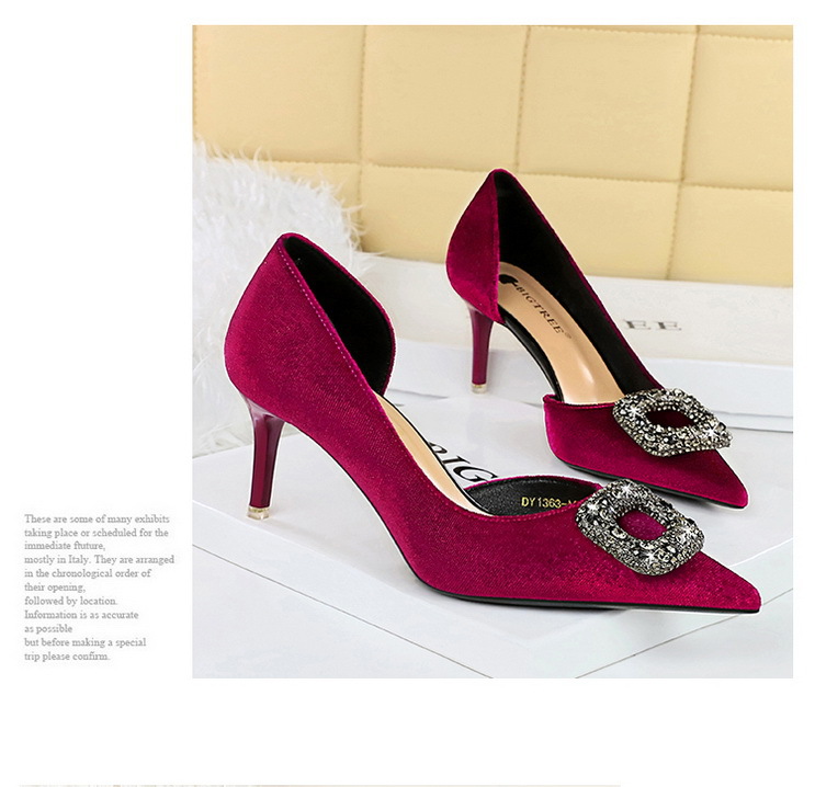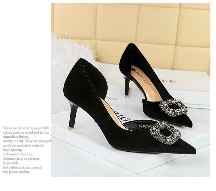 Đôi giày này có kiểu dáng mũi nhọn và phần cổ thấp, phối cùng chi tiết khoét hờ tinh tế bên hông. Điểm nhấn nổi bật là khóa kim loại lấp lánh gắn đá, tạo nên vẻ thanh lịch. Chất liệu da mềm mại ôm chân, mang lại cảm giác dễ chịu. Sản phẩm thích hợp để đi dự tiệc hoặc các buổi hẹn quan trọng. Bạn chỉ cần xỏ chân vào và cài khóa là đã sẵn sàng. | Tên sản phẩm: Giày Cao Gót Nữ Gắn Đá Mũi Nhọn Phong Cách Hàn Quốc - Giày Dép Nữ | Mã sản phẩm: C0845 - Giá: 710.000đ | Mã nhà sản xuất: PITYIN-G02Hình ảnh sản phẩm