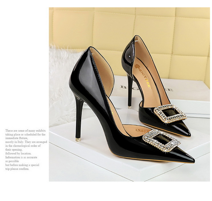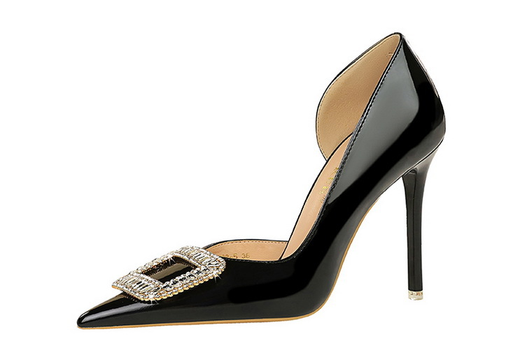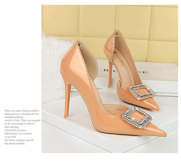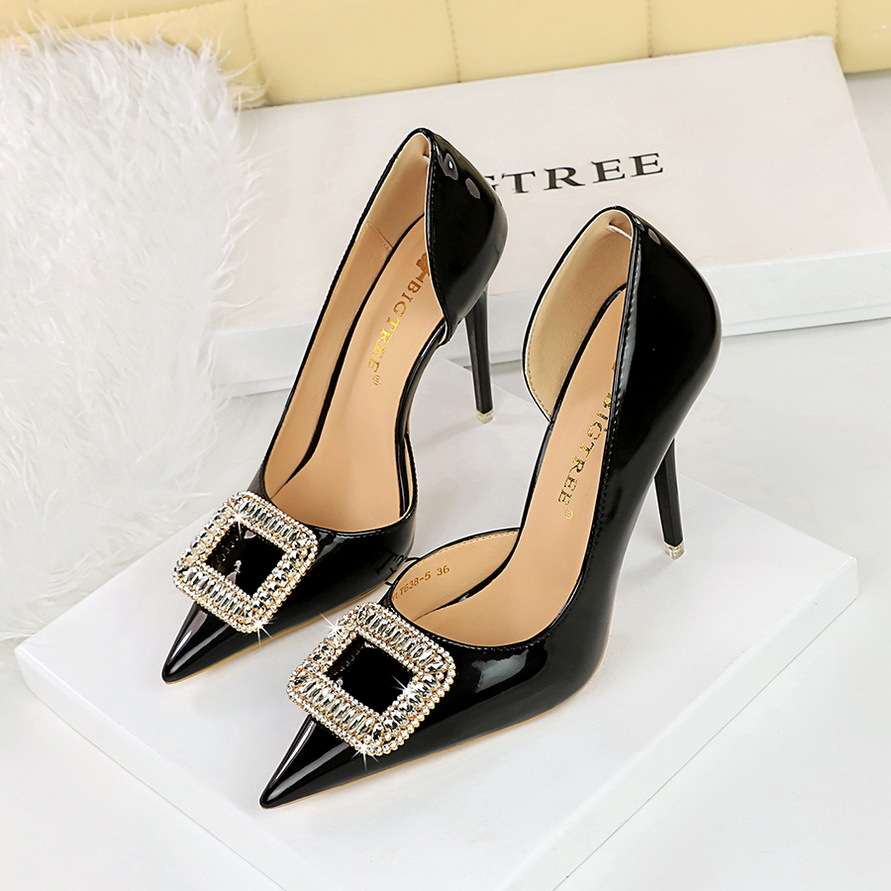 Đôi giày này có phần gót rất cao và mảnh, kiểu dáng mũi nhọn cùng cổ thấp tạo nên vẻ thanh thoát. Điểm nhấn là chi tiết khoét hờ tinh tế ở hai bên, kết hợp cùng khóa đá lấp lánh. Chất liệu bề mặt bóng đẹp, dễ dàng lau chùi. Sản phẩm thích hợp để mang trong các buổi tiệc hoặc sự kiện, giúp nâng tầm phong cách thời trang của bạn. | Tên sản phẩm: Giày Cao Gót Nữ Gắn Đá Mũi Nhọn Gót Nhọn Phong Cách Âu Mỹ - Giày Dép Nữ | Mã sản phẩm: C0854 - Giá: 700.000đ | Mã nhà sản xuất: PITYIN-G02Hình ảnh sản phẩm