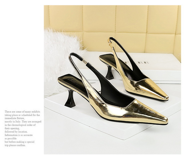 Đôi giày này mang phong cách cổ điển châu Âu, phù hợp cho các buổi tiệc. Thiết kế có phần mũi vuông nhẹ nhàng, phía trước hở vừa phải tạo cảm giác thanh thoát. Điểm nhấn đặc biệt là phần gót có hình dáng độc đáo như chiếc ly. Phía sau giày được thiết kế có dây cài ôm sát và phần gót chân hở, giúp đôi chân bạn thoải mái. Bạn chỉ cần xỏ chân vào và cài qu phía sau là đã có ngay vẻ ngoại thanh lịch. | Tên sản phẩm: Giày Cao Gót Nữ Phong Cách Âu Mỹ - Giày Dép Nữ | Mã sản phẩm: C0858 - Giá: 590.000đ | Mã nhà sản xuất: PITYIN-G01Hình ảnh sản phẩm