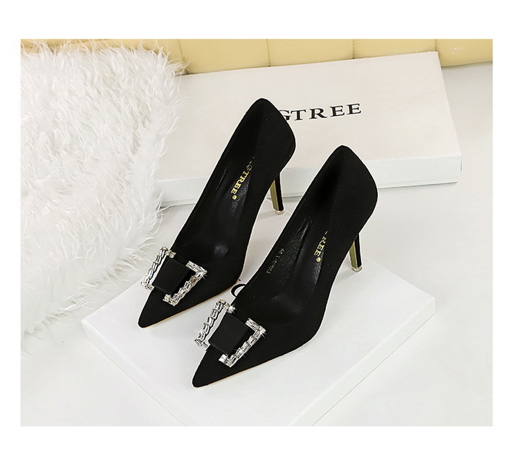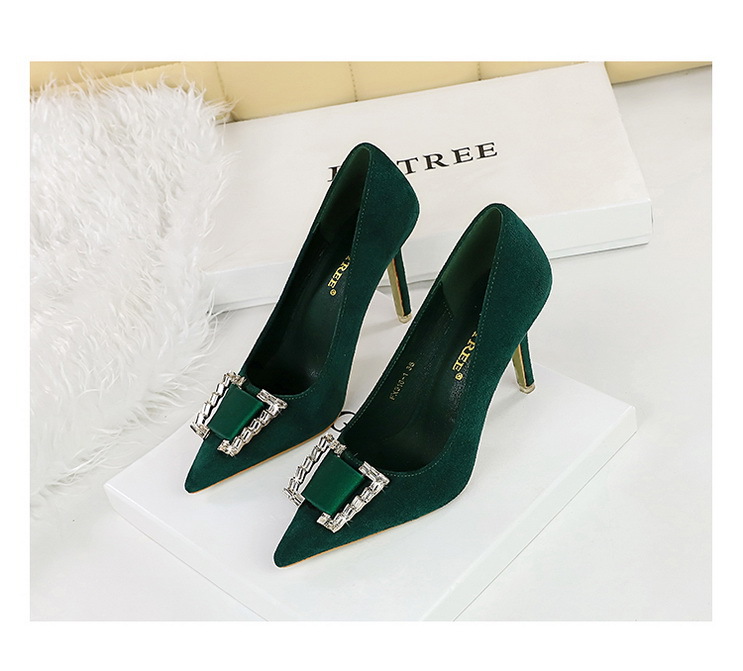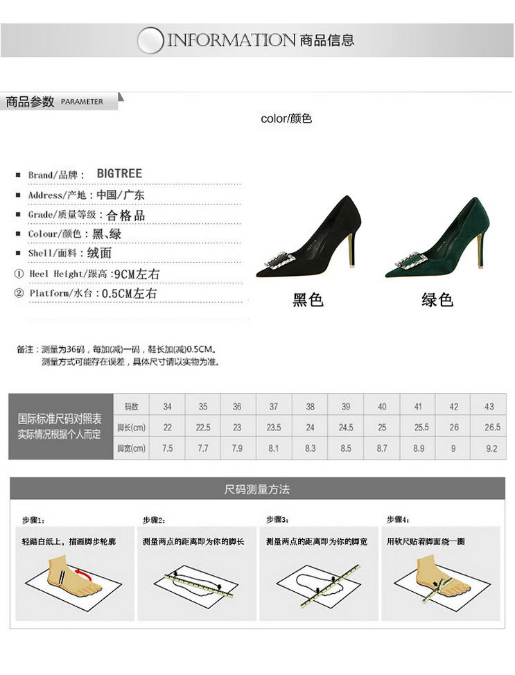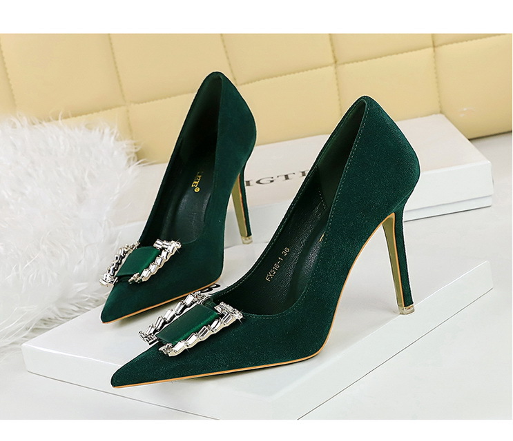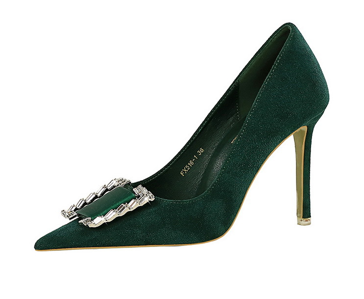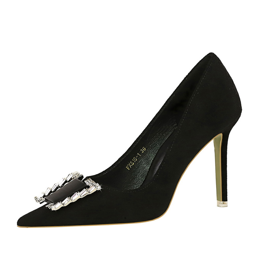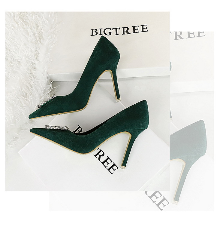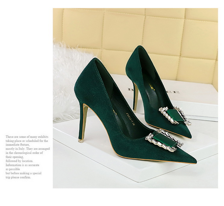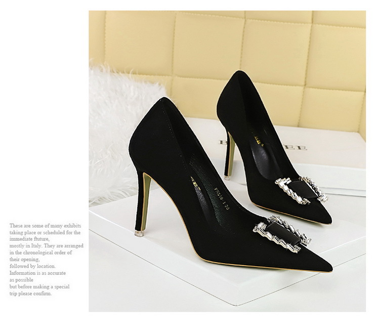 Đôi giày này có phần mũi nhọn và cổ thấp, tôn dáng bàn chân một cách thanh lịch. Chất liệu bề mặt được làm từ da mềm mịn tạo cảm giác dễ chịu. Điểm nhấn nổi bật là khóa kim loại gắn viên pha lê lấp lánh, tăng thêm phần nổi bật. Phần gót được thiết kế thon và chắc chắn, nâng đỡ tốt cho bàn chân. Sản phẩm thích hợp để mang trong các buổi tiệc hoặc sự kiện vào mùa xuân và mùa thu. Khi sử dụng, nên chọn size phù hợp và vệ sinh bề mặt nhẹ nhàng bằng khăn mềm. | Tên sản phẩm: Giày Cao Gót Nữ Gắn Đá Mũi Nhọn Gót Nhọn Hàng Mùa Xuân Thu Đông Phong Cách Âu Mỹ - Giày Dép Nữ | Mã sản phẩm: C0862 - Giá: 640.000đ | Mã nhà sản xuất: PITYIN-G02Hình ảnh sản phẩm