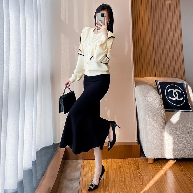 Bộ trang phục hai mảnh này gồm áo len dệt kim và chân váy dài kiểu đuôi cá. Áo có thiết kế giúp tôn dáng, che bớt những vùng chưa hoàn hảo. Chân váy dáng dài thướt tha tạo nên vẻ nữ tính, phù hợp với phong cách nhẹ nhàng. Bộ này mặc đi làm, dạo phố hay dự tiệc nhỏ đều thích hợp. Cách phối đồ đơn giản, bạn có thể mặc nguyên bộ hoặc tách ra để kết hợp với các món đồ khác. | Tên sản phẩm: Áo Len Nữ Áo Len Cả Bộ 2 Món Kiểu Đuôi Cá Trông Trẻ Hơn Tuổi Hàng Mùa Xuân Thu Đông - Thời Trang Nữ | Mã sản phẩm: C0878 - Giá: 1.250.000đ | Mã nhà sản xuất: DODAP-G04Hình ảnh sản phẩm