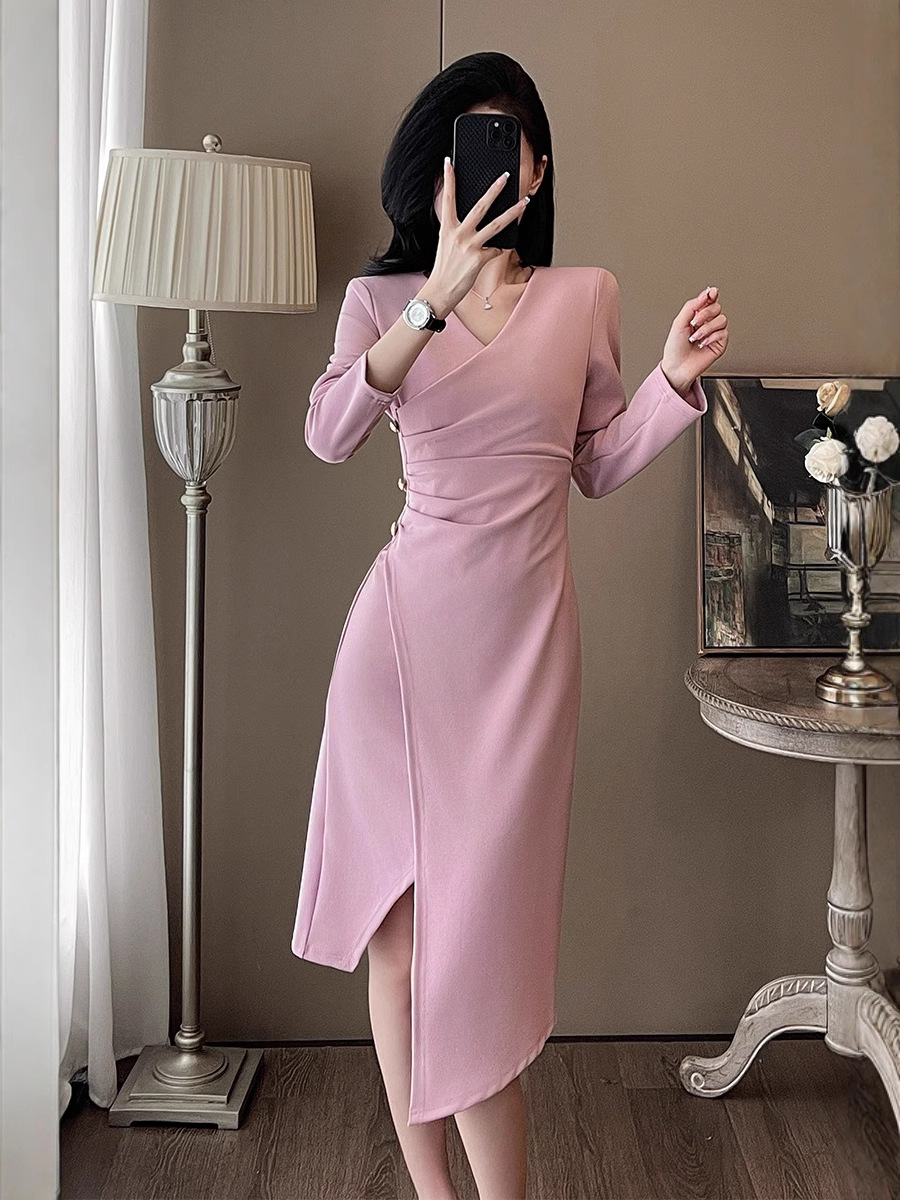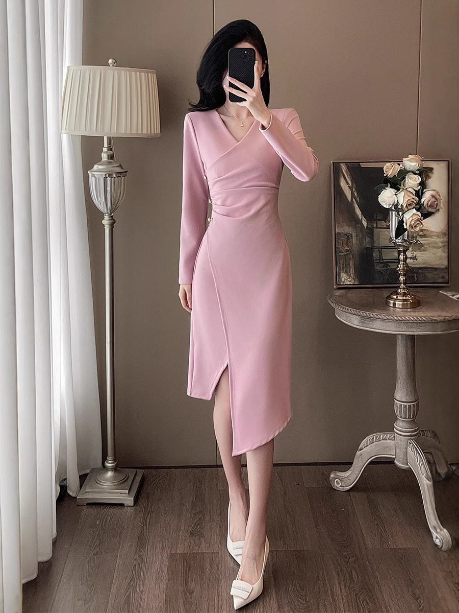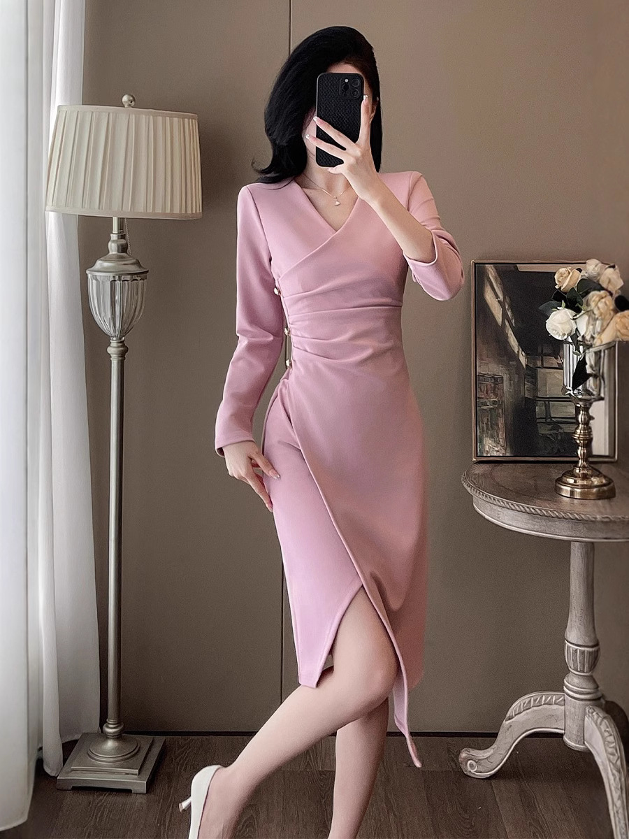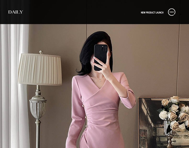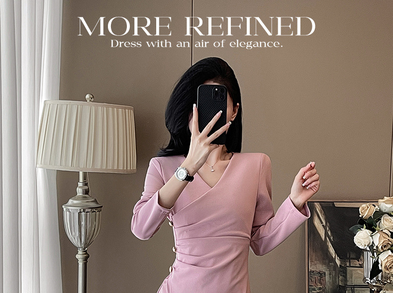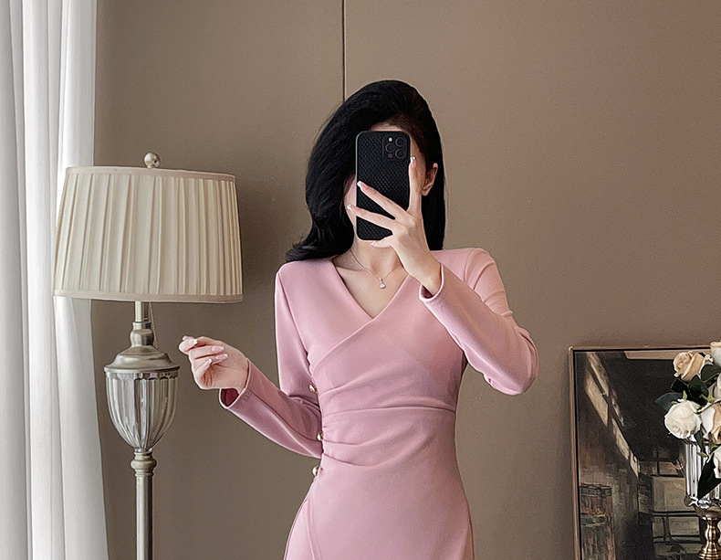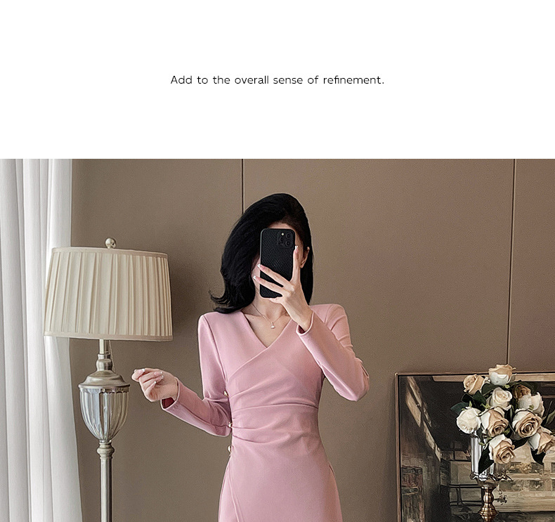 Chiếc đầm tay dài dành cho mùa thu với cổ chữ V tôn dáng. Thiết kế có những đường nhún nhẹ ở thân, kết hợp eo thắt tạo đường nét thanh thoát. Kiểu dáng phù hợp cho môi trường làm việc nhẹ nhàng nhưng vẫn giữ nét cá tính nhờ phần viền không đều đặn. Bạn có thể mặc nó đi làm hoặc dạo phố, dễ dàng phối cùng giày cao gót hay giày đế bằng. | Tên sản phẩm: Váy Đầm Liền Thân Dáng Dài Nữ Dài Tay Cổ Chữ V Hàng Mùa Xuân Thu Đông Đồ Công Sở - Thời Trang Nữ | Mã sản phẩm: C0883 - Giá: 1.300.000đ | Mã nhà sản xuất: DODAP-G04Hình ảnh sản phẩm