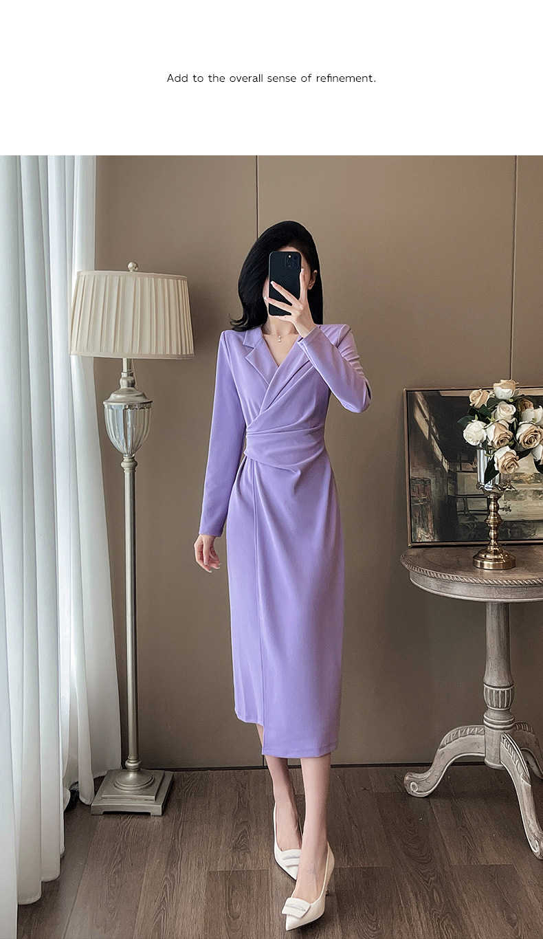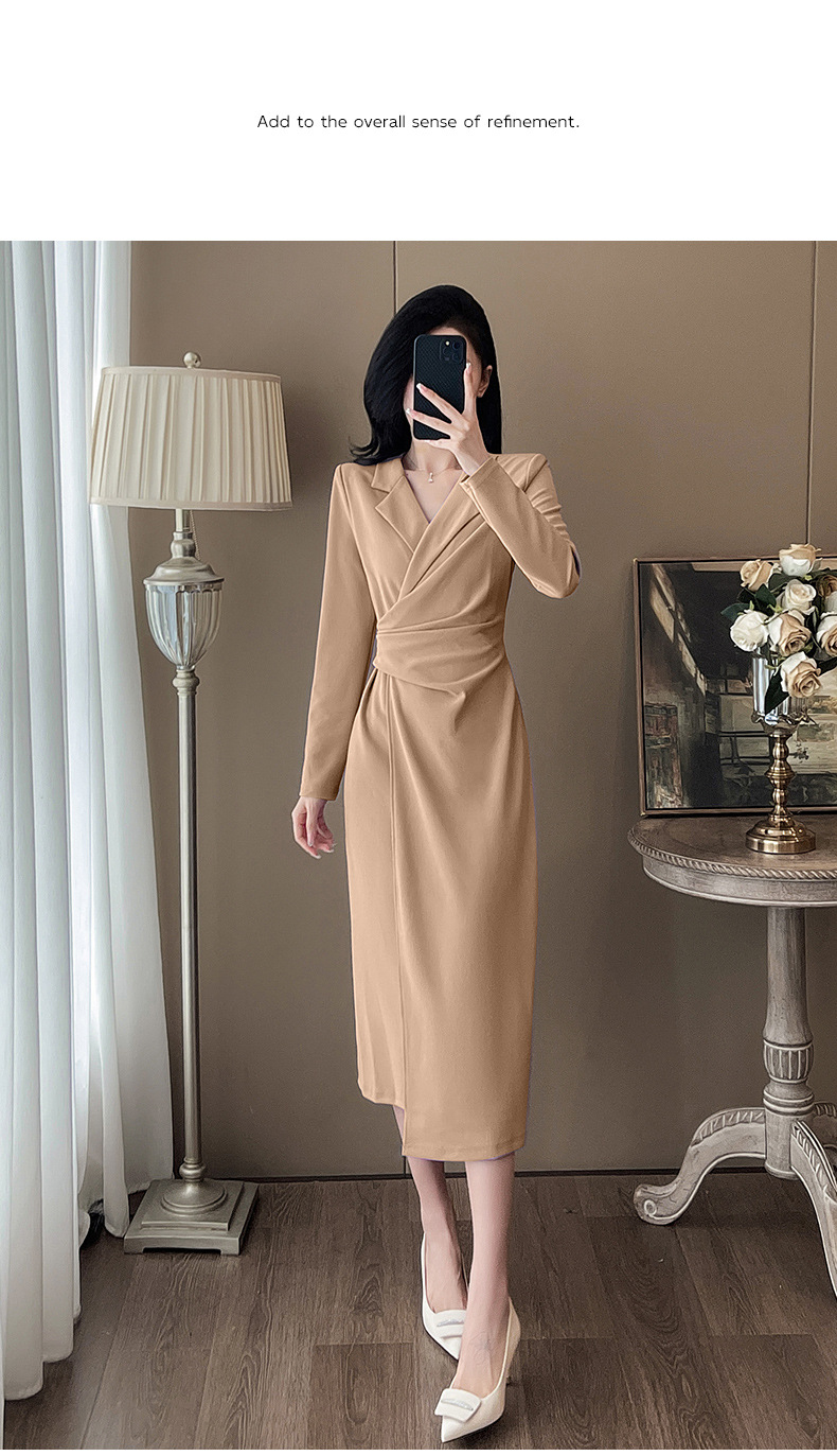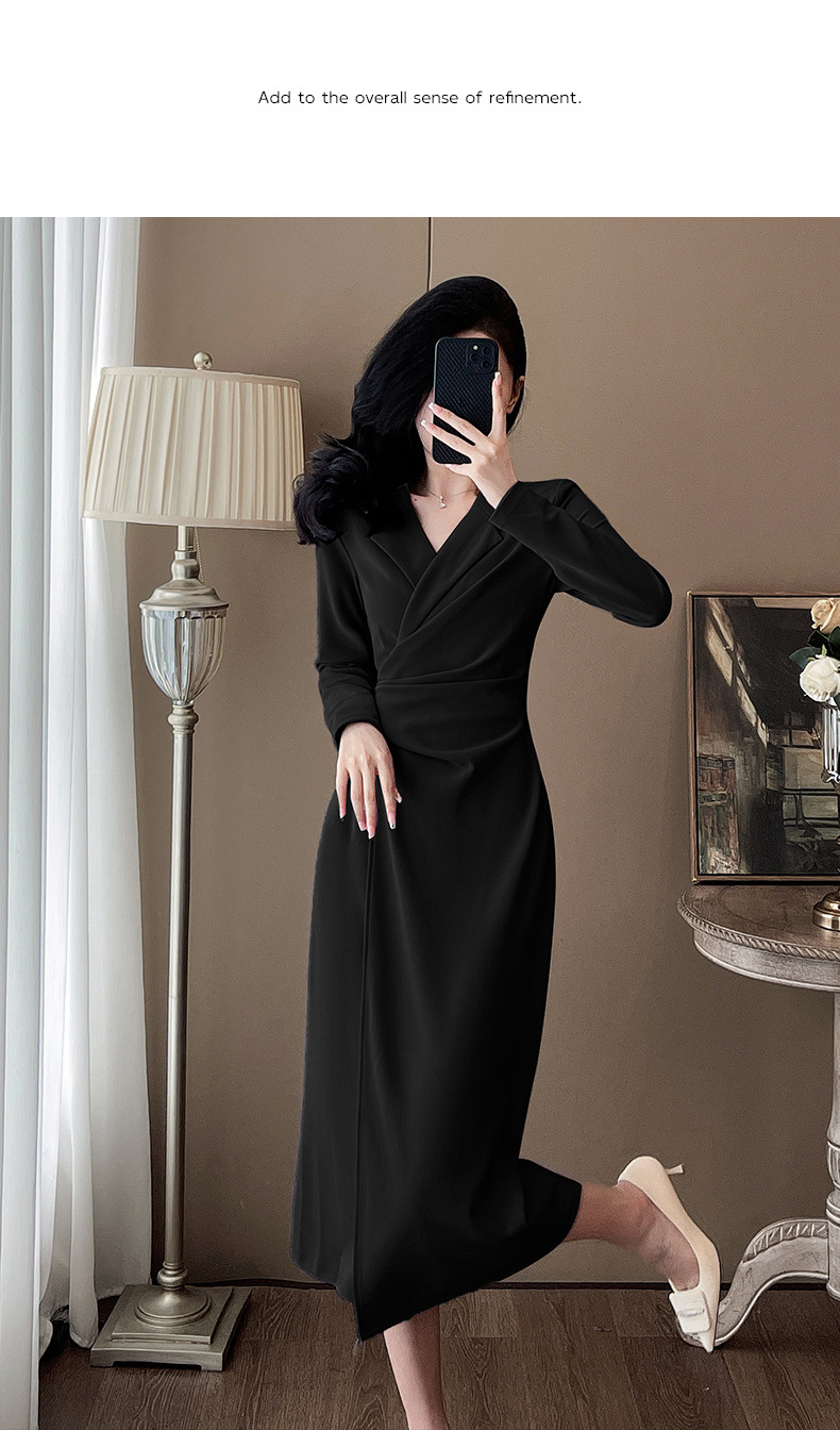 Chiếc đầm tay dài thiết kế cổ chữ V, dành riêng cho tiết trời mát mẻ. Form đầm ôm nhẹ nhàng ở eo, tôn dáng người mặc. Kiểu dáng kết hợp hài hòa giữa nét thanh lịch và phong cách hiện đại, phù hợp cho nhiều dịp cần sự chỉn chu. Có thể phối cùng giày cao gót và túi xách để hoàn thiện bộ trang phục. Chất vải mềm mại, mang lại cảm giác dễ chịu khi mặc cả ngày dài. | Tên sản phẩm: Váy Đầm Liền Thân Dáng Dài Nữ Dài Tay Hàng Mùa Xuân Thu Đông Đồ Công Sở - Thời Trang Nữ | Mã sản phẩm: C0900 - Giá: 1.300.000đ | Mã nhà sản xuất: DODAP-G04Hình ảnh sản phẩm