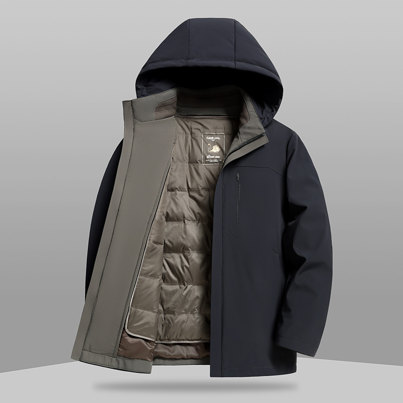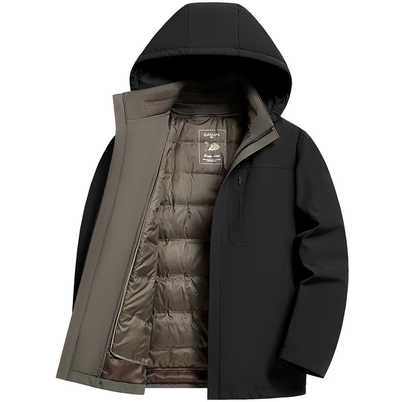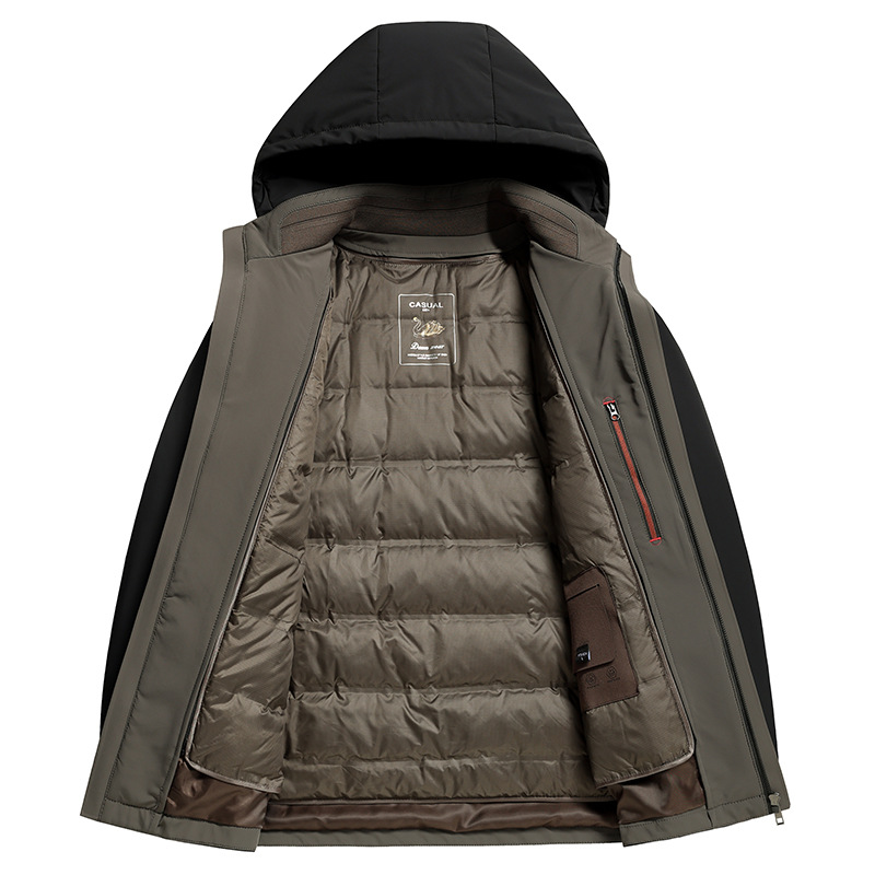 Áo khoác nam dáng thể thao có mũ, được lót bằng lớp lông vũ tơ nhẹ và ấm. Chất vải co giãn nhẹ nhàng, tạo cảm giác thoải mái khi mặc. Kiểu dáng đơn giản, phù hợp cho cả công sở và sinh hoạt hằng ngày. Cách sử dụng dễ dàng, mặc trực tiếp và kéo khóa khép kín là có ngay vẻ ngoài chỉn chu. | Tên sản phẩm: Áo Khoác Nam Mũ Liền Trung Niên - Thời Trang Nam | Mã sản phẩm: C0911 - Giá: 3.100.000đ | Mã nhà sản xuất: SUDI-G06Hình ảnh sản phẩm